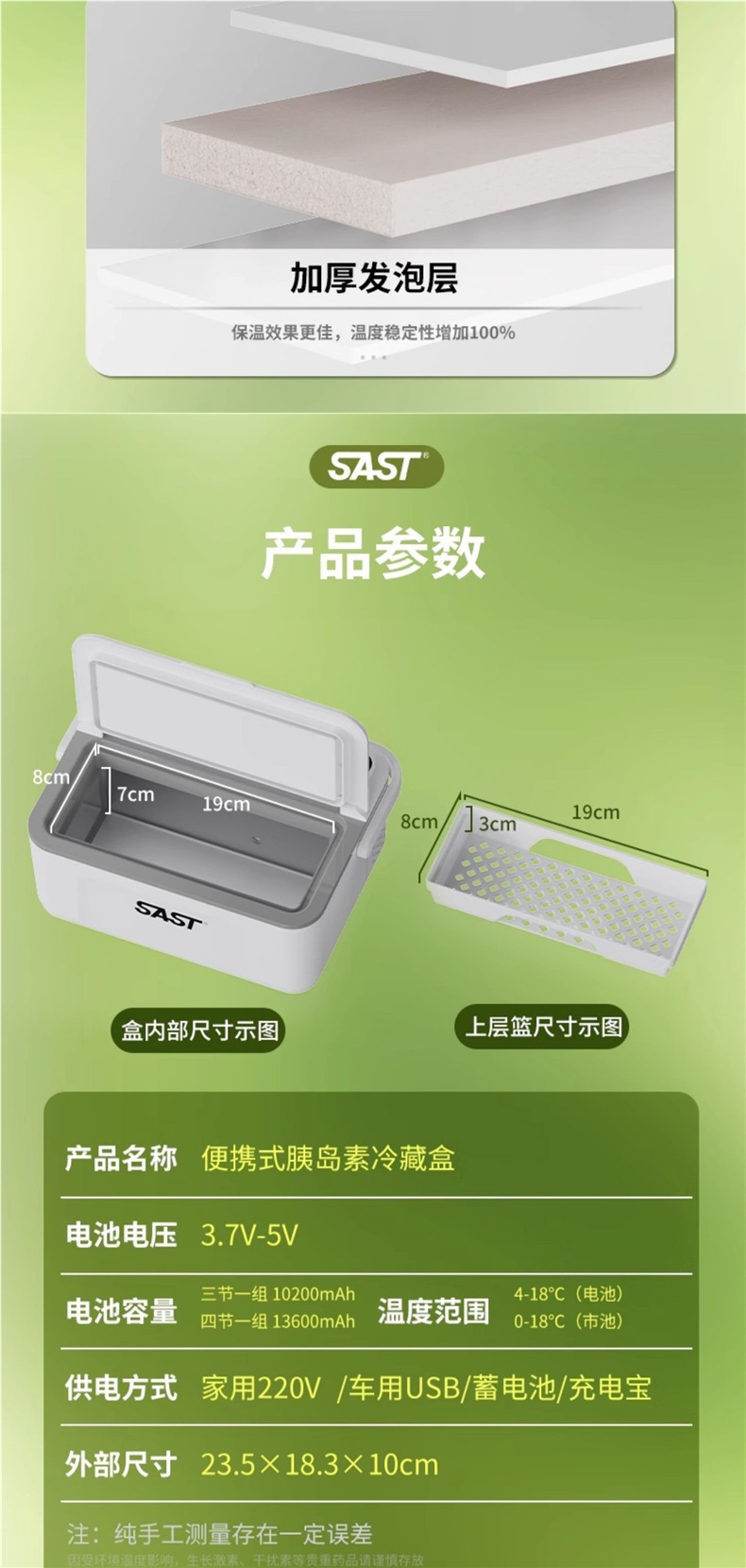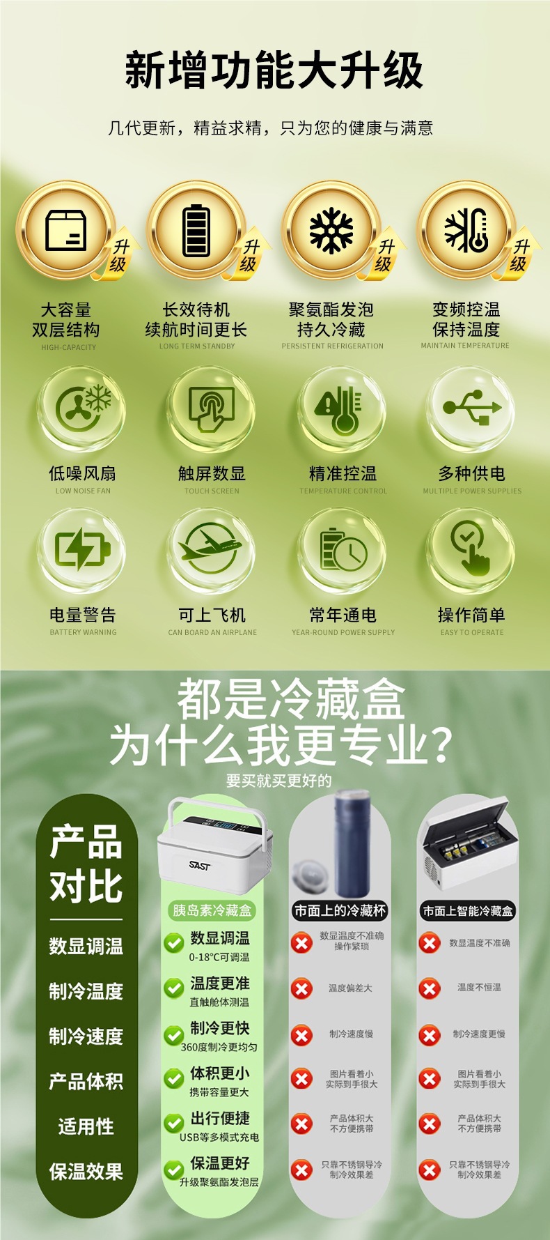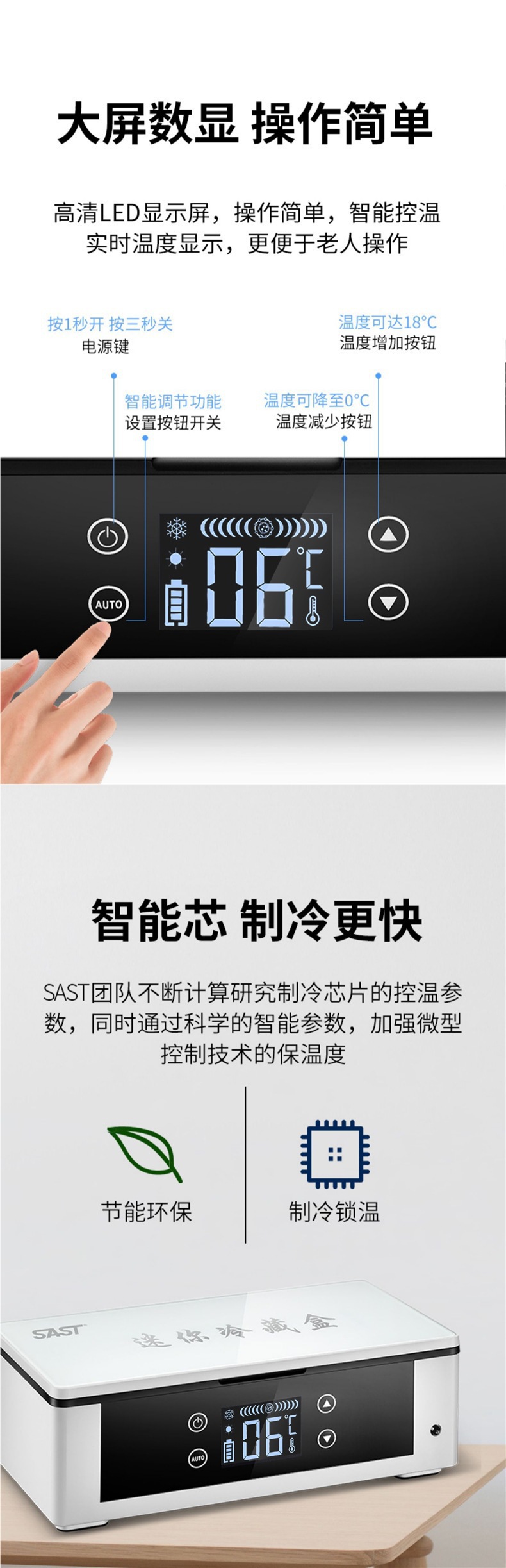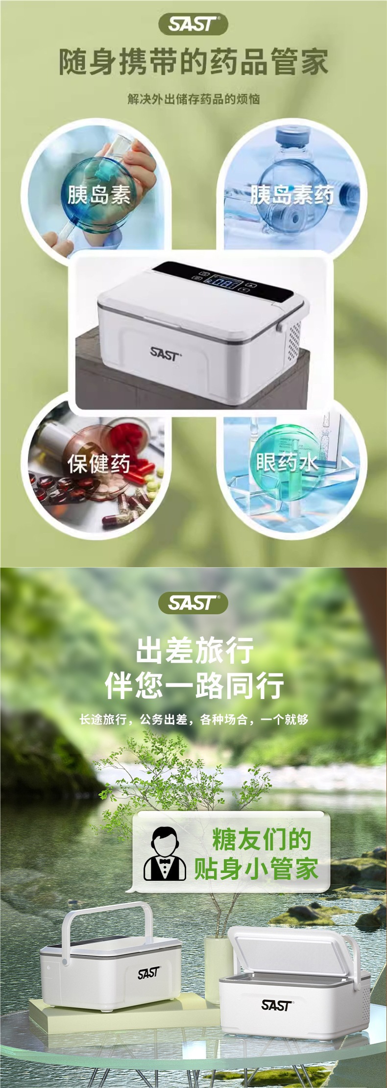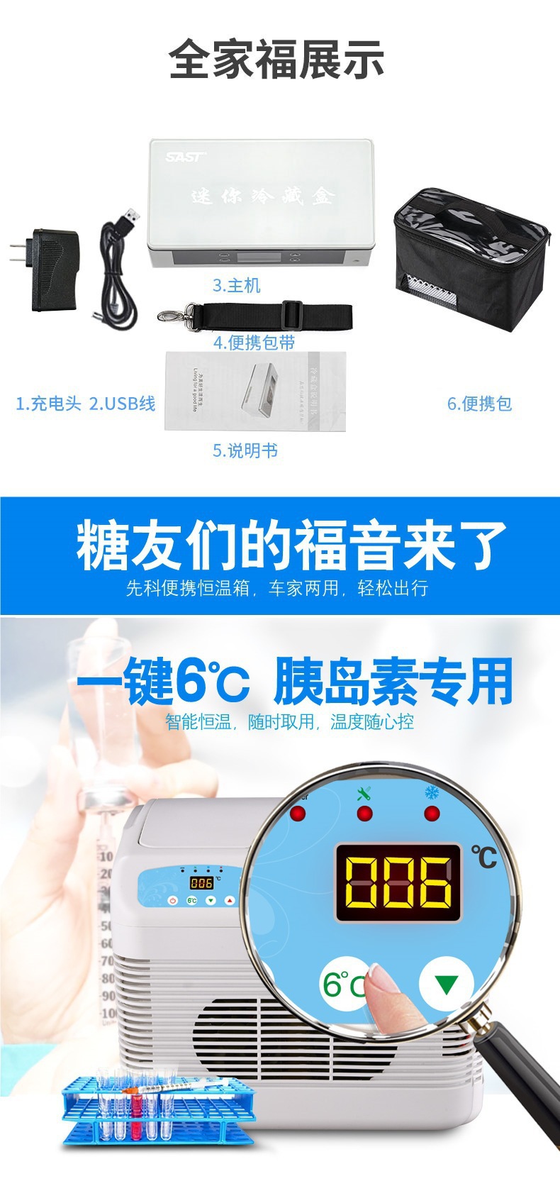 SAST 휴대용 인슐린 냉장 상자 여행용 약 상자 가정용 충전식 약물 항온 소형 냉장고