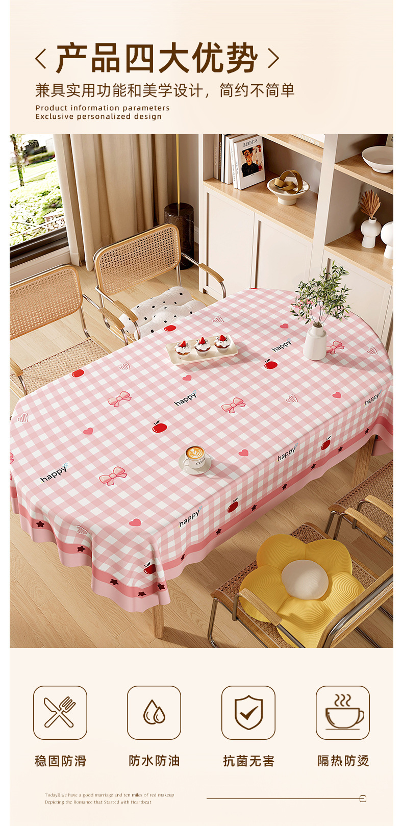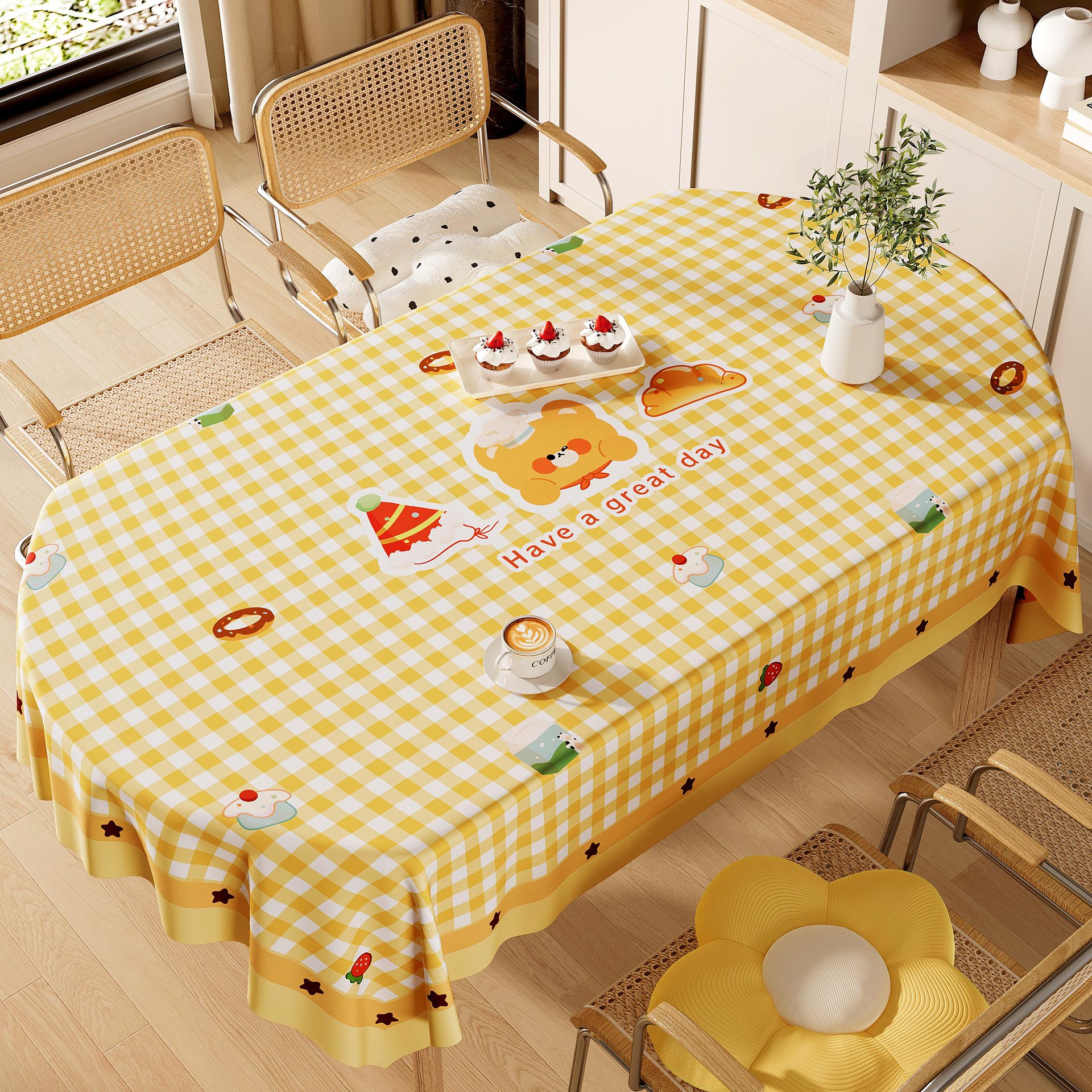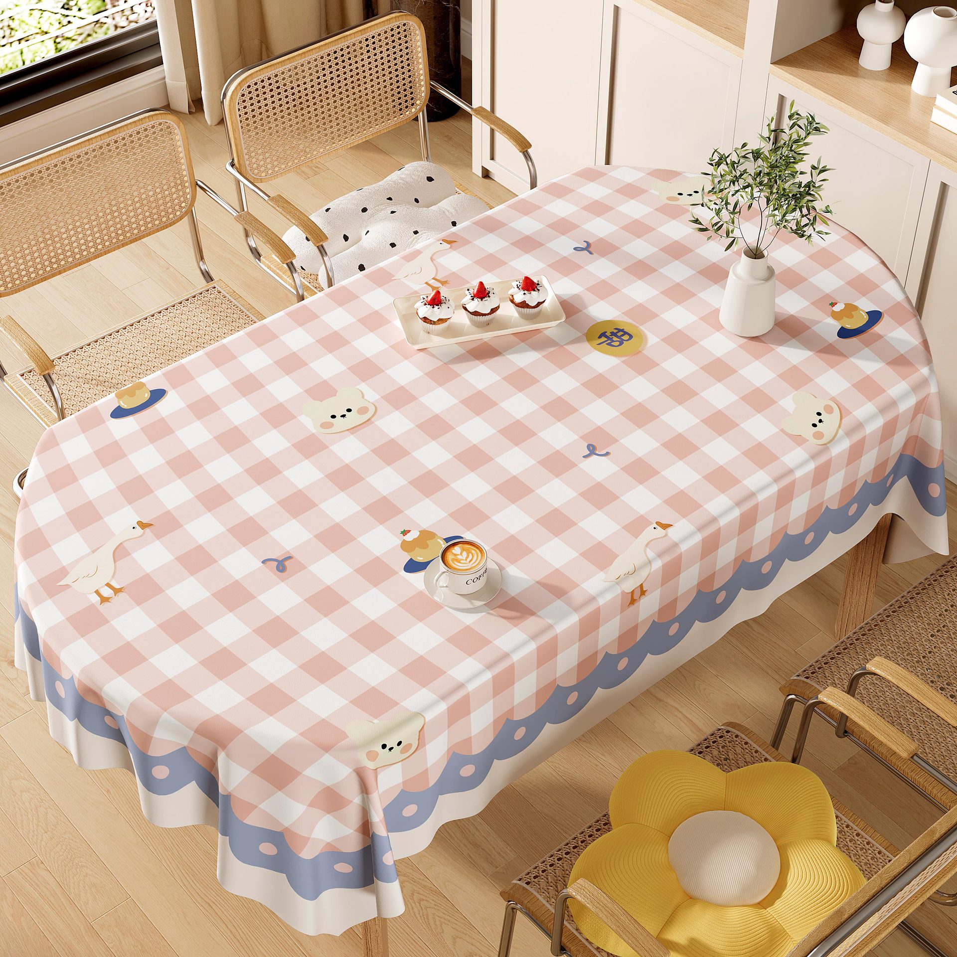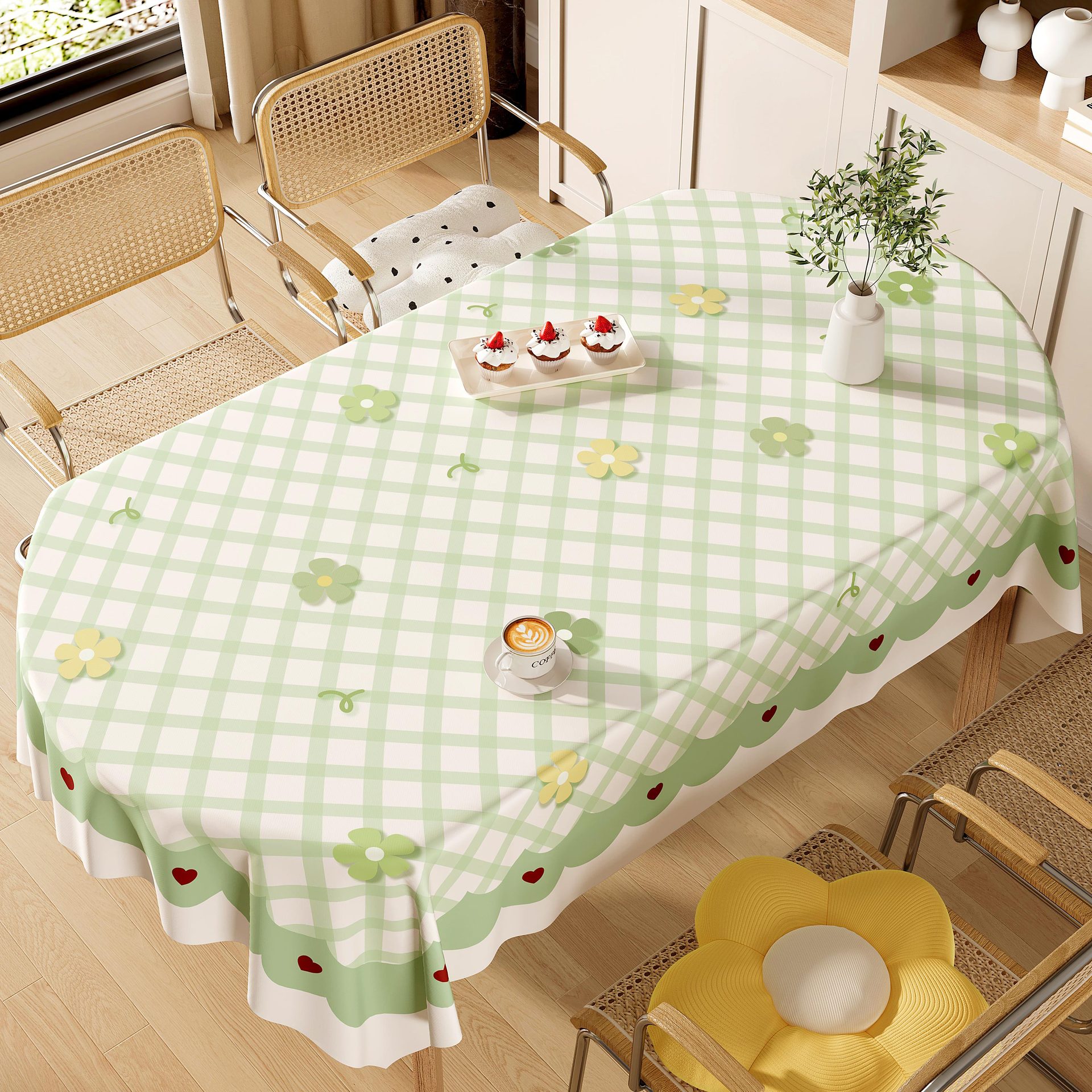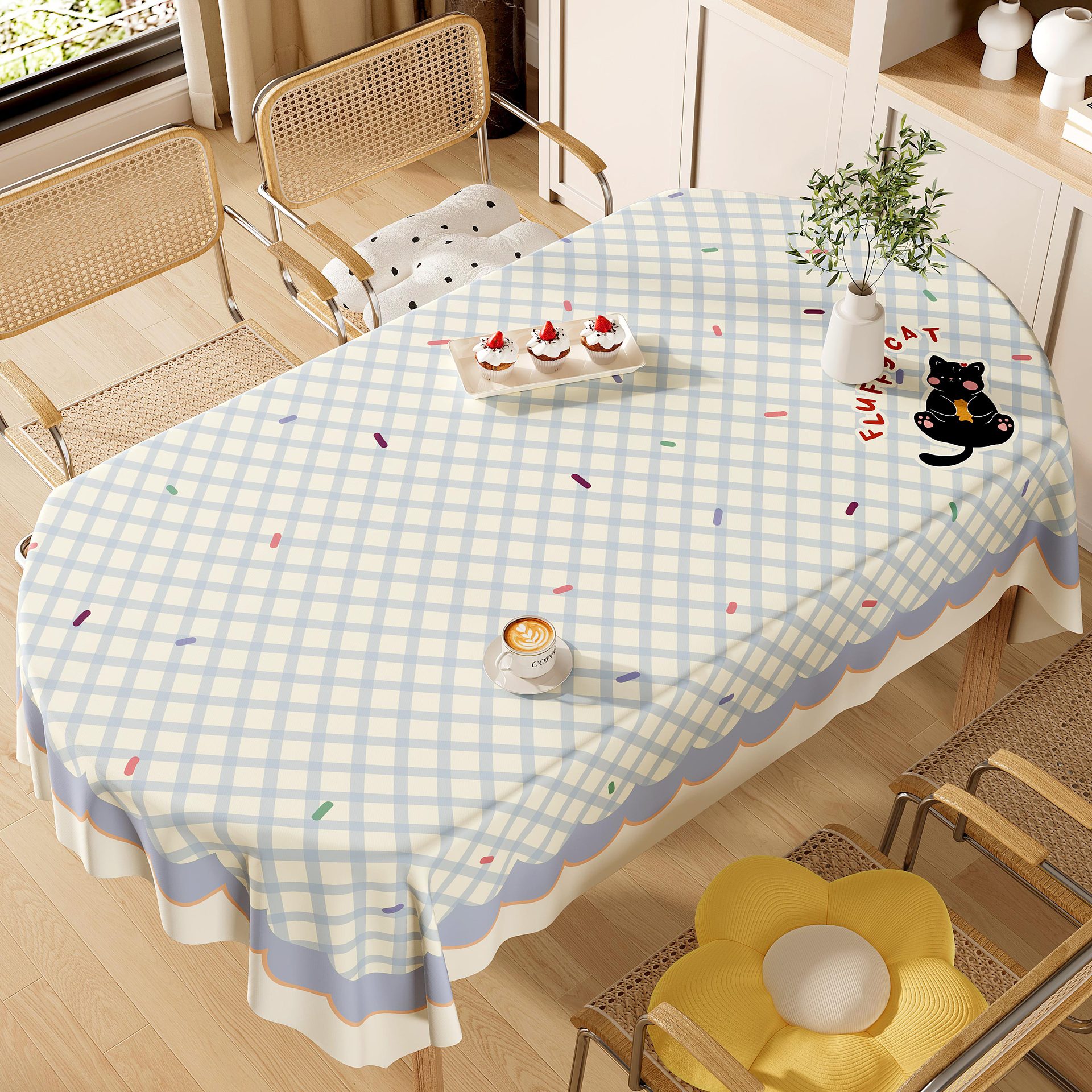 타원형 식탁보 방수 및 내유성 노워시 2025 새로운 크림 스타일 PVC 식탁보 하이 엔드 스타일 식탁보
