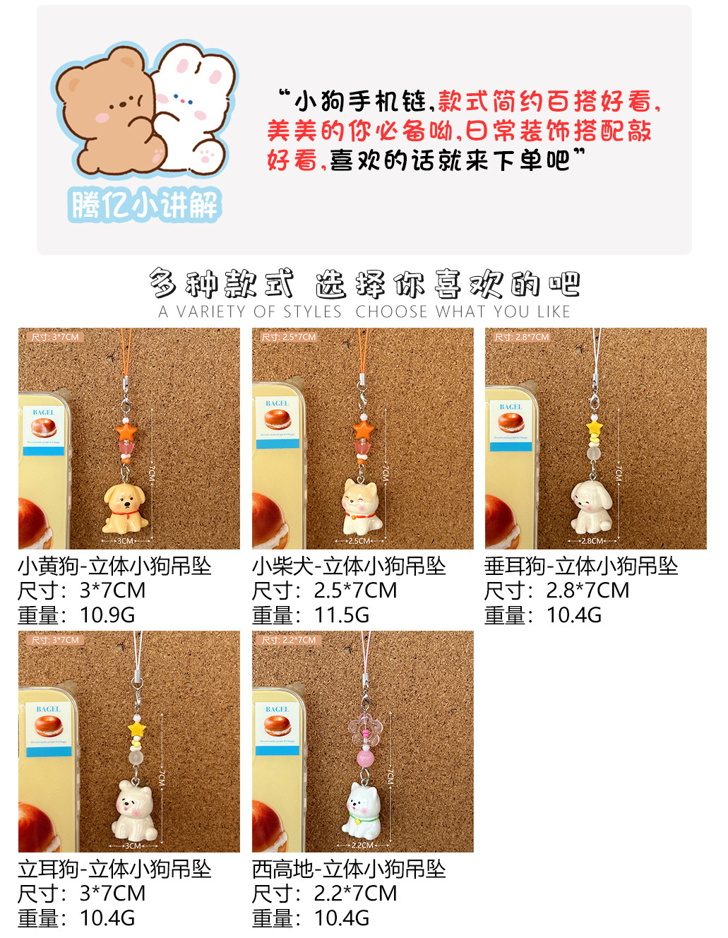 새로운 귀여운 입체 강아지 휴대 전화 체인 펜던트, 귀여운 애완 동물 키 체인, 배낭 펜던트, 소녀를위한 다용도 펜던트 도매스토어 가기