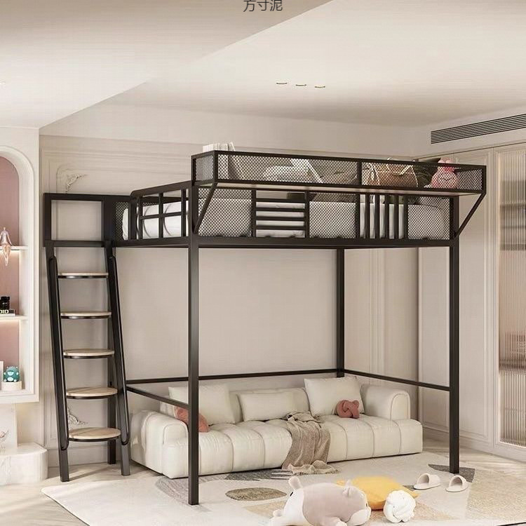 아이언 메이드 로프트 침대, 침대 시트, 상단 및 하단 테이블 공간, 소형 아파트용 철제 프레임 침대, 복층형 2층 로프트, 높낮이