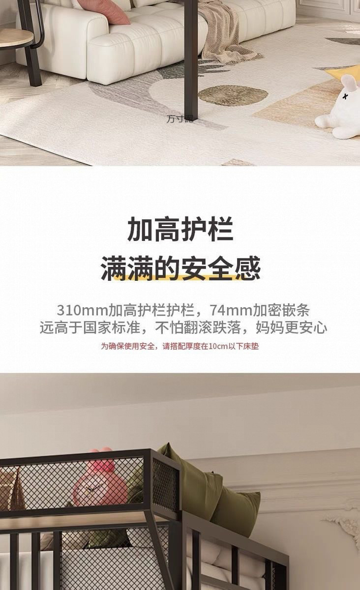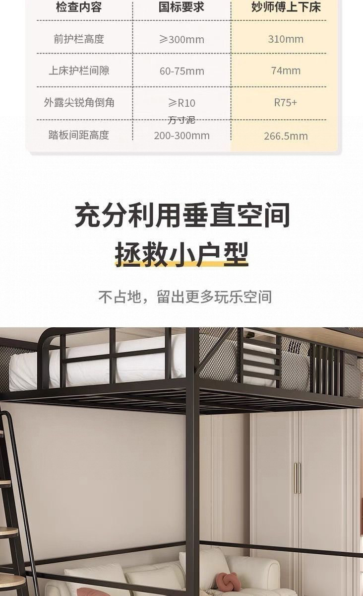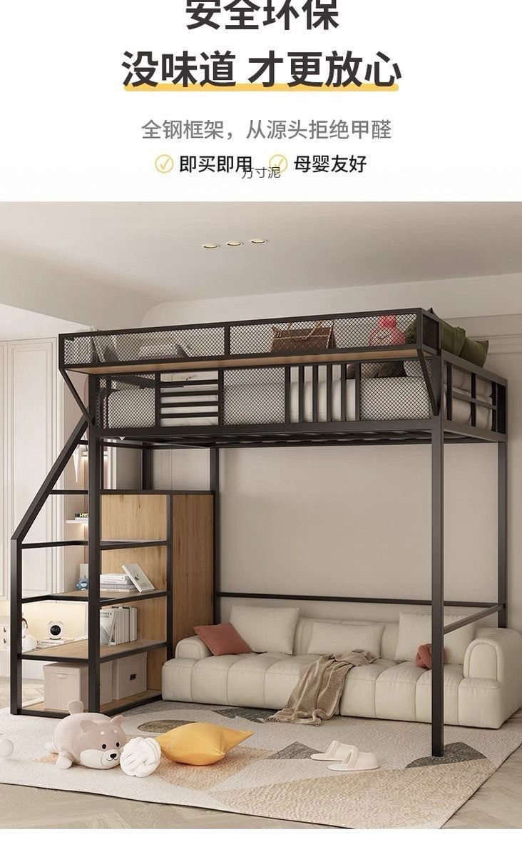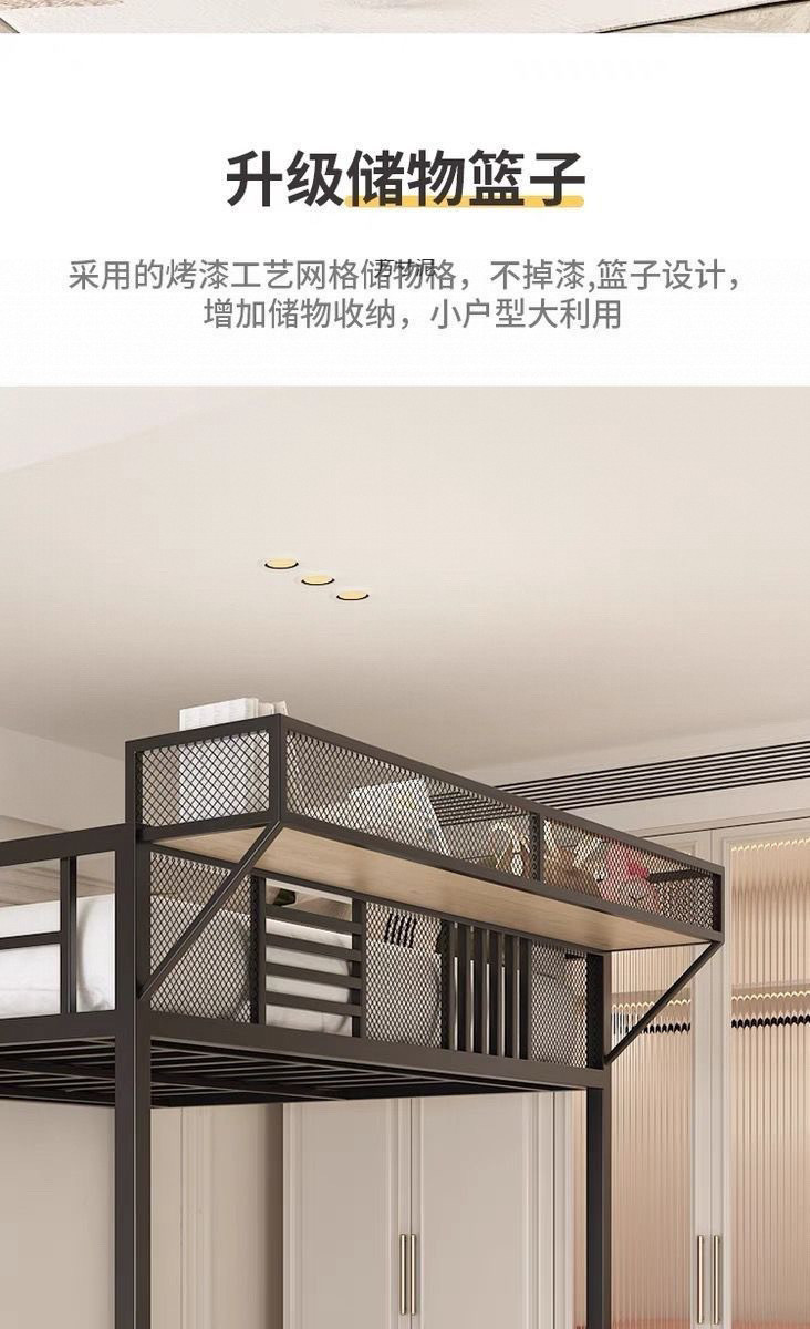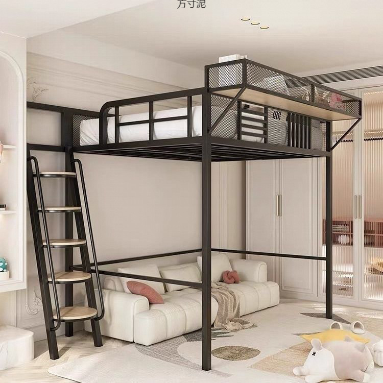 아이언 메이드 로프트 침대, 침대 시트, 상단 및 하단 테이블 공간, 소형 아파트용 철제 프레임 침대, 복층형 2층 로프트, 높낮이스토어 가기