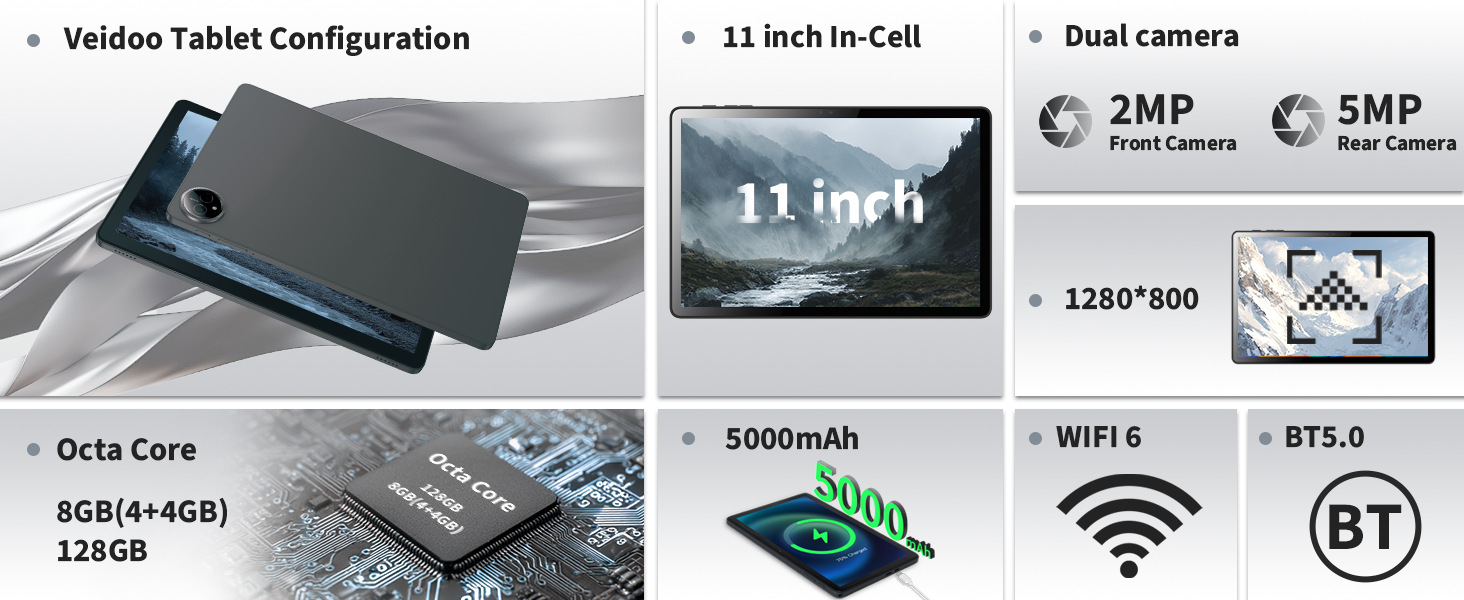 11inch 안드로이드 태블릿 8코어 IPS 스크린 HD 듀얼 카메라 WiFi6 5000mAh 4+128GB
