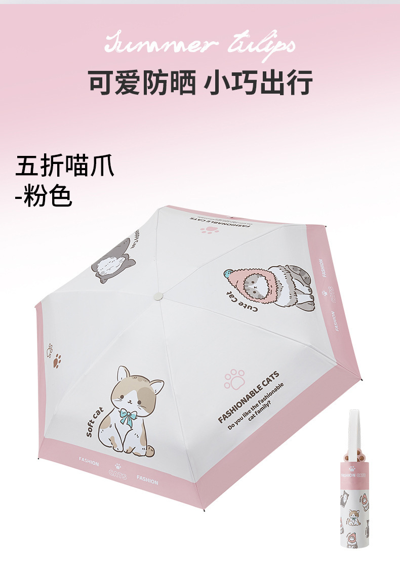 자외선 차단 우산, 파라솔, 귀여운 고양이 발톱 손잡이, 만화 크리에이티브 접이식 70% off 우산스토어 가기