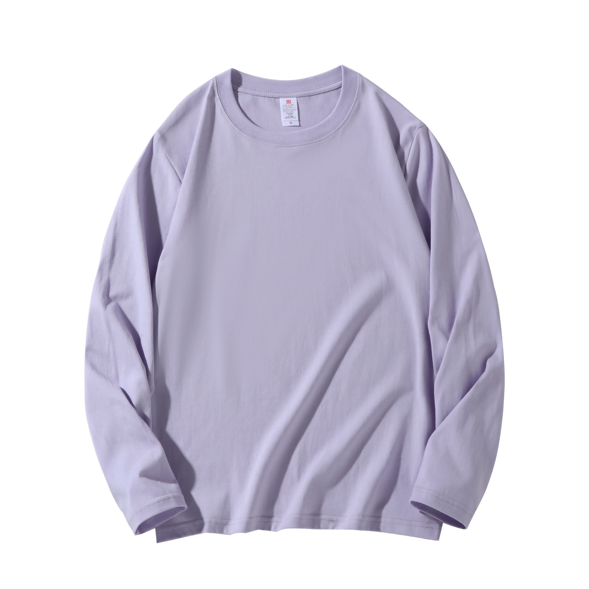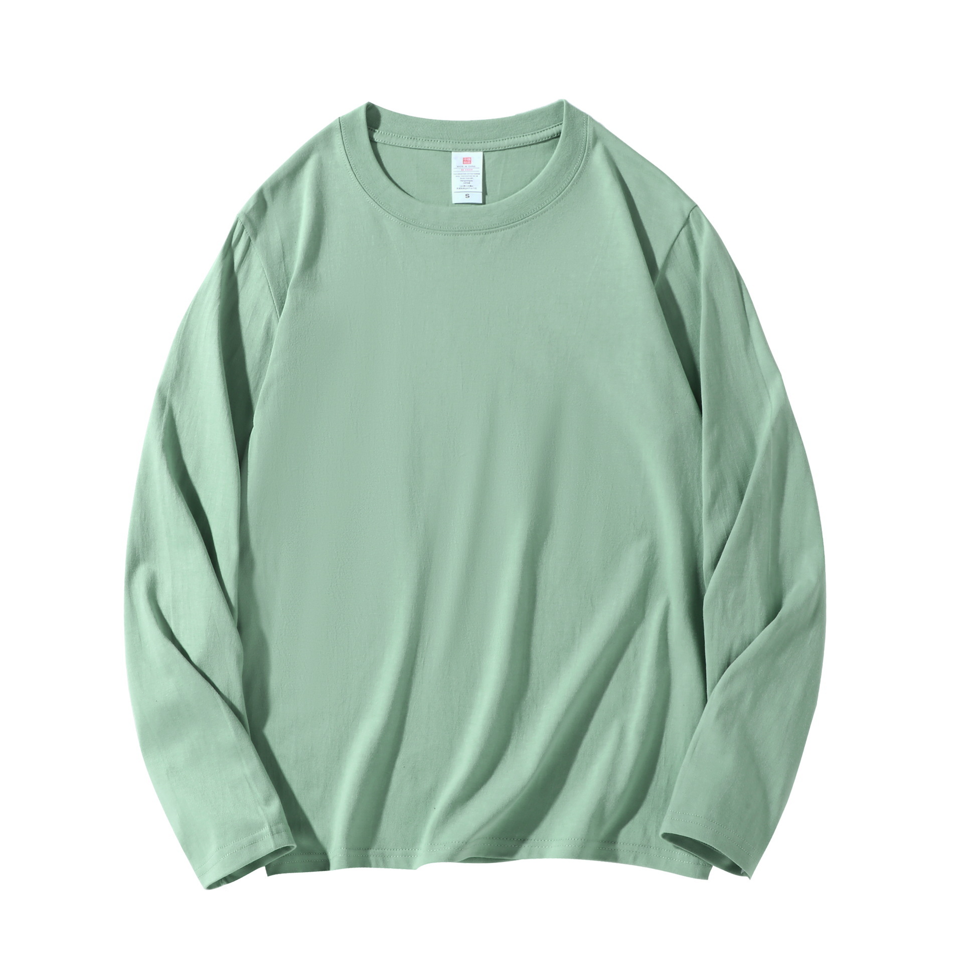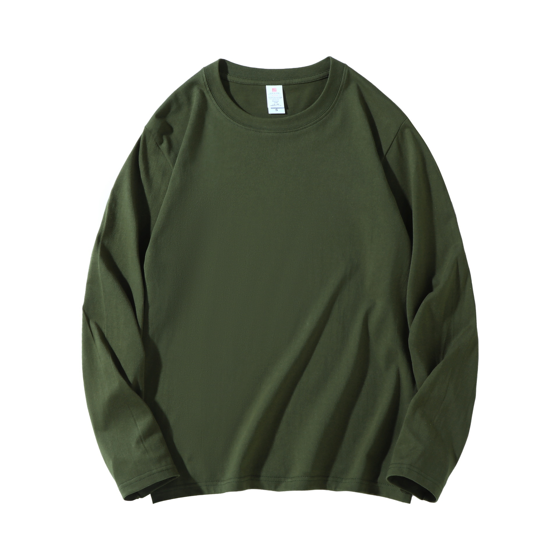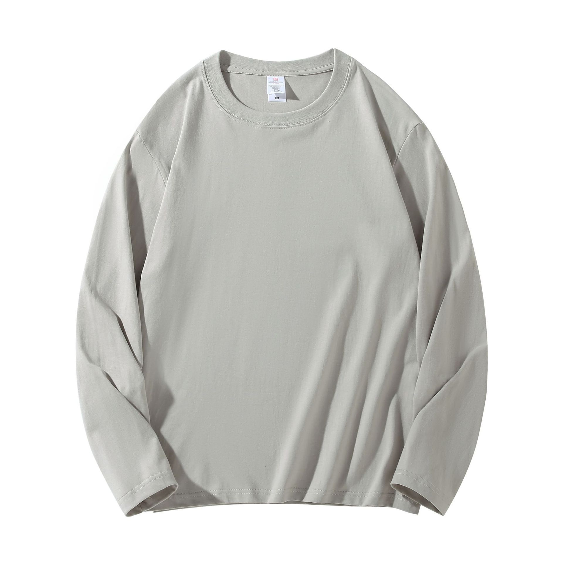 230g 긴팔 티셔츠 남성용 단색 라운드넥 루즈핏 베이직 셔츠 작업복 맞춤형 로고 인쇄
