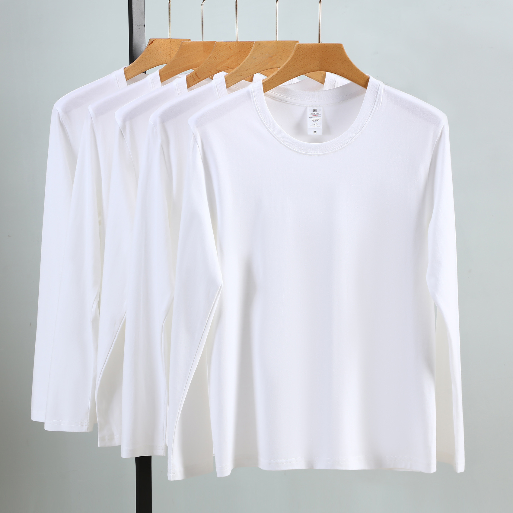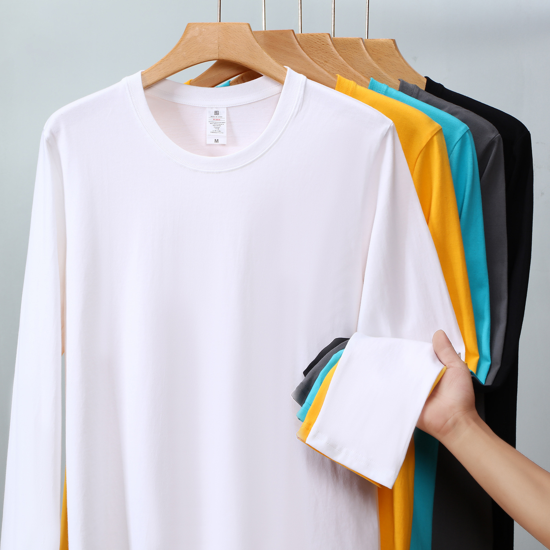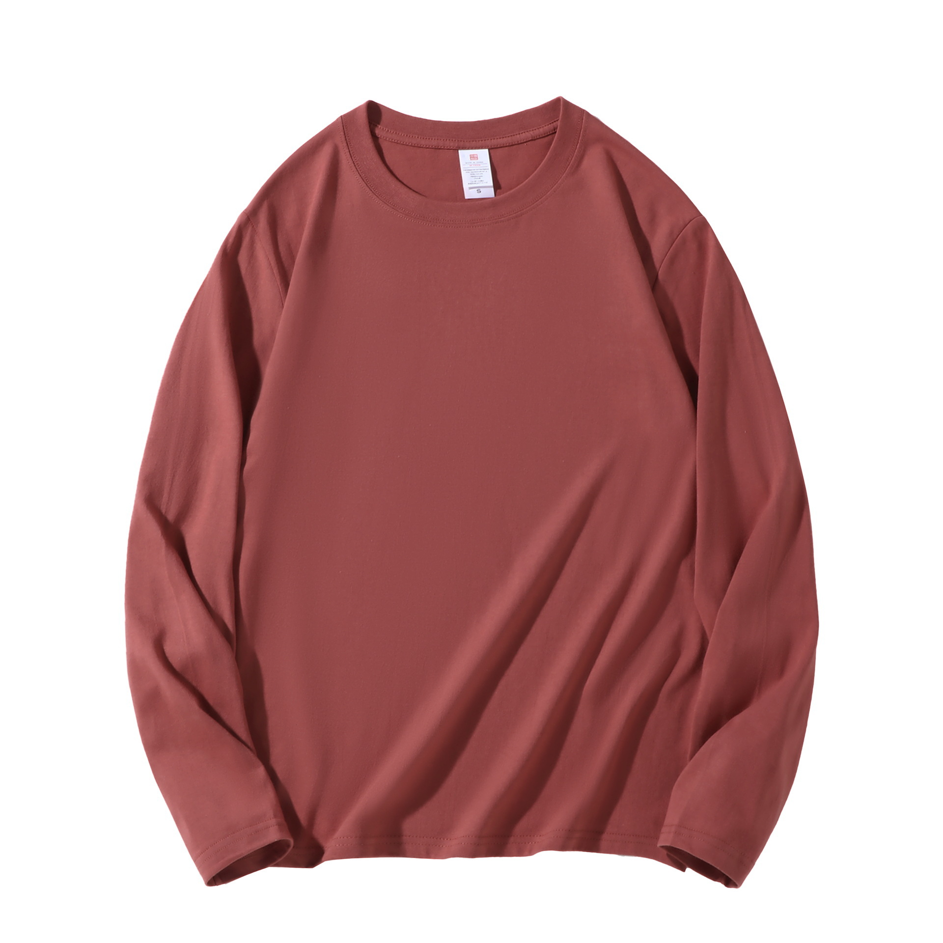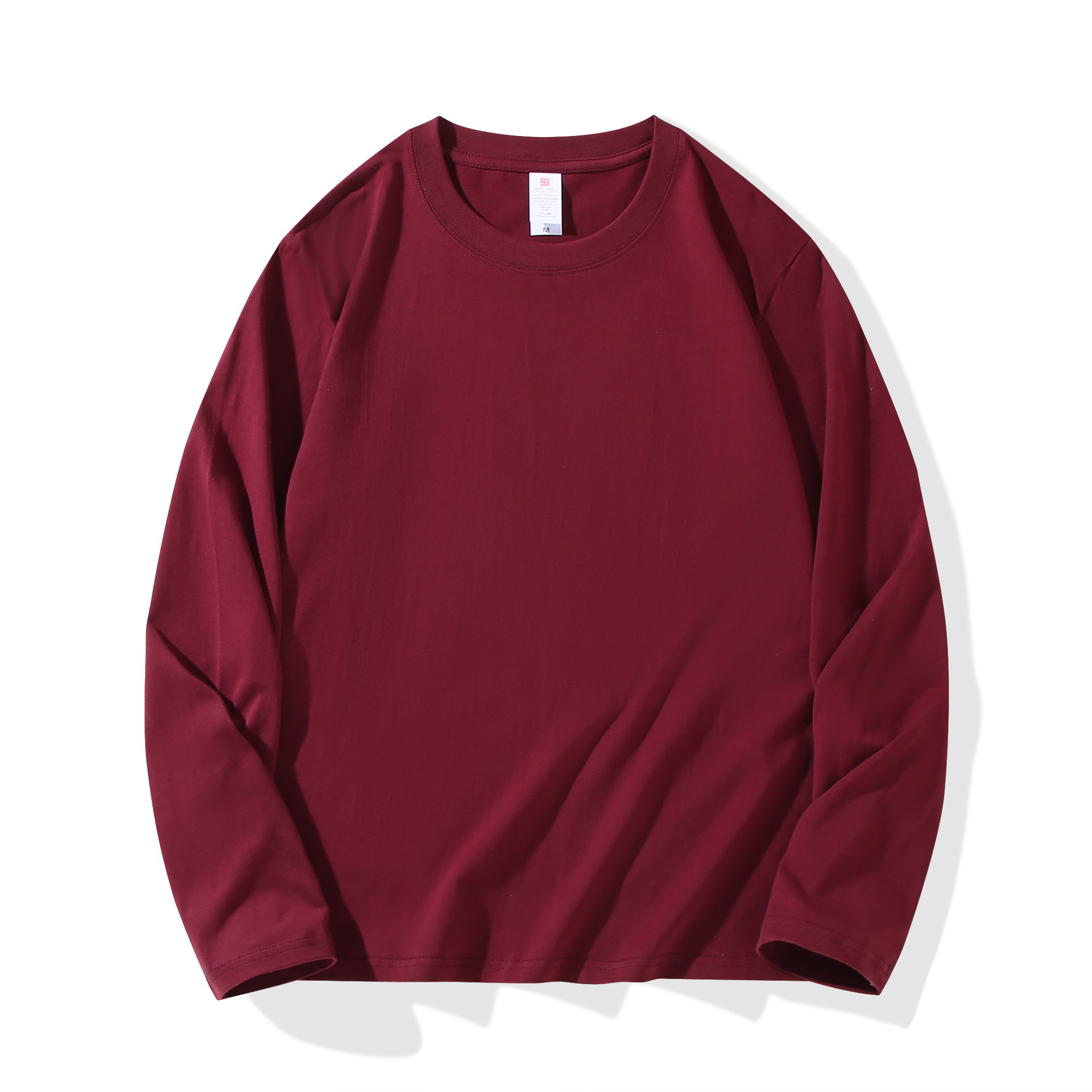 230g 긴팔 티셔츠 남성용 단색 라운드넥 루즈핏 베이직 셔츠 작업복 맞춤형 로고 인쇄