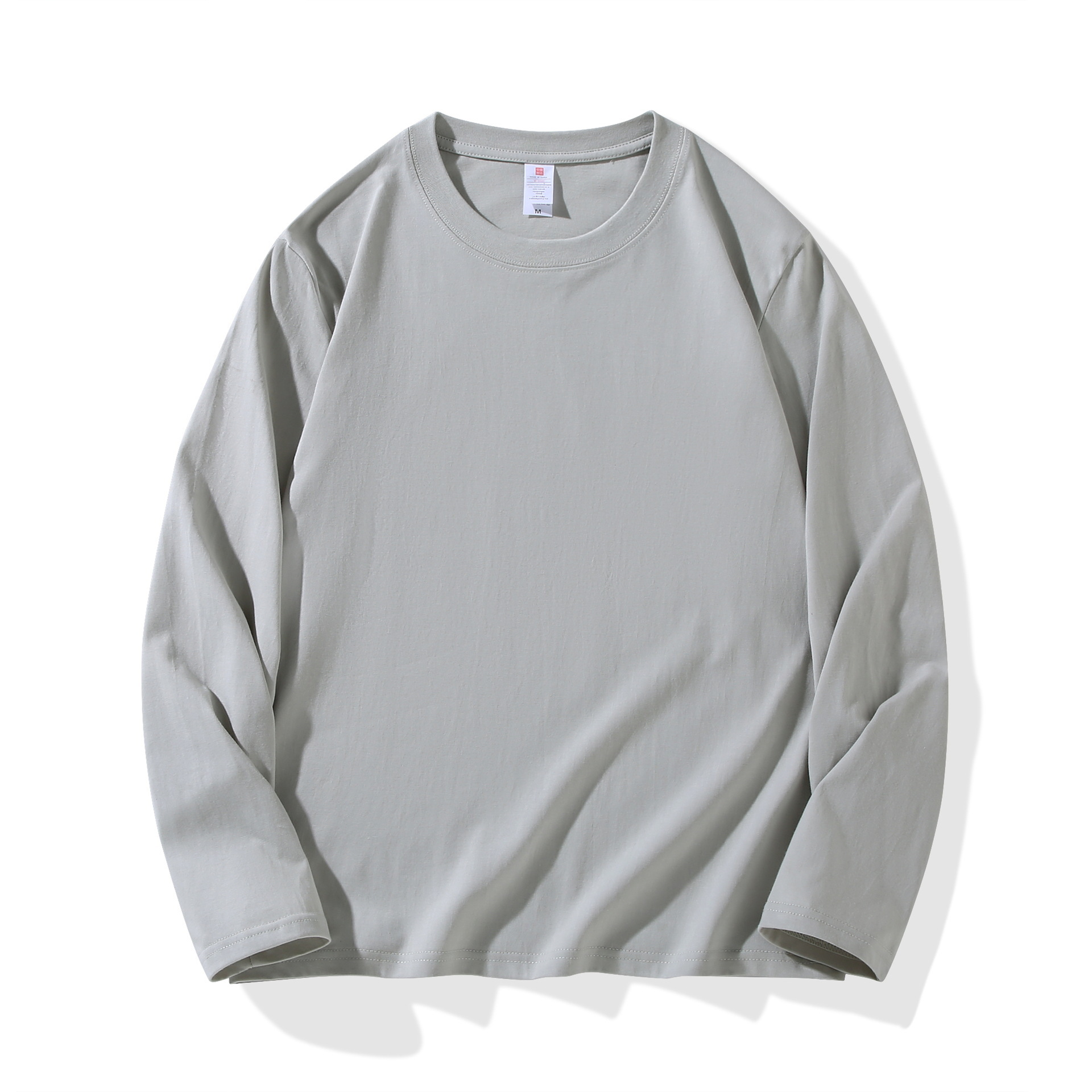 230g 긴팔 티셔츠 남성용 단색 라운드넥 루즈핏 베이직 셔츠 작업복 맞춤형 로고 인쇄스토어 가기