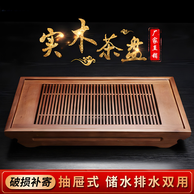 원목 티 트레이, 가정용 저장 및 배수 겸용 물 트레이, 찻잔 트레이, 쿵푸 티 세트, 찻잔 트레이, 서랍형 목재 티 테이블