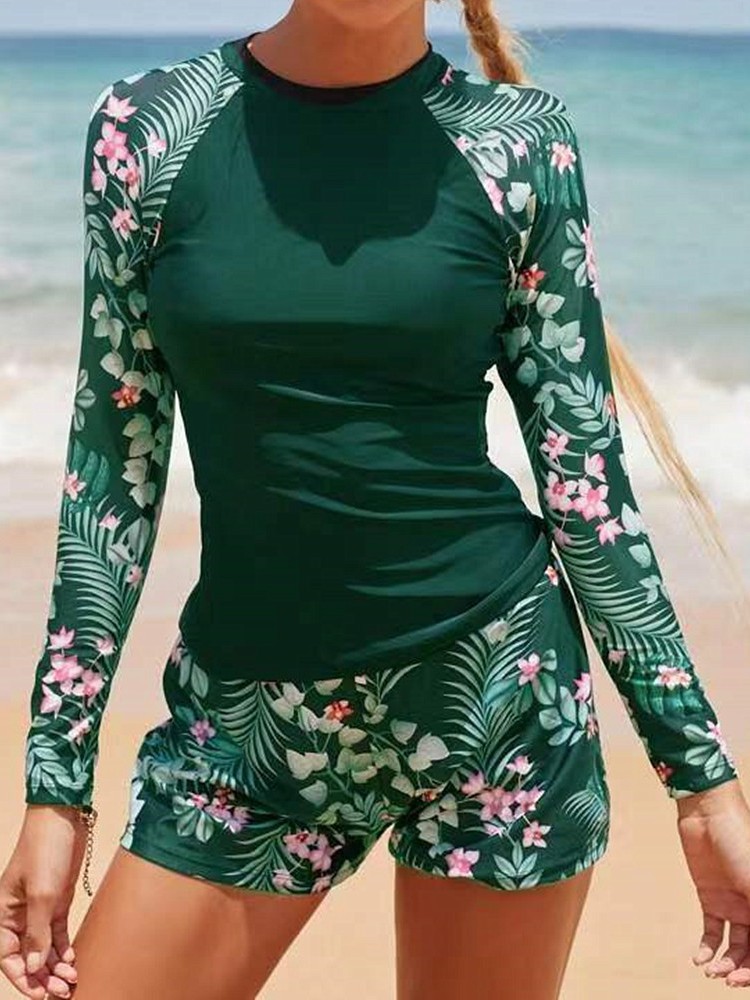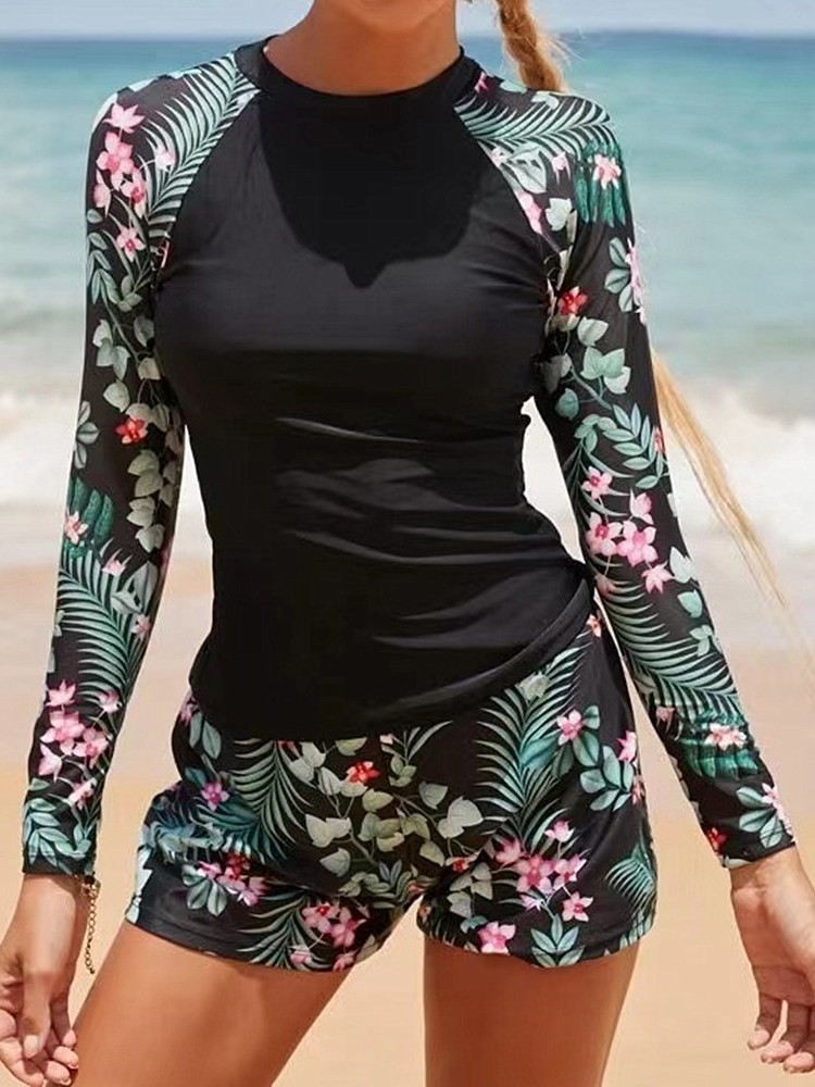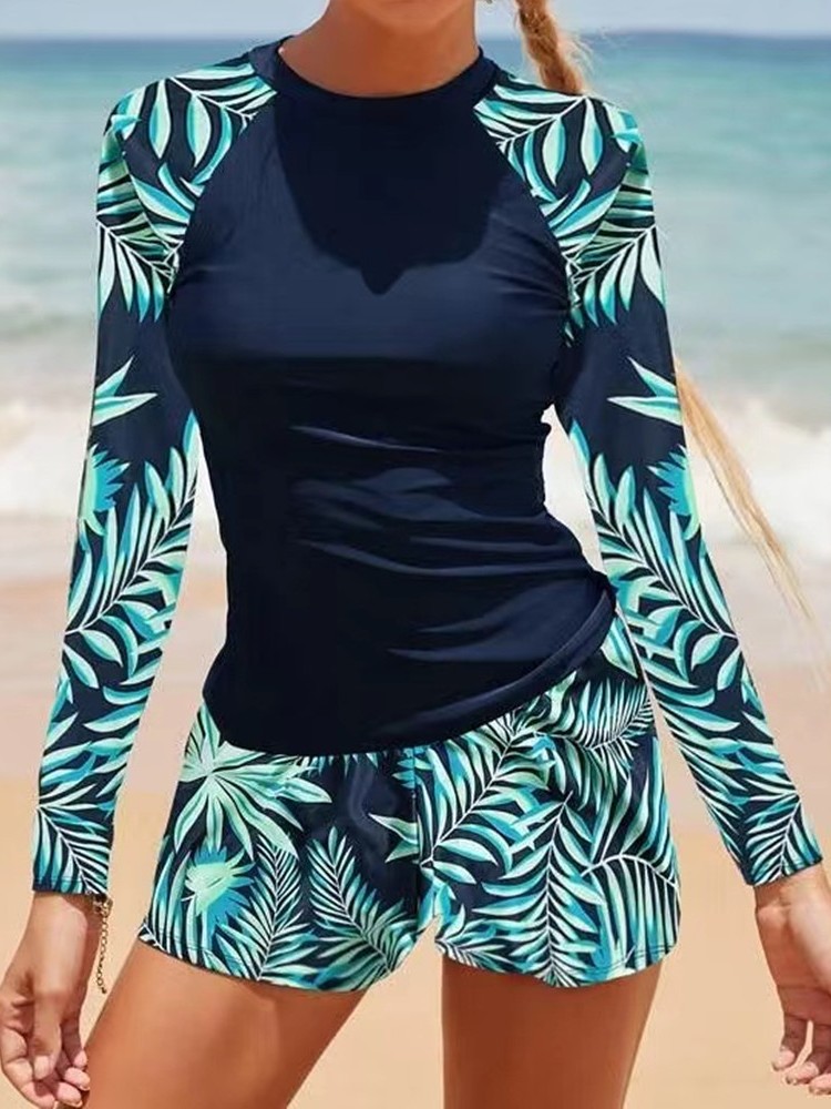 유럽과 미국의 국경 간 새로운 스타일 Amazon AliExpress 대외 무역 수영복 여성 긴팔 디지털 인쇄 보수적 인 여성 스플릿