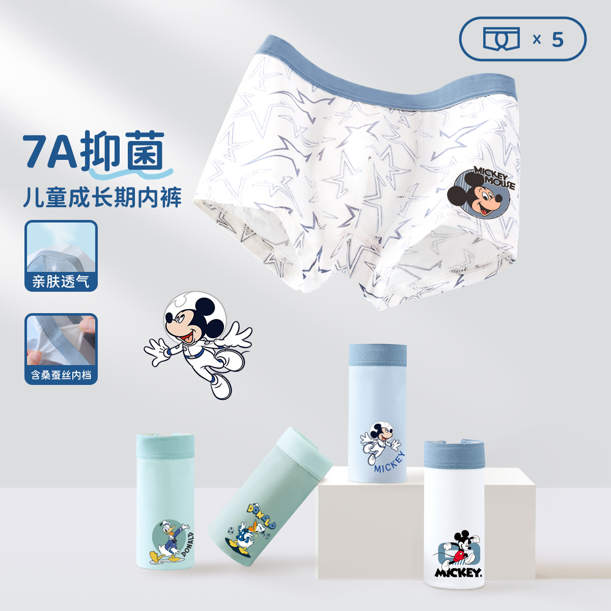디즈니 7A 항균 멀버리 실크 바닥 가랑이 5팩 소년 속옷 여름 얇은 중대형 어린이 복서 팬티스토어 가기