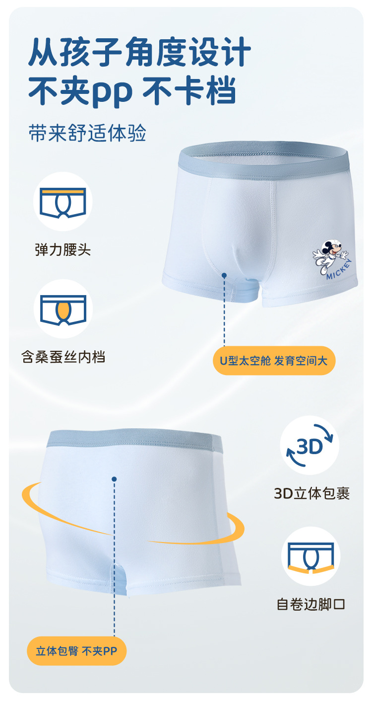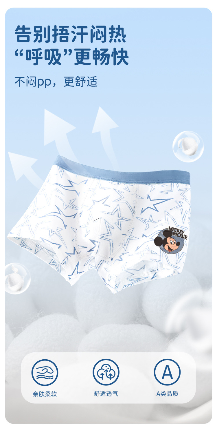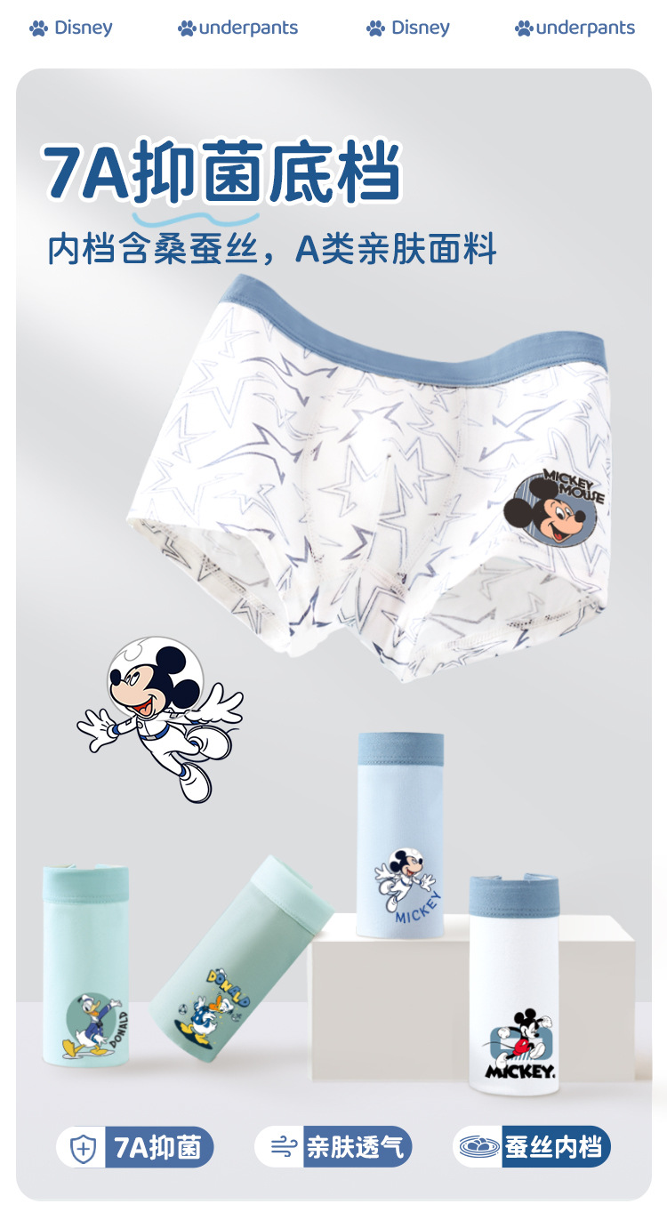디즈니 7A 항균 멀버리 실크 바닥 가랑이 5팩 소년 속옷 여름 얇은 중대형 어린이 복서 팬티