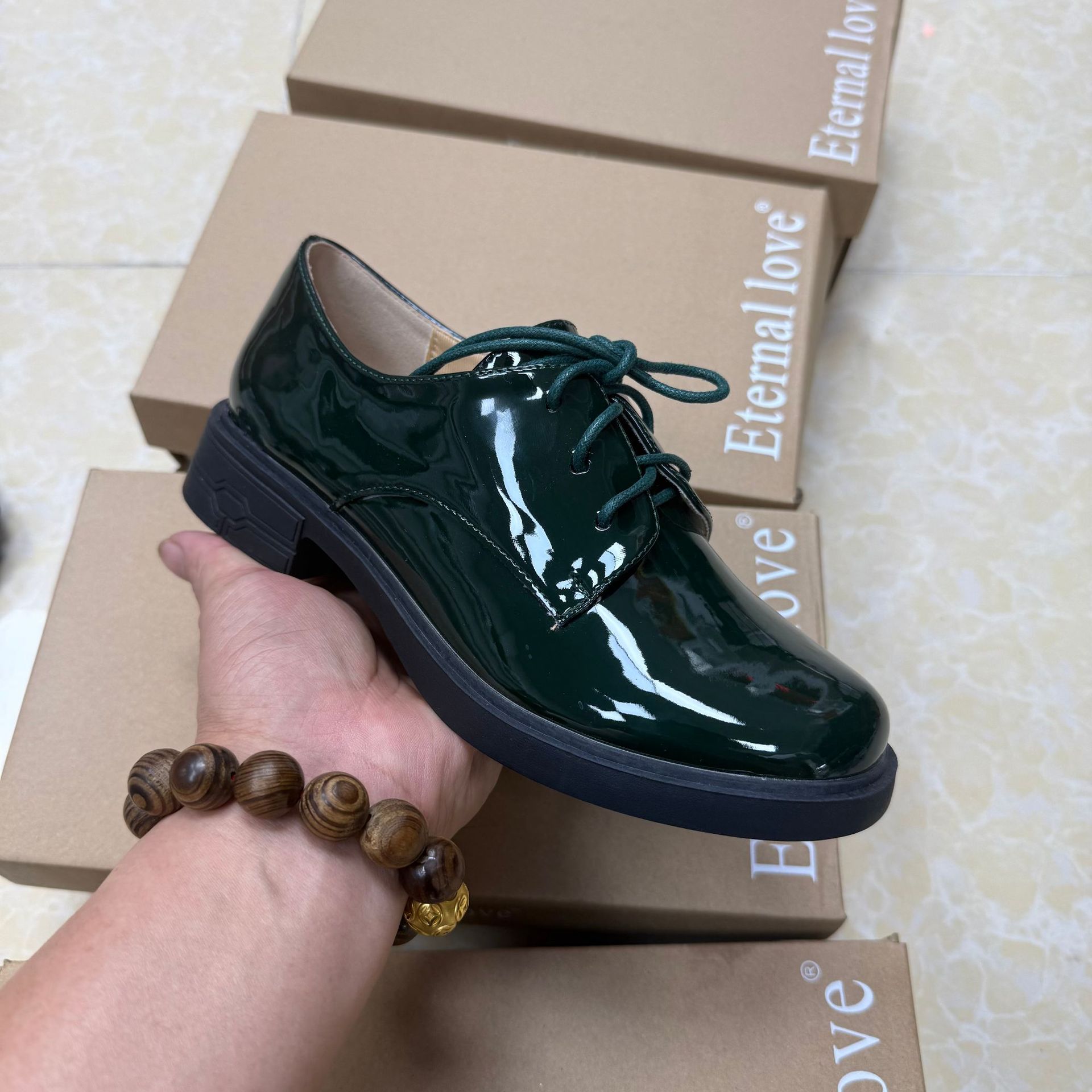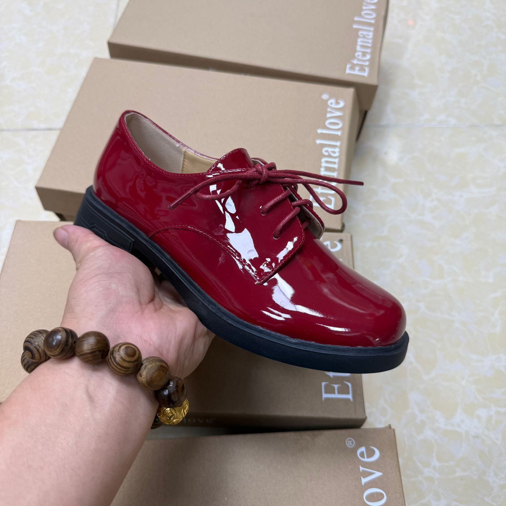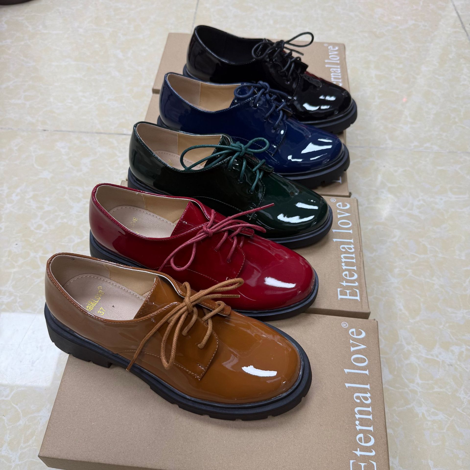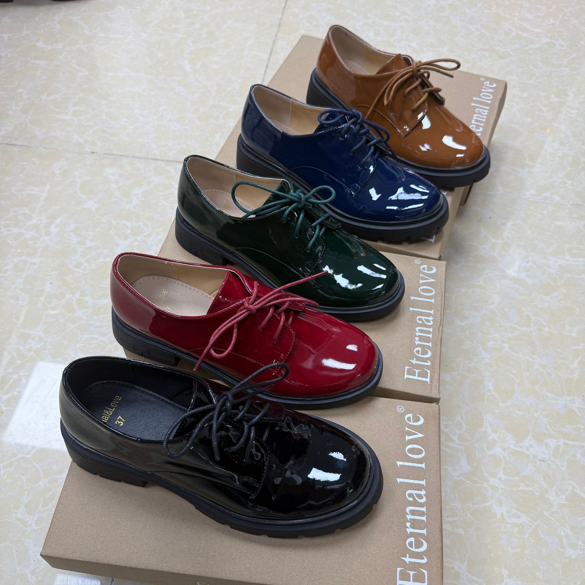 대외 무역 새로운 영국 스타일 다목적 레이스 업 특허 가죽 작은 가죽 신발 여성 신발