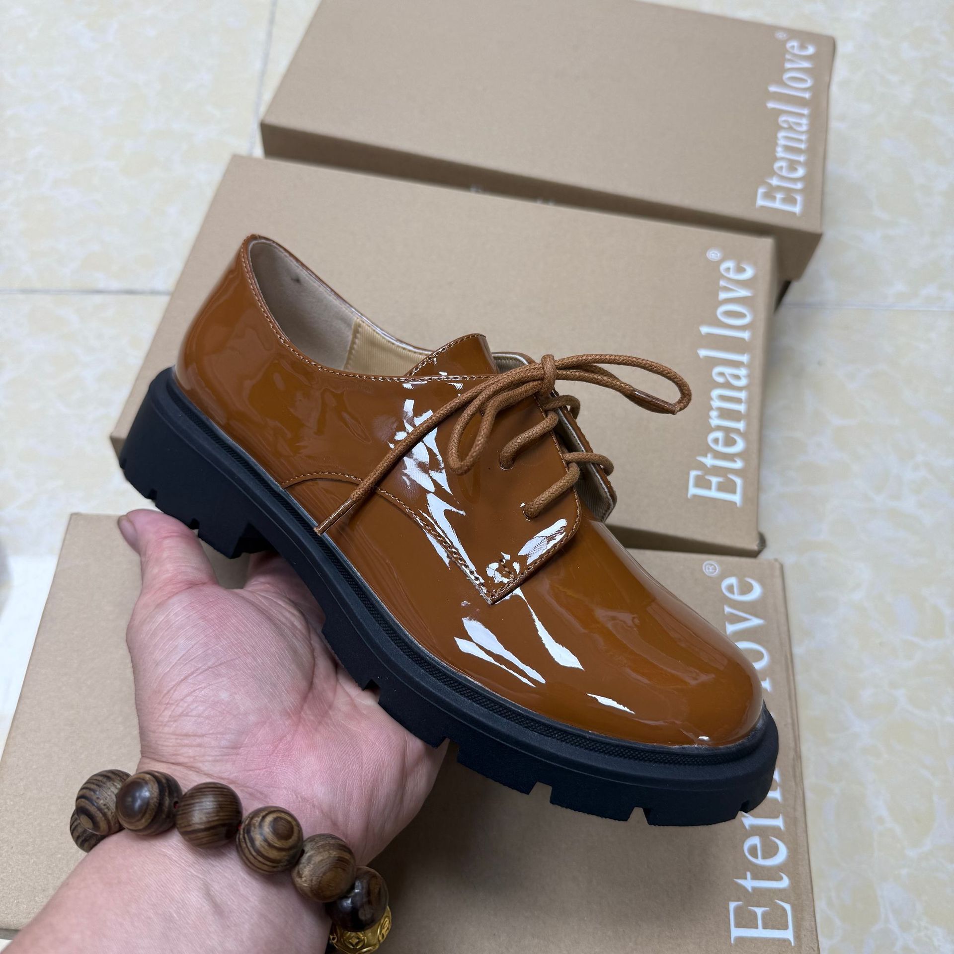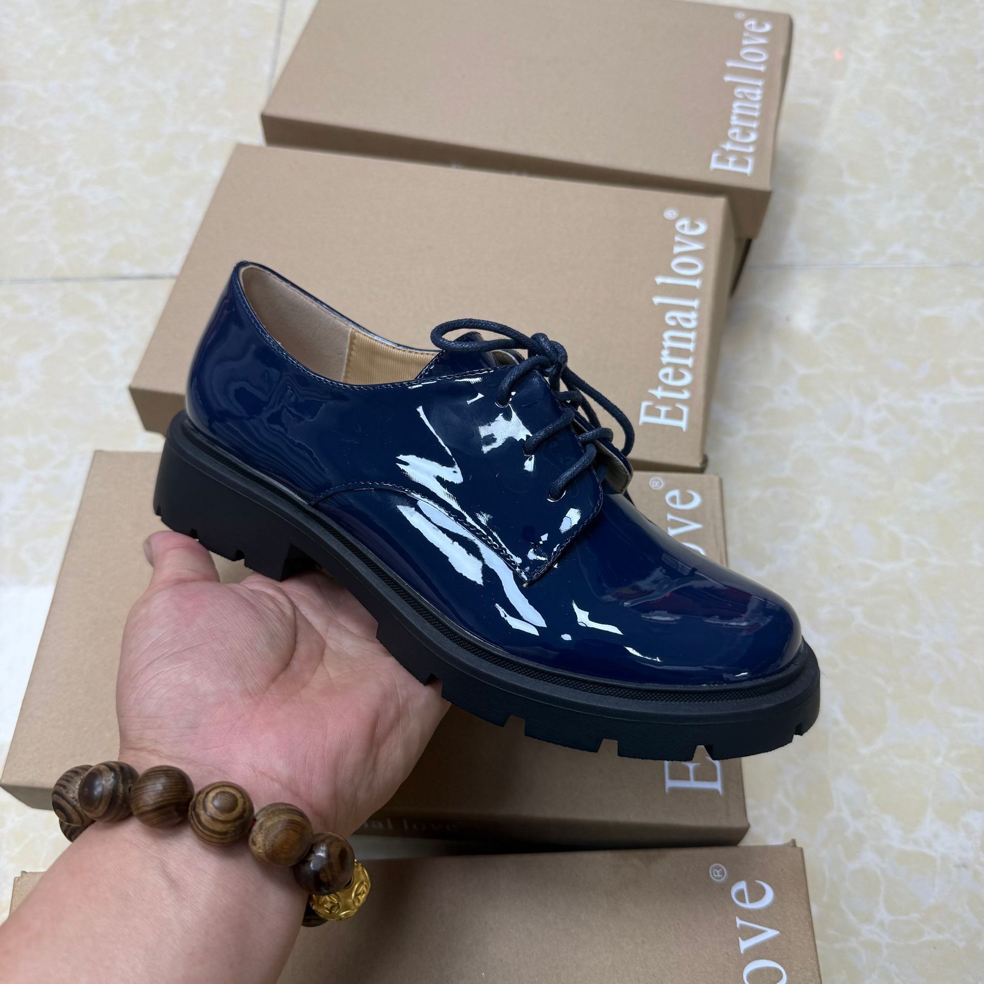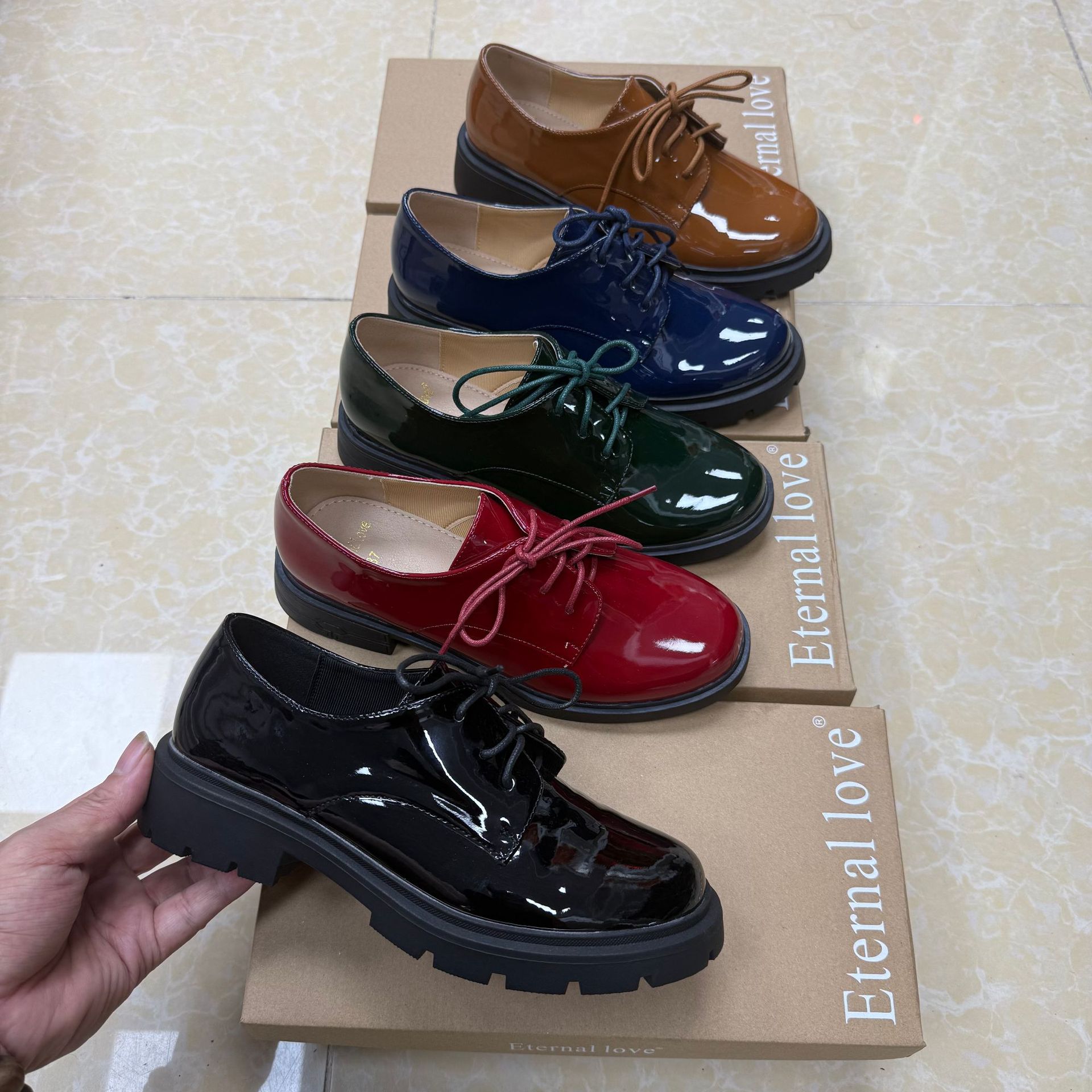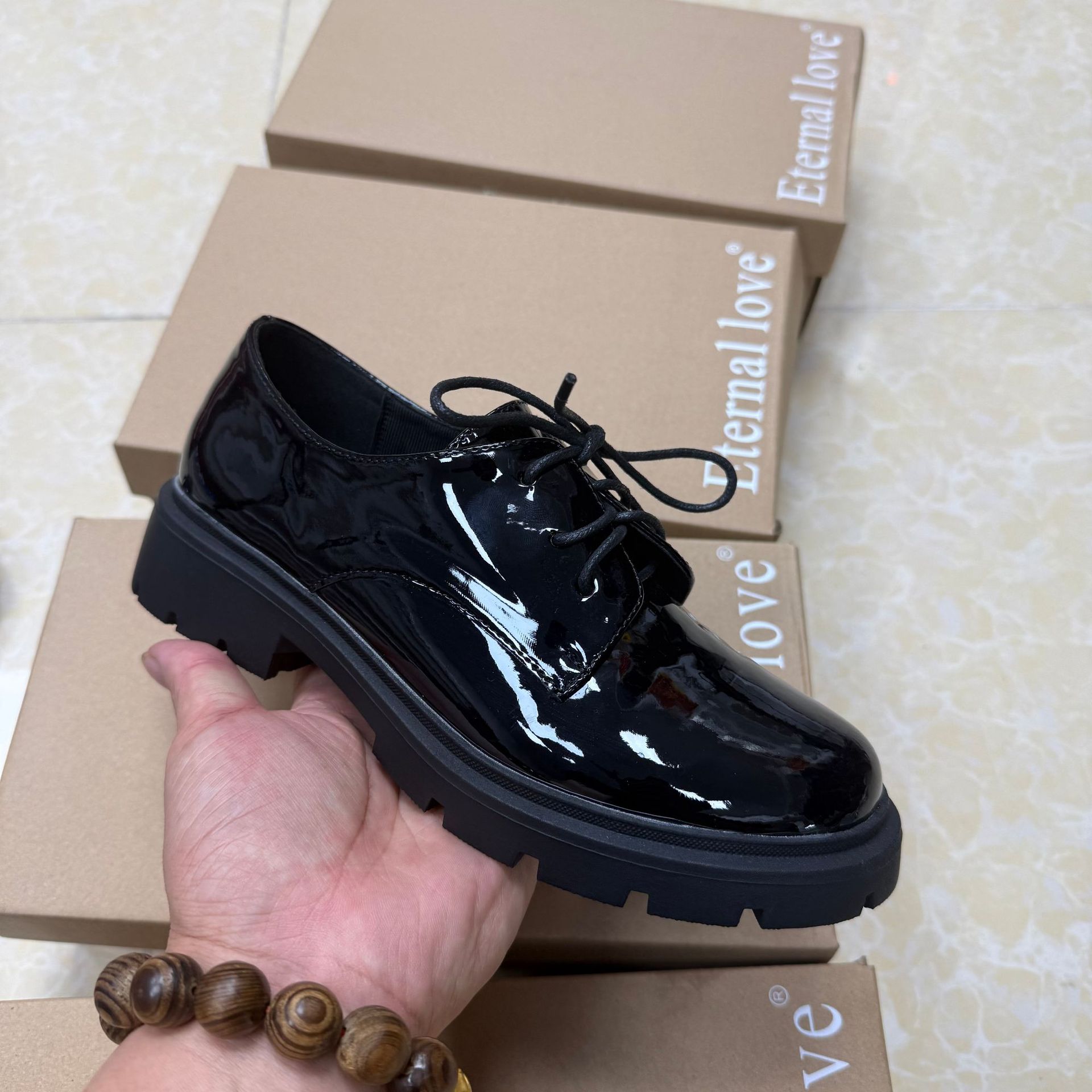 대외 무역 새로운 영국 스타일 다목적 레이스 업 특허 가죽 작은 가죽 신발 여성 신발스토어 가기