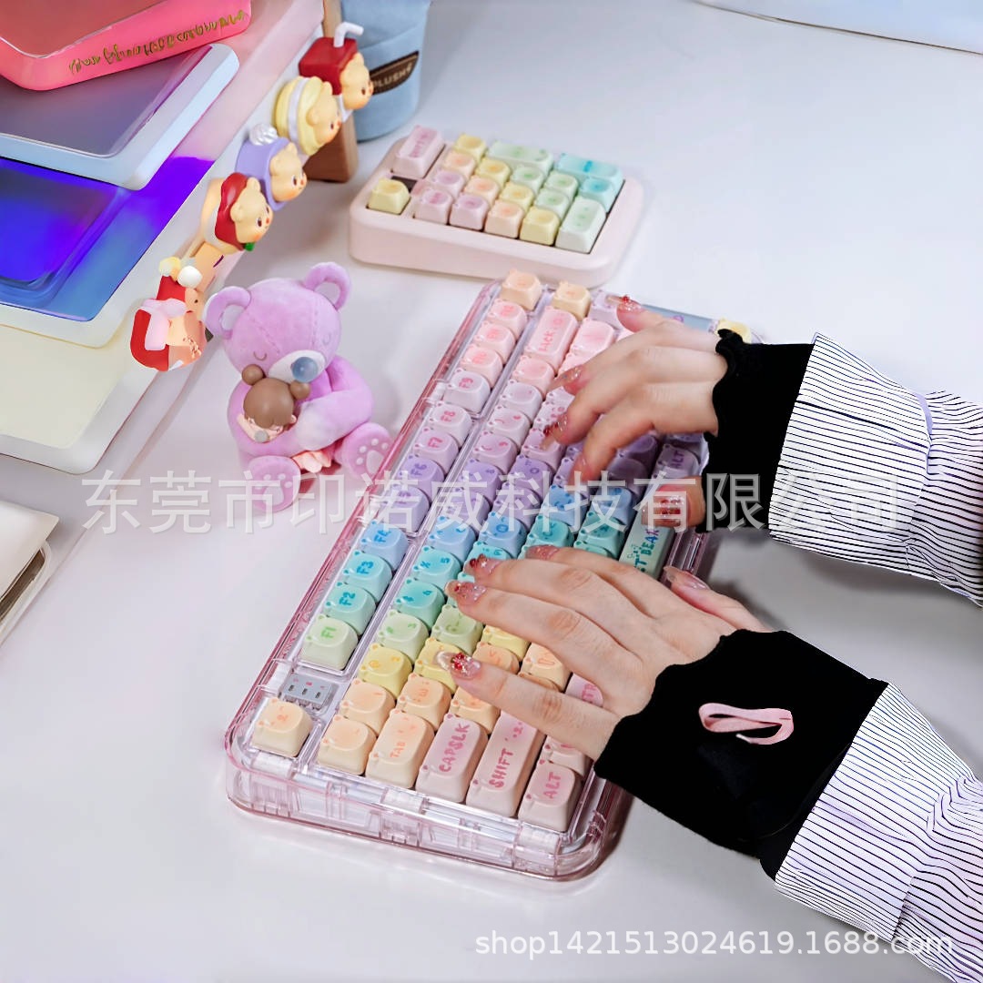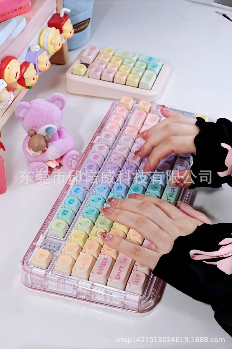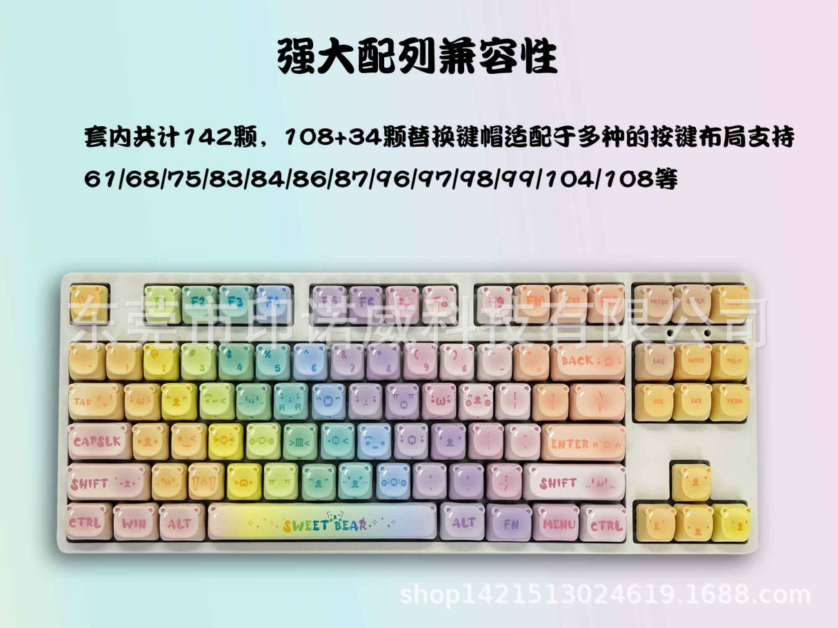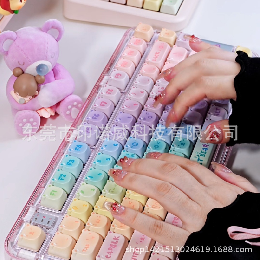 캔디 베어 키 캡 핑크 귀여운 만화 MOA 고도로 승화 된 공정 144 키 기계식 키보드 캡 전체 세트스토어 가기