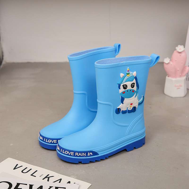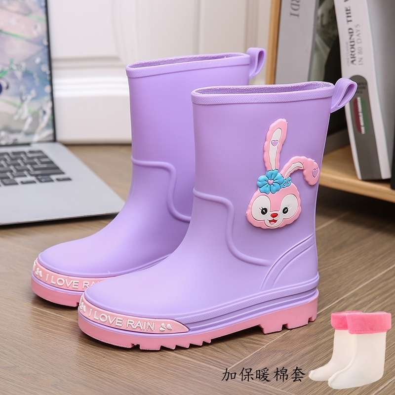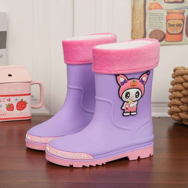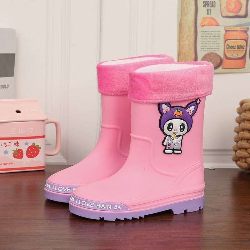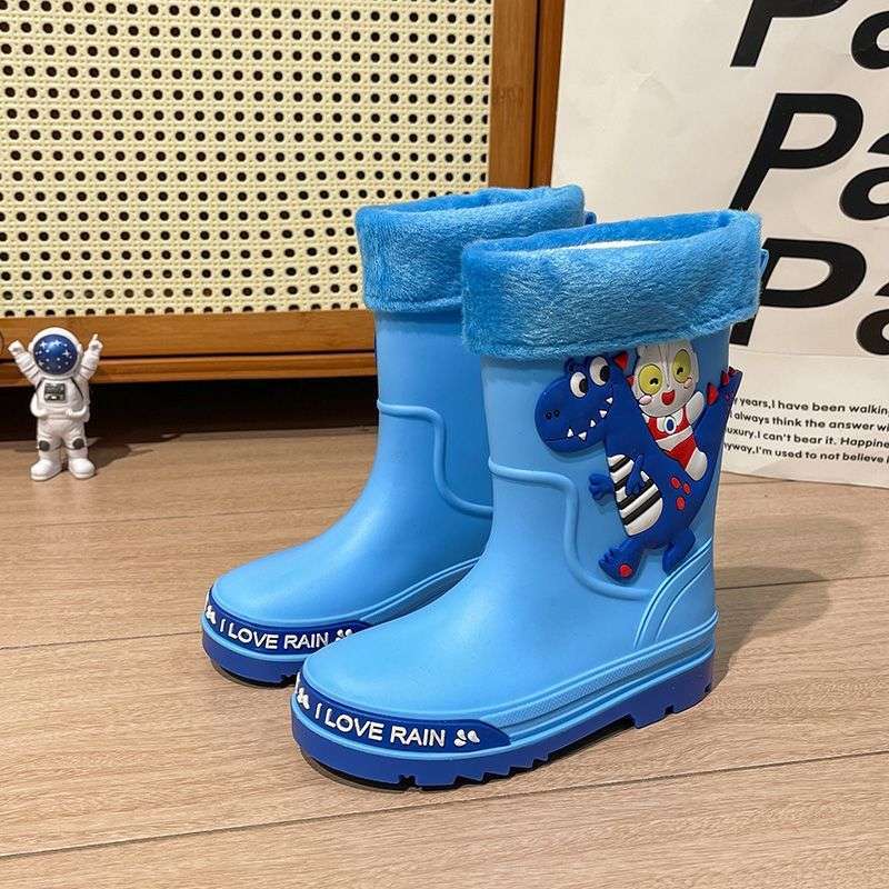 어린이 장화, 소년 소녀를 위한 올 시즌 방수 장화, 벨벳 및 두꺼운, 중대형 어린이 및 학생을 위한 미끄럼 방지 미드 튜브 워터 슈즈스토어 가기