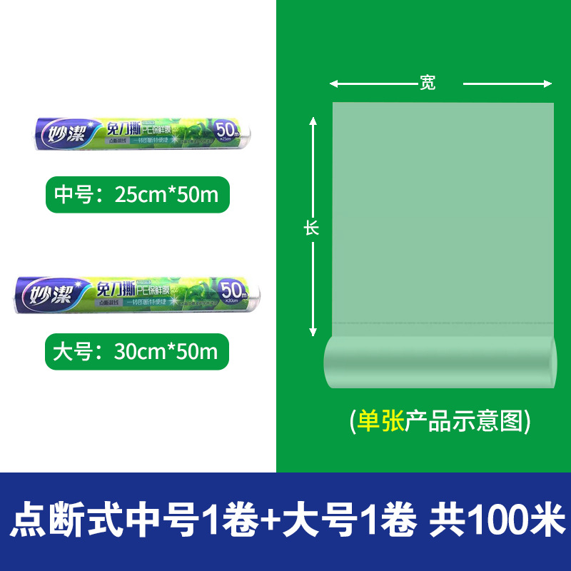 Miaojie 접착 필름 식품 등급 PE 가정용 경제적 대형 롤 점파 플라스틱 필름 냉장고 전자 레인지 냉장스토어 가기