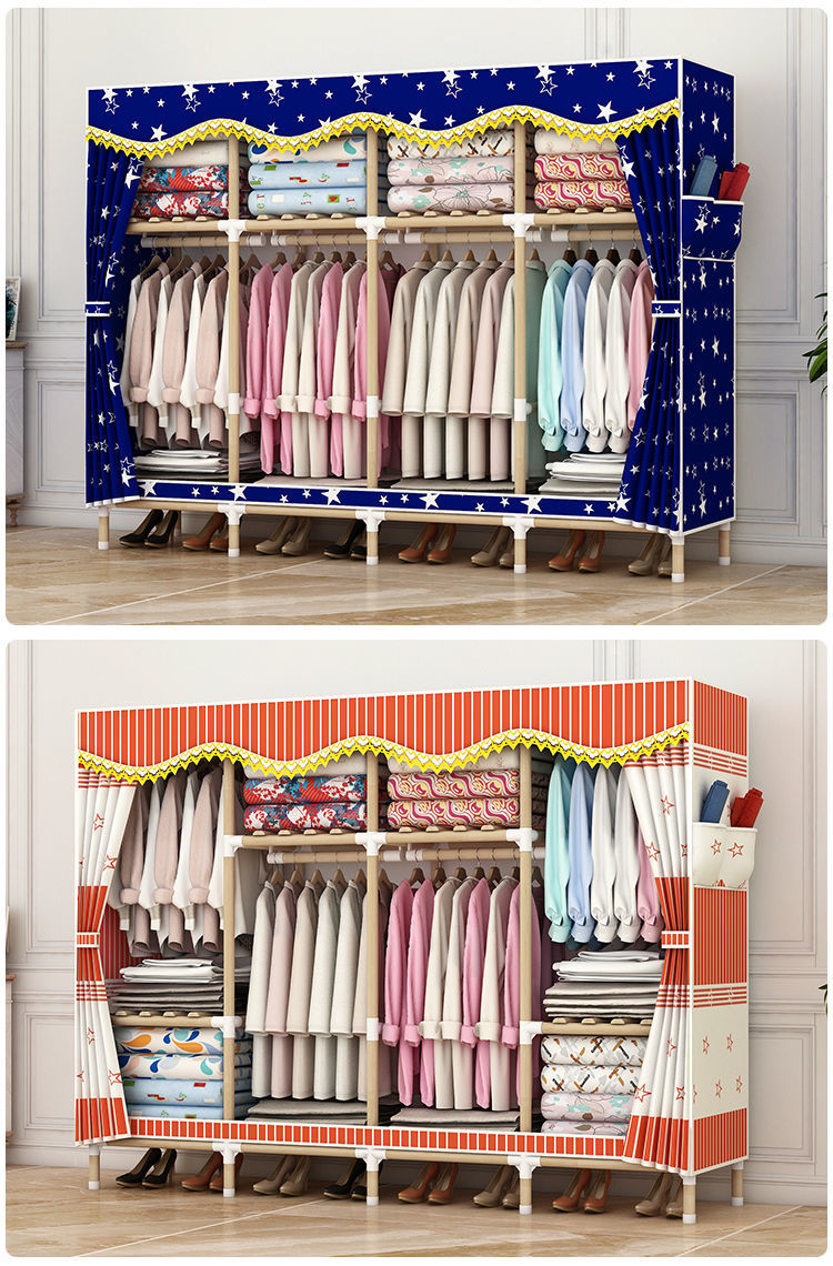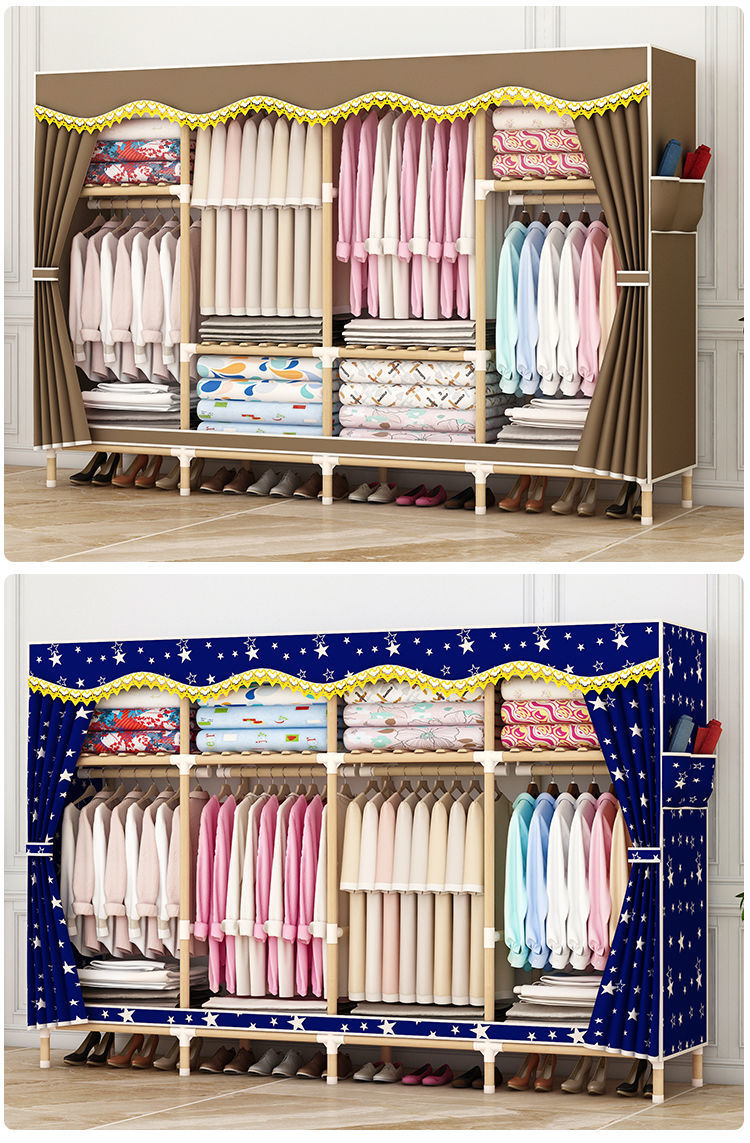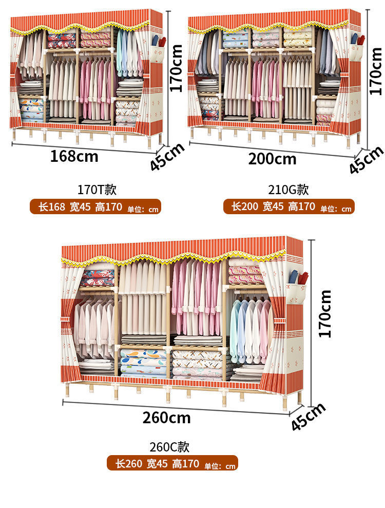 옷장 간단한 조립 옷장 단단한 나무 가정용 옷장 침실 가구 임대 주택 두꺼운 천 옷장 무역스토어 가기