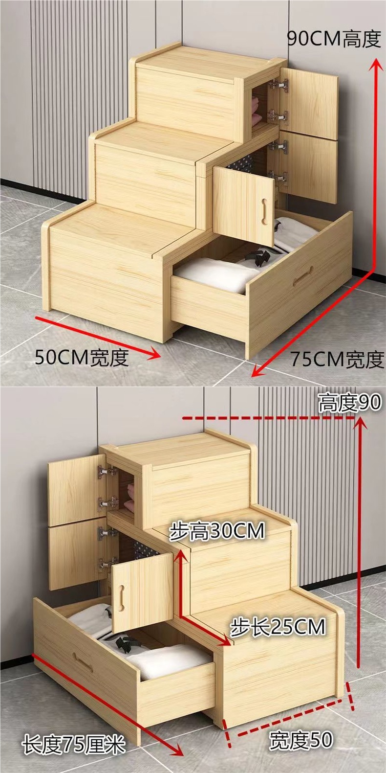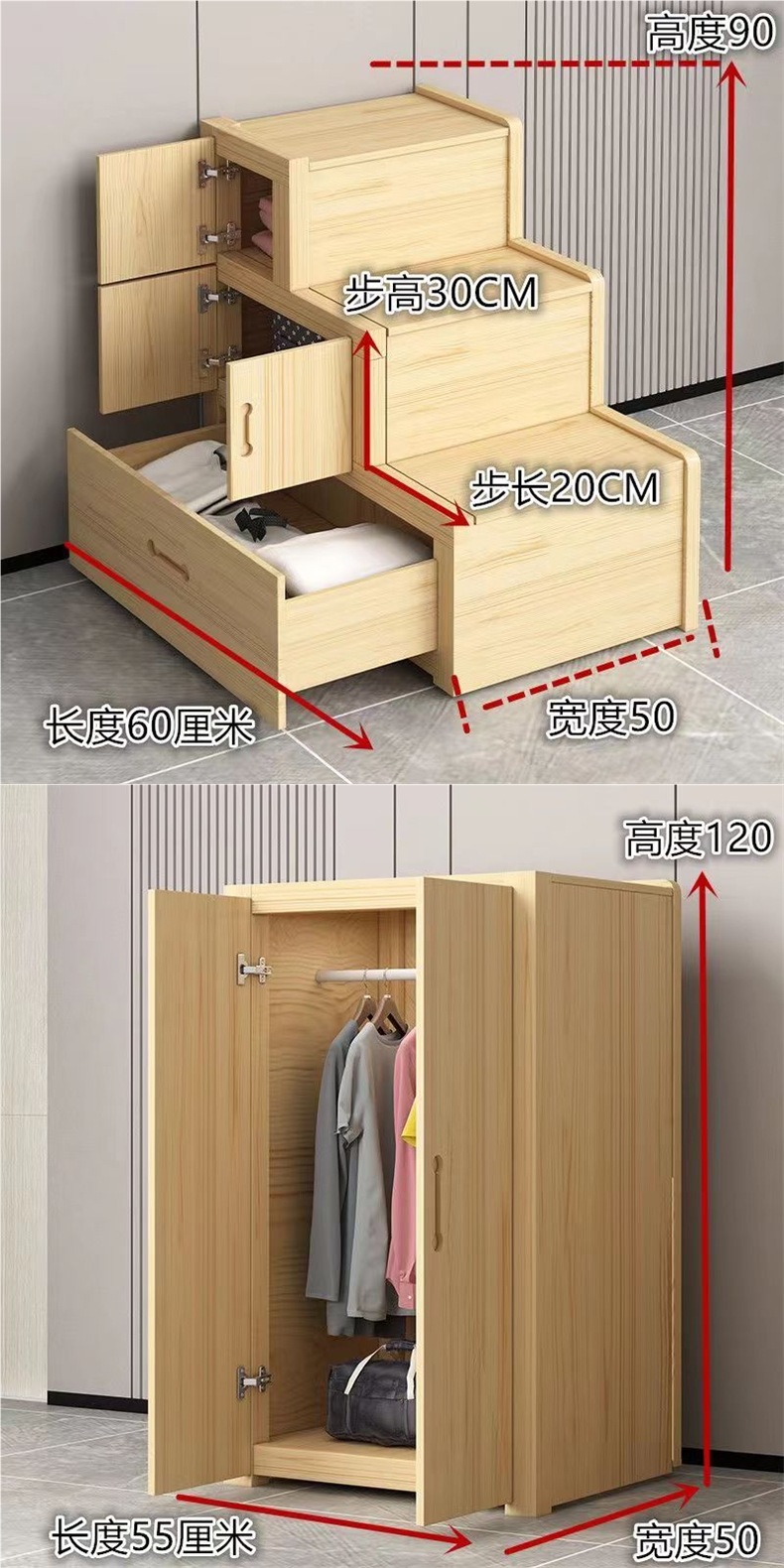소나무 원목 이층 침대 계단 별도 판매 목재 계단 단계 가정용 침대 이층 사다리 다기능스토어 가기