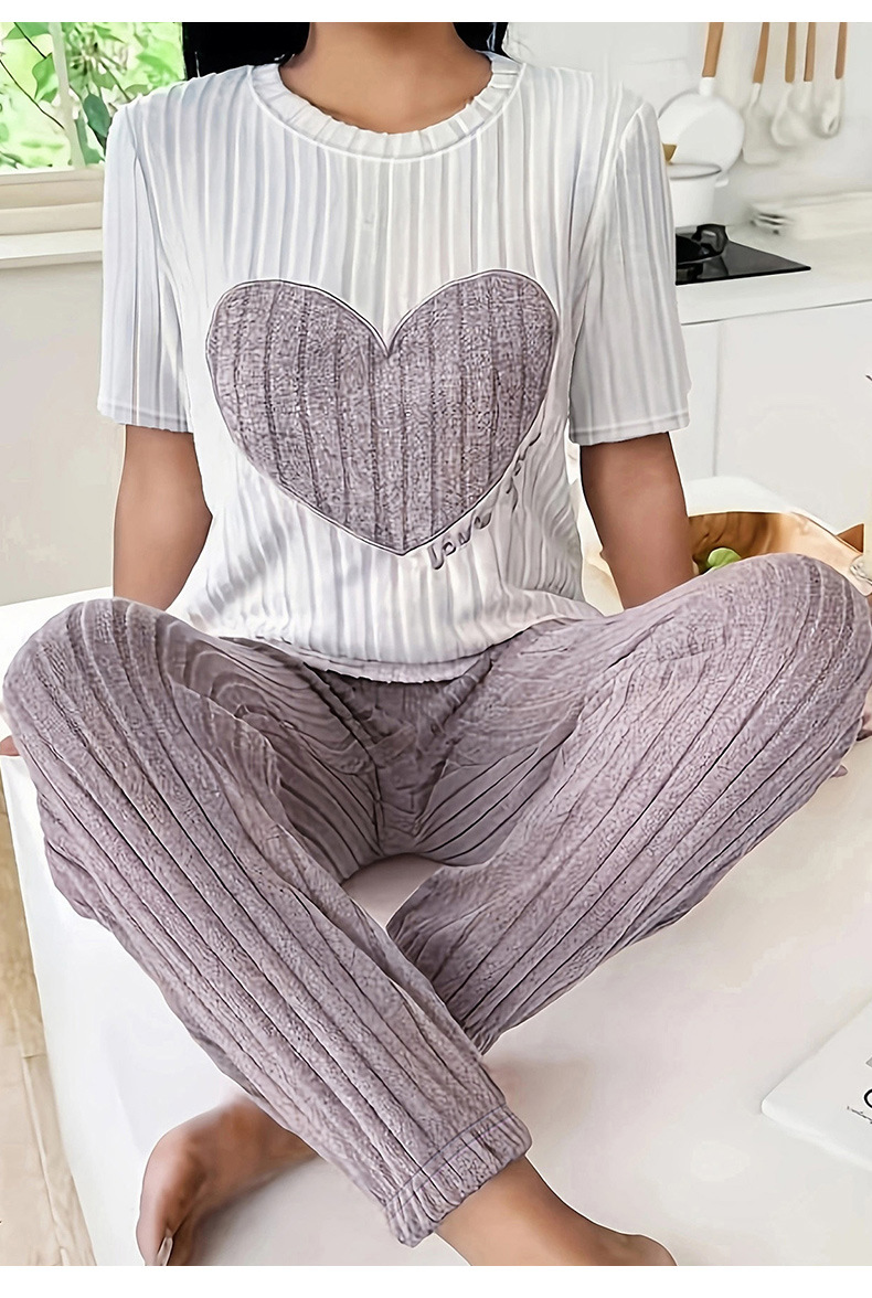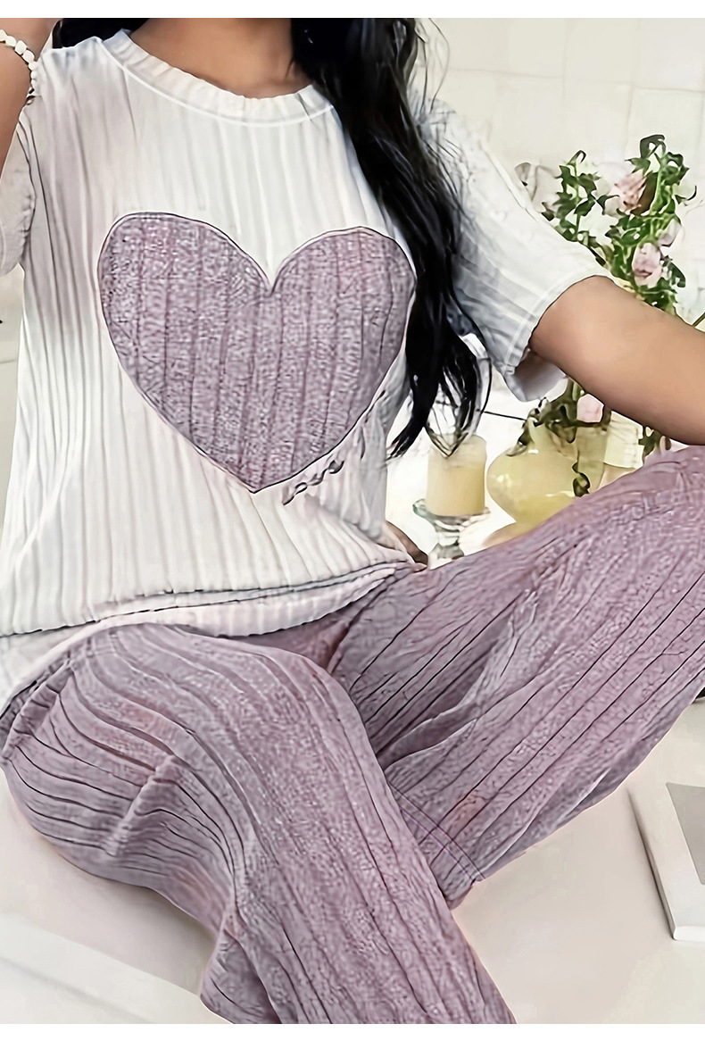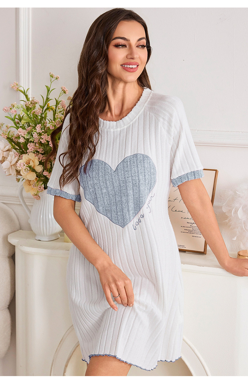 공장 도매 해외 직구 사계절 스타일 하트 모양 유럽풍 부드럽고 피부 친화적인 편안한 홈웨어 긴팔/반팔 투피스 잠옷 세트스토어 가기