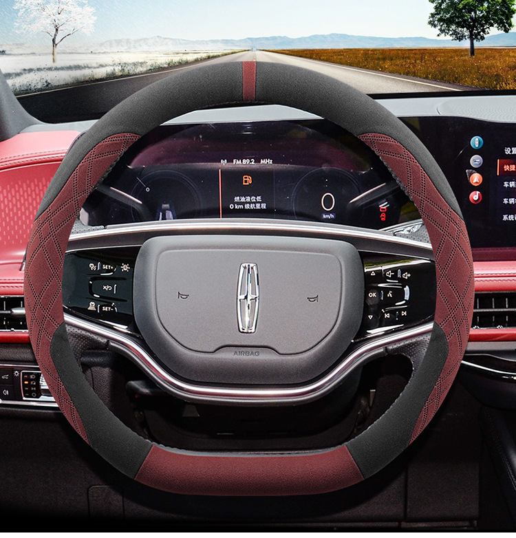 2024 링컨 Z 모험가 스티어링 휠 커버 정품 가죽 초박형 스웨이드 땀 흡수 특수 자동차 핸들 커버 겨울