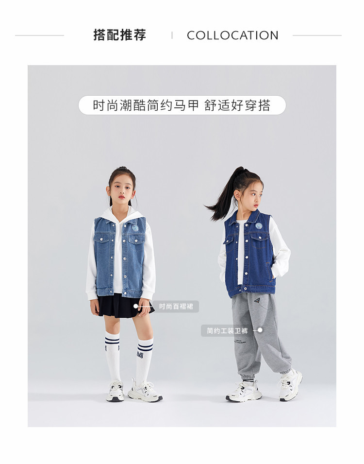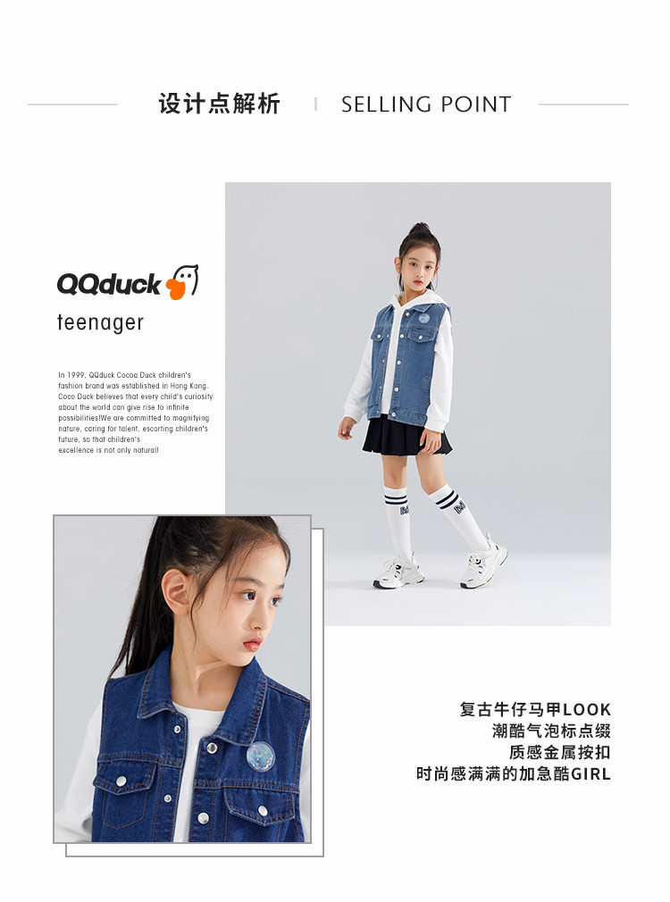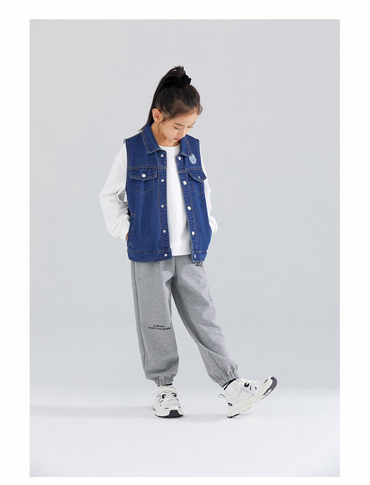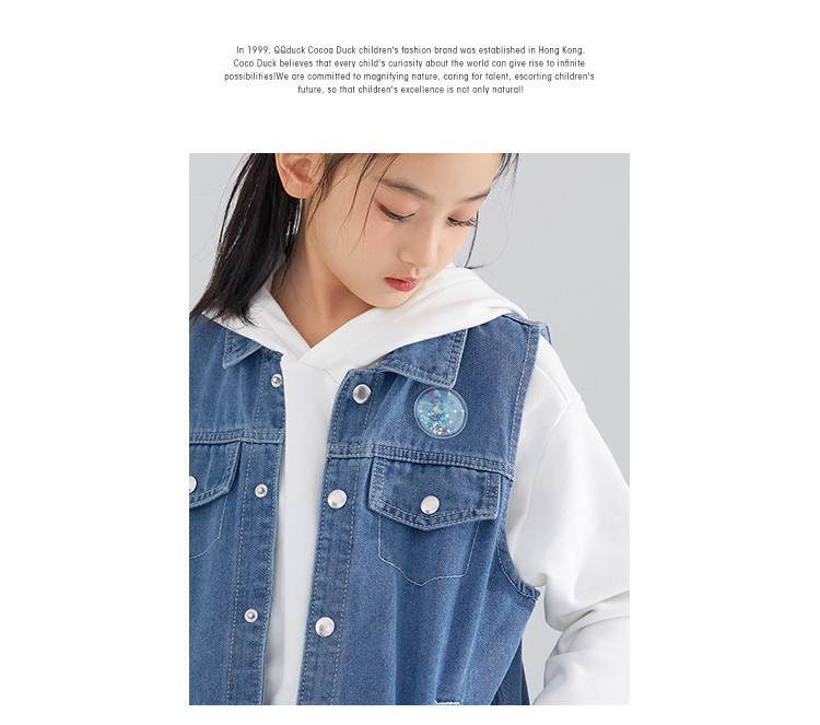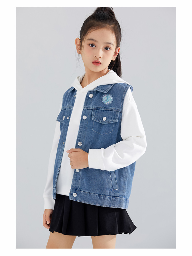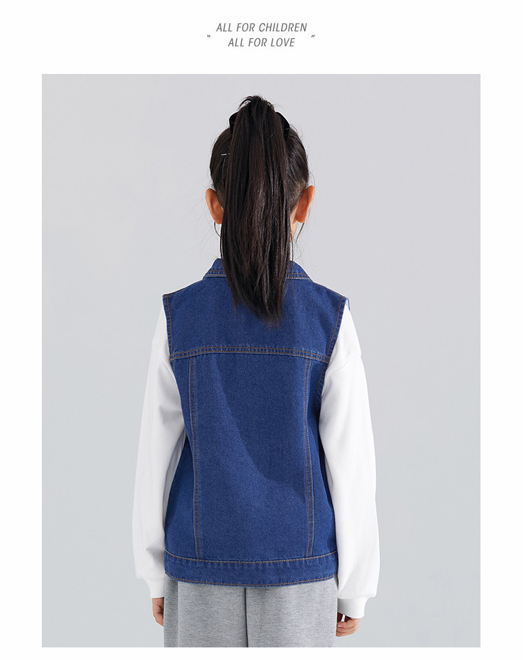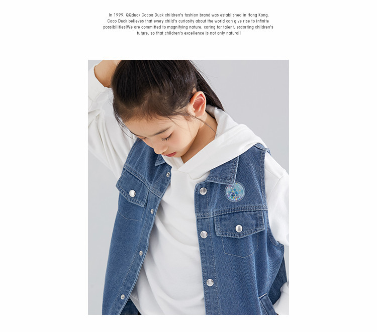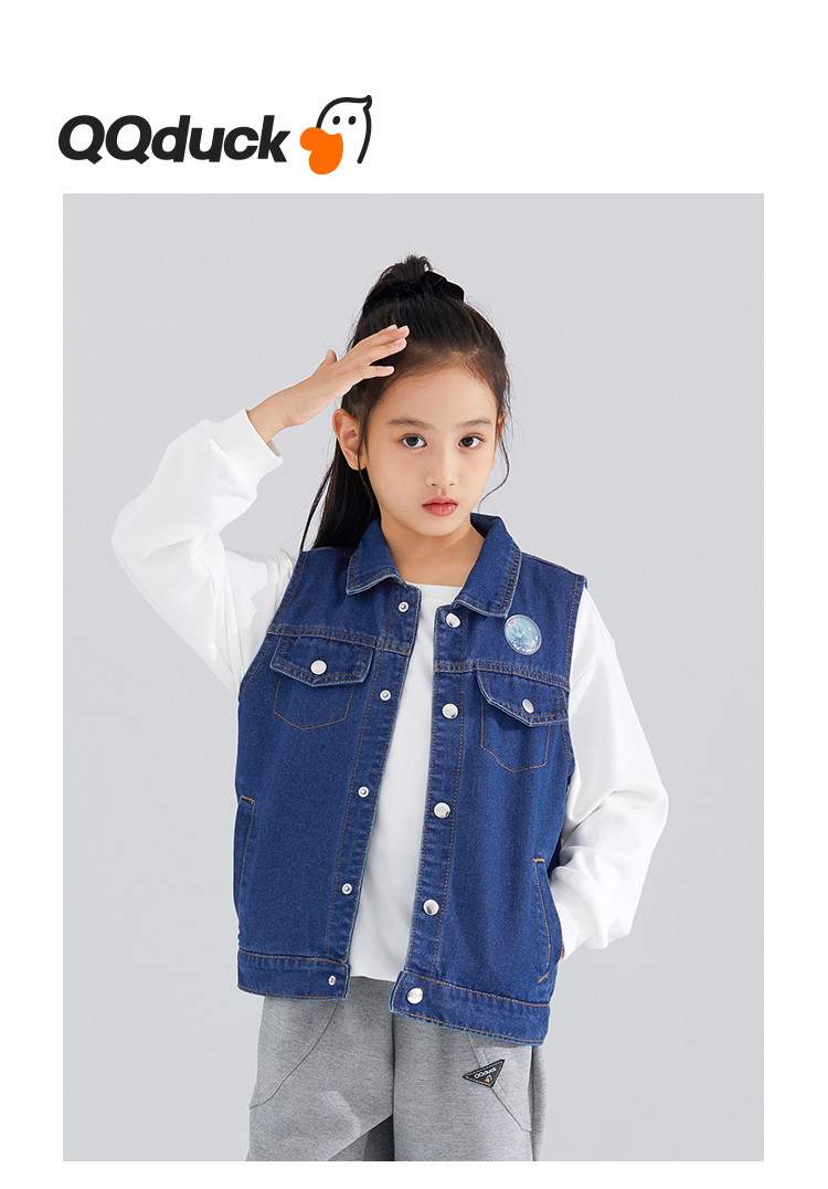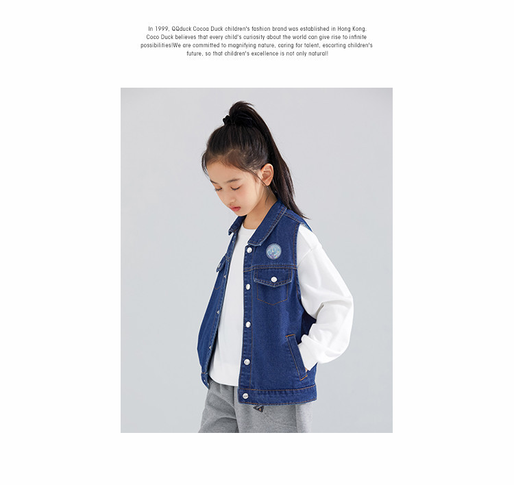 코코다 아동복 심플하고 다재다능한 데님 조끼 봄 스타일 여아 패션 데님 조끼 중대형 아동 조끼스토어 가기
