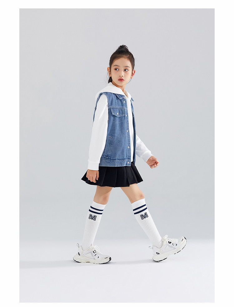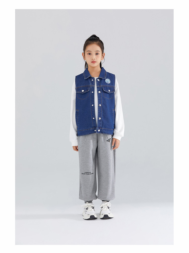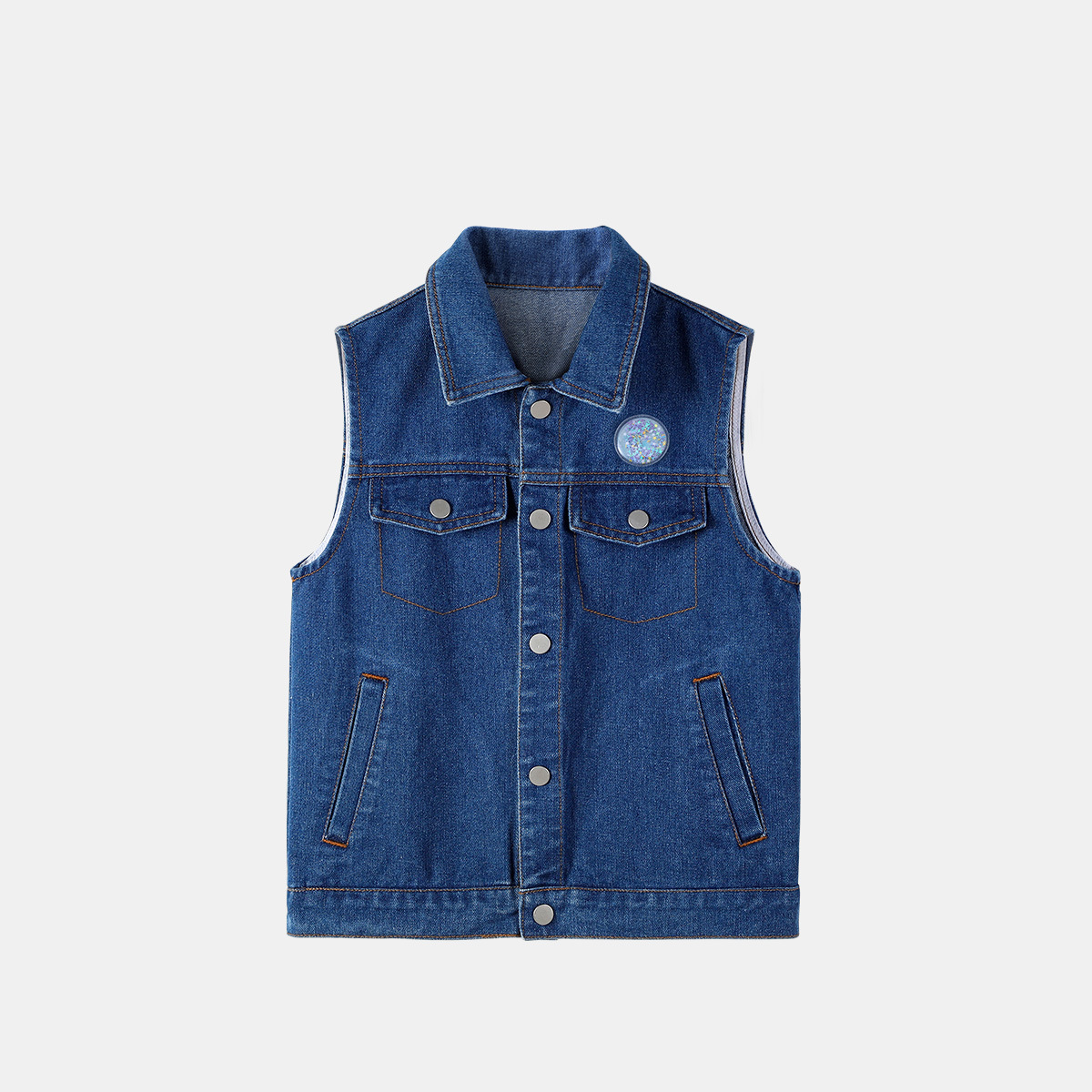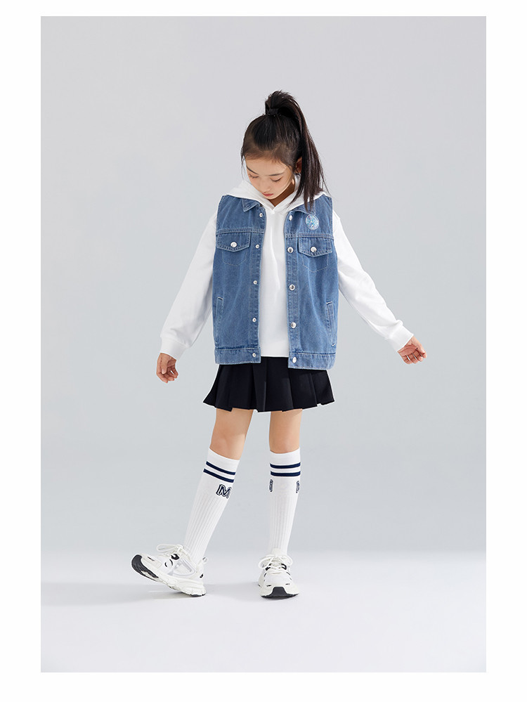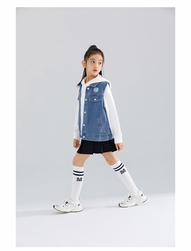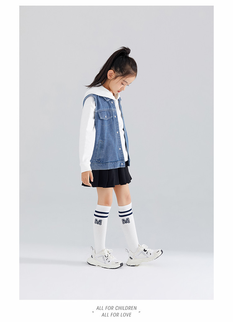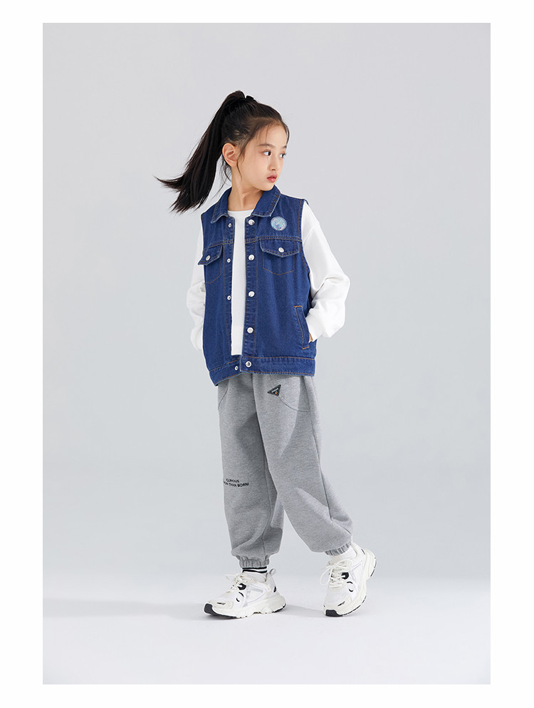 코코다 아동복 심플하고 다재다능한 데님 조끼 봄 스타일 여아 패션 데님 조끼 중대형 아동 조끼스토어 가기