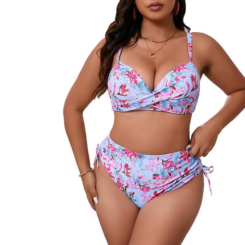 여성용 유럽식 수영복, 몸에 꼭 맞는 배 커버 비키니, 언더와이어 푸쉬업, 플러스 사이즈 섹시 비치 스플릿 수영복, 꽃무늬