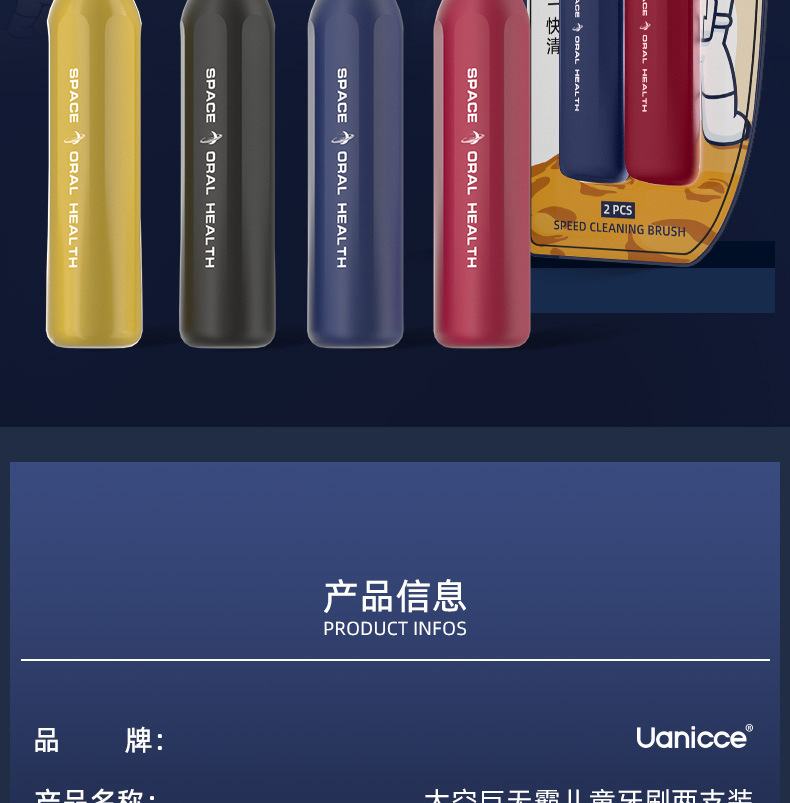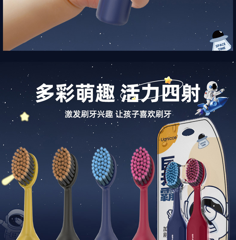 Uanicce [스페이스빅맥스] 귀엽고 예쁜 프린트 손잡이가 달린 어린이용 대형 헤드 와이드 헤드 칫솔스토어 가기