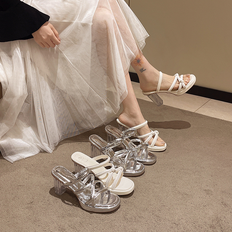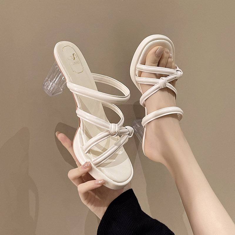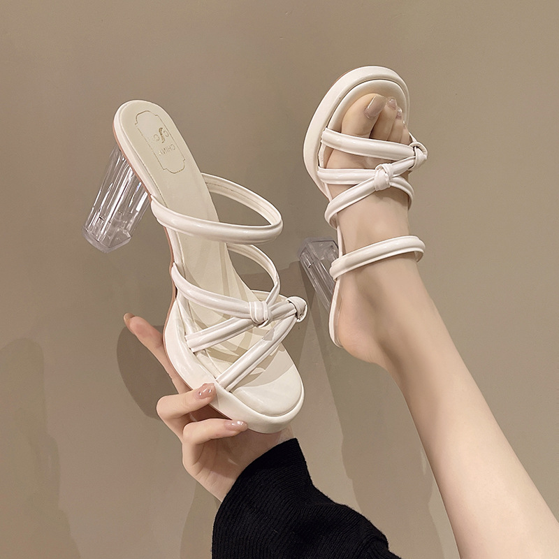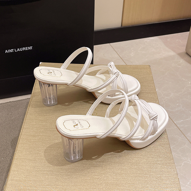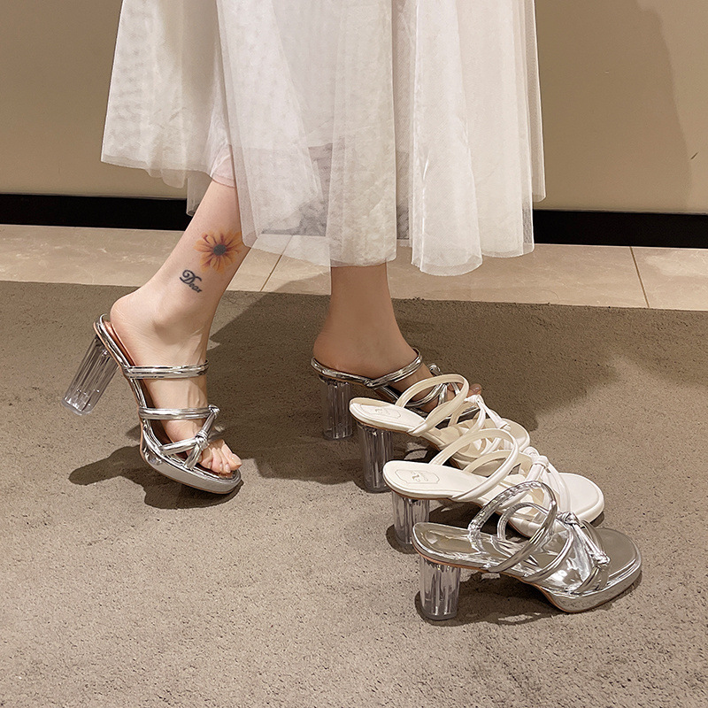 2025년 신상 여름 스타일 스커트, 투명한 두꺼운 굽, 다재다능한 트위스트 스트랩 하이힐 샌들