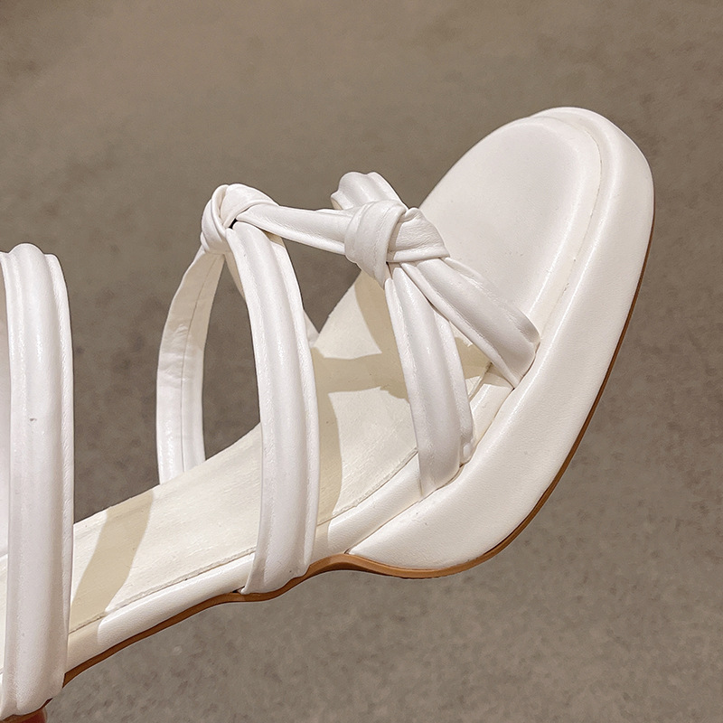 2025년 신상 여름 스타일 스커트, 투명한 두꺼운 굽, 다재다능한 트위스트 스트랩 하이힐 샌들스토어 가기