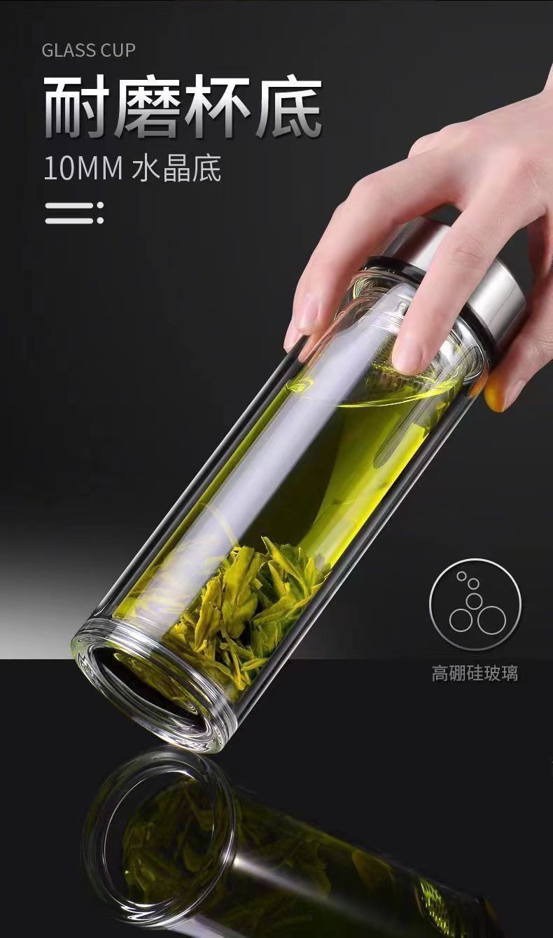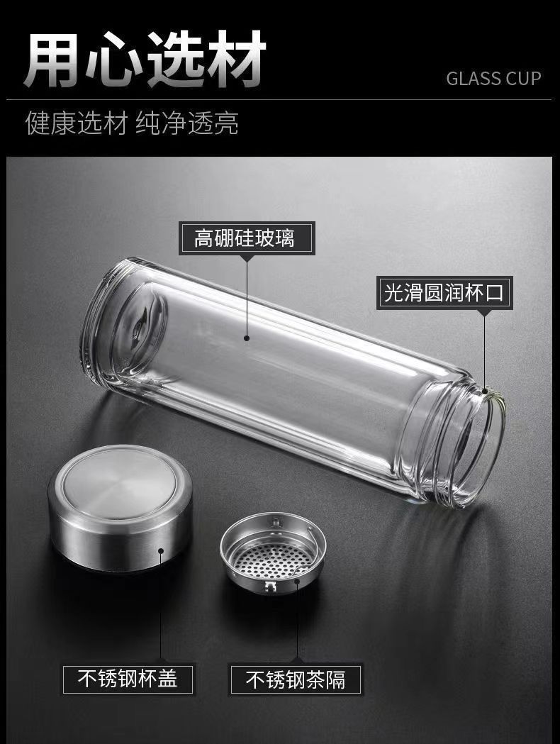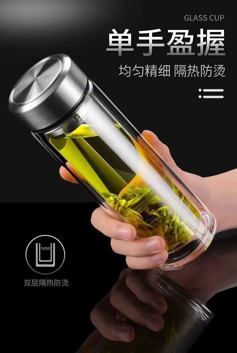 고붕규산염 물컵, 이중 유리, 남성용 고급 찻잔, 사무실 마시는 컵, 차 분리 컵스토어 가기