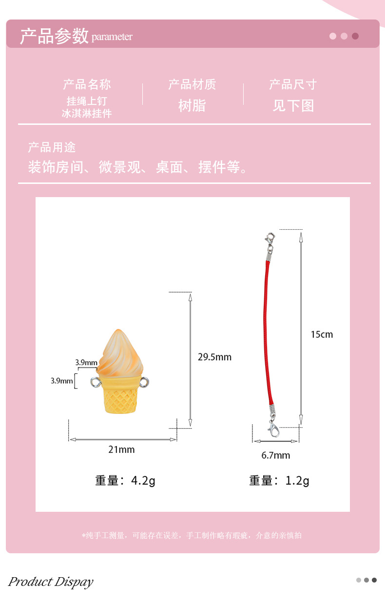 시뮬레이션 된 음식 수지 액세서리 끈 아이스크림 DIY 인형 액세서리 놀이 집 키 체인 인형 기계 액세서리