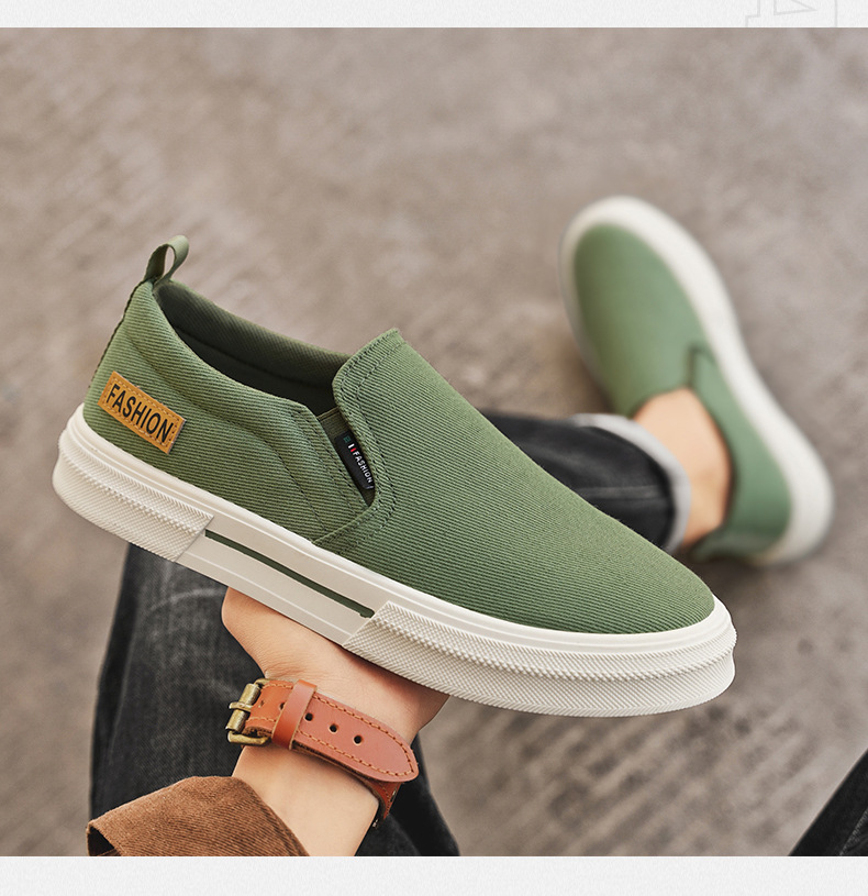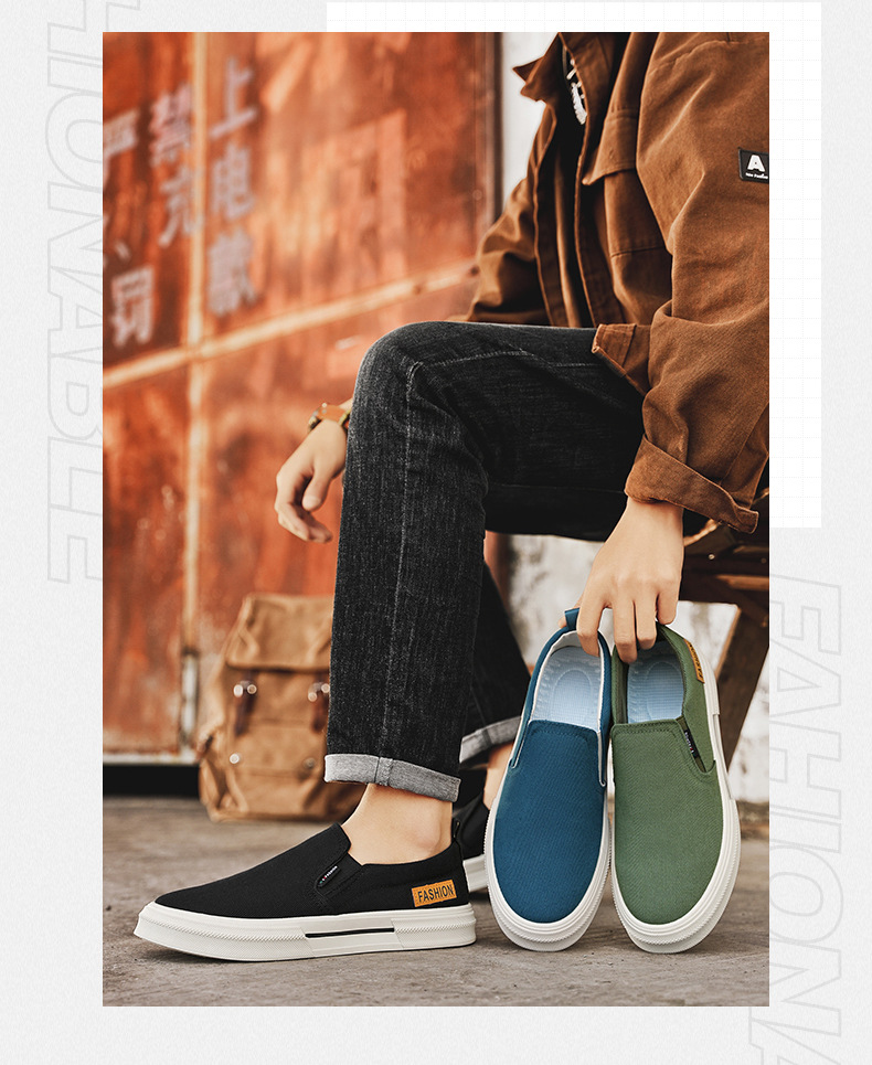 新款舒适透气帆布圆头休闲百搭日常时尚潮流套脚纯色厚底男款板鞋