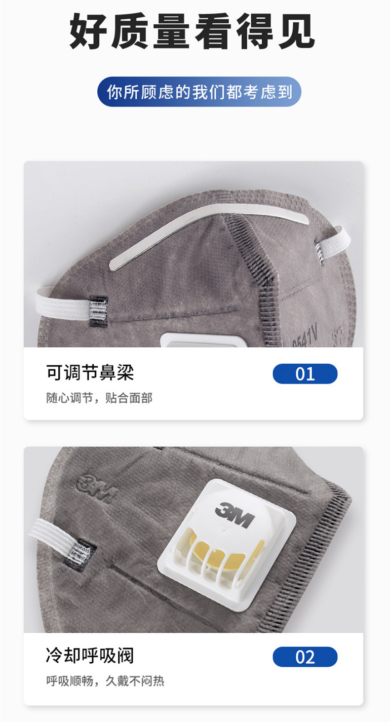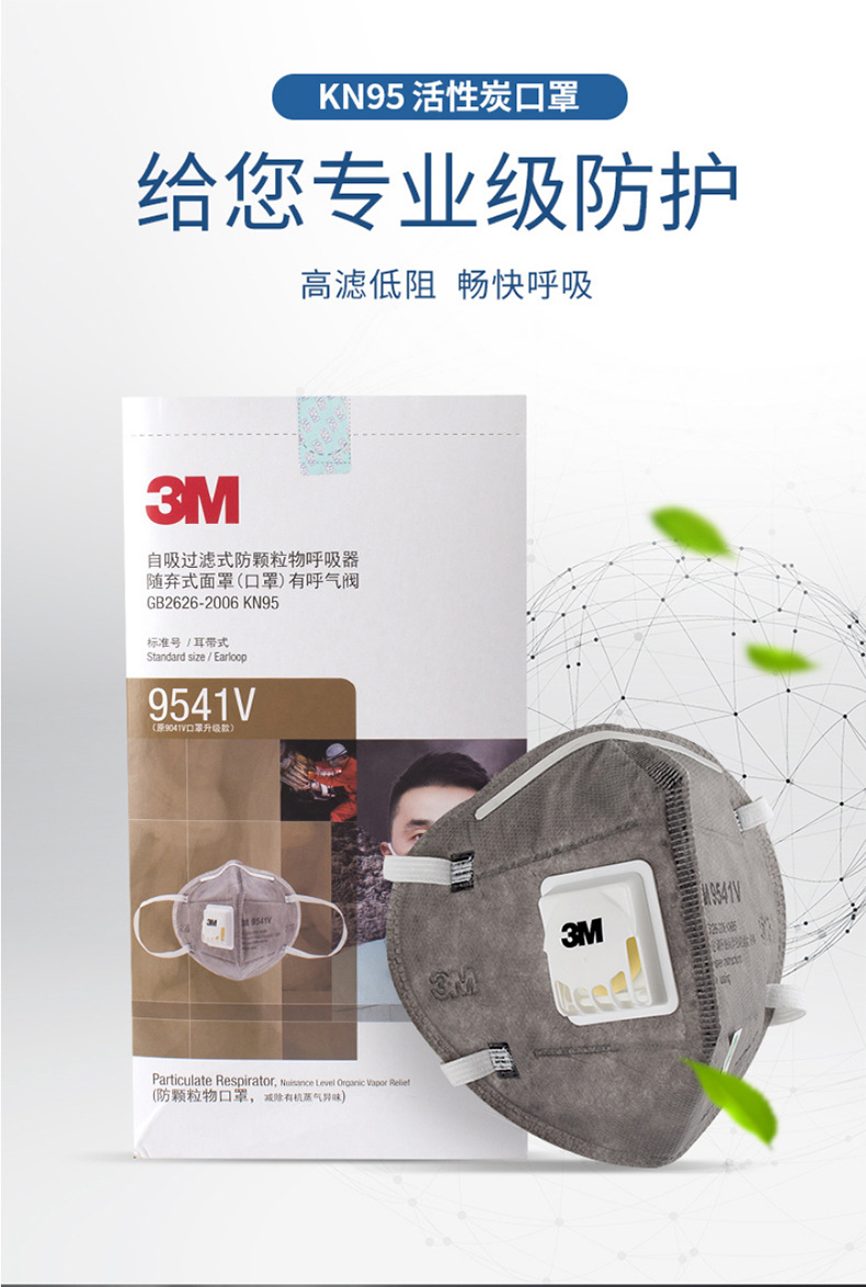 3M 활성탄 마스크 9541V 밸브 포함 산업용 케이터링용 KN95 석탄광 중진먼지 방호 도매 재고스토어 가기