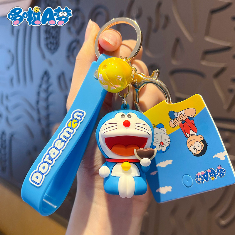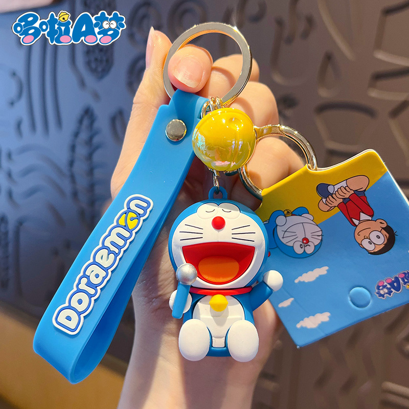 정품 귀여운 도라에몽 키 체인 펜던트 징글 고양이 자동차 가방 열쇠 고리 인형 펜던트 작은 선물스토어 가기