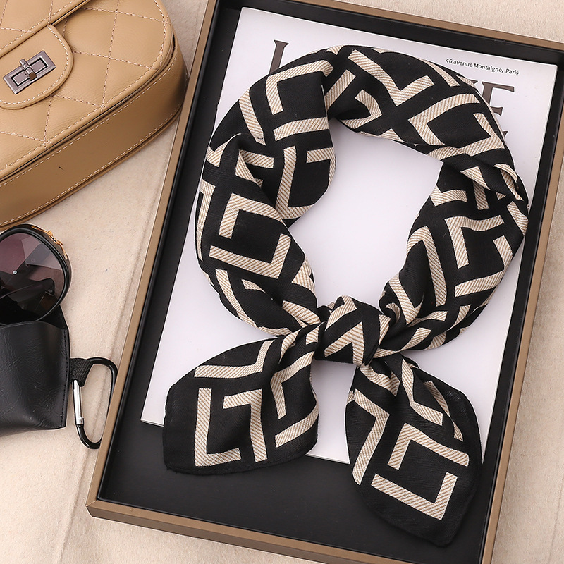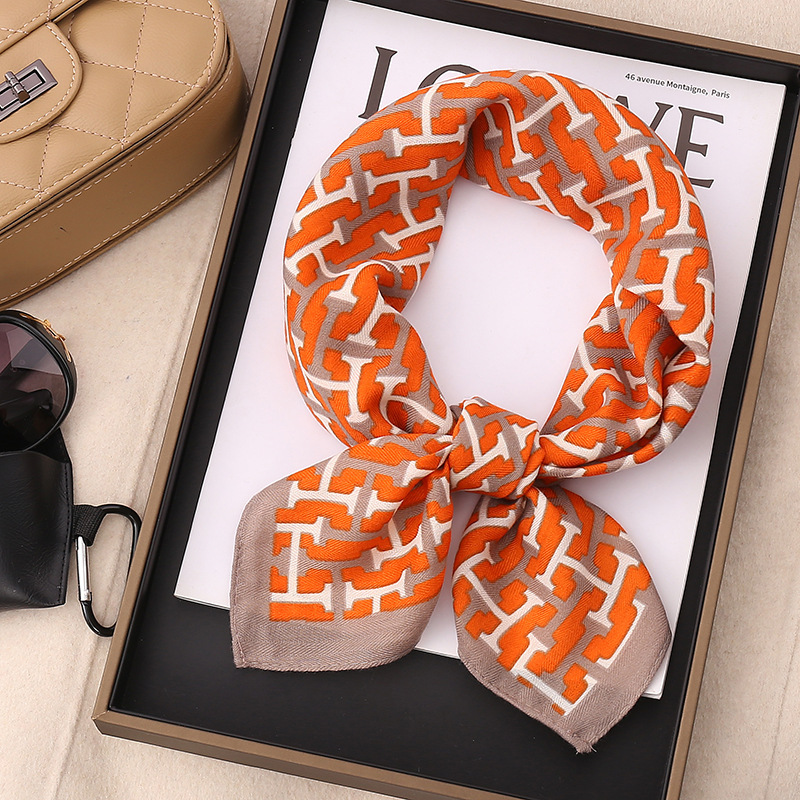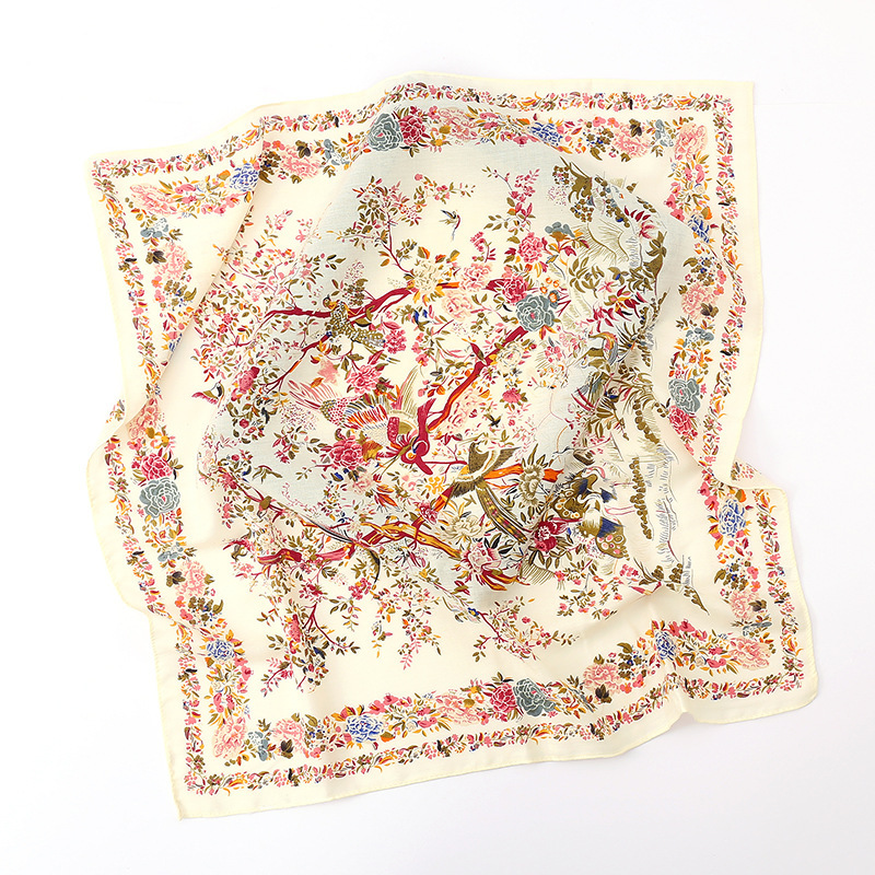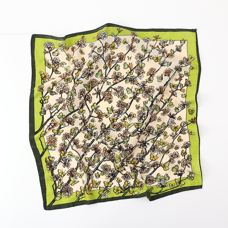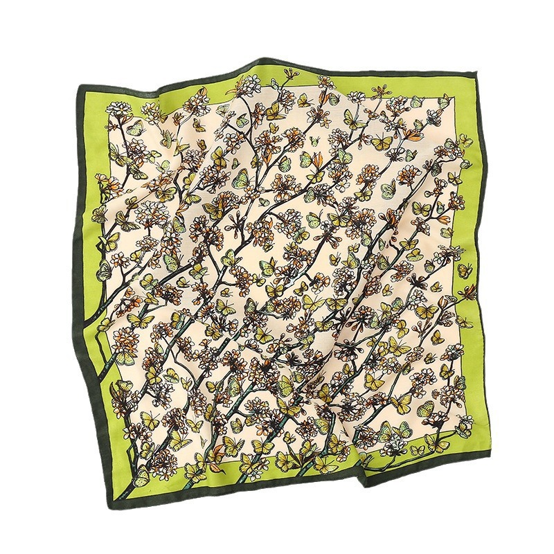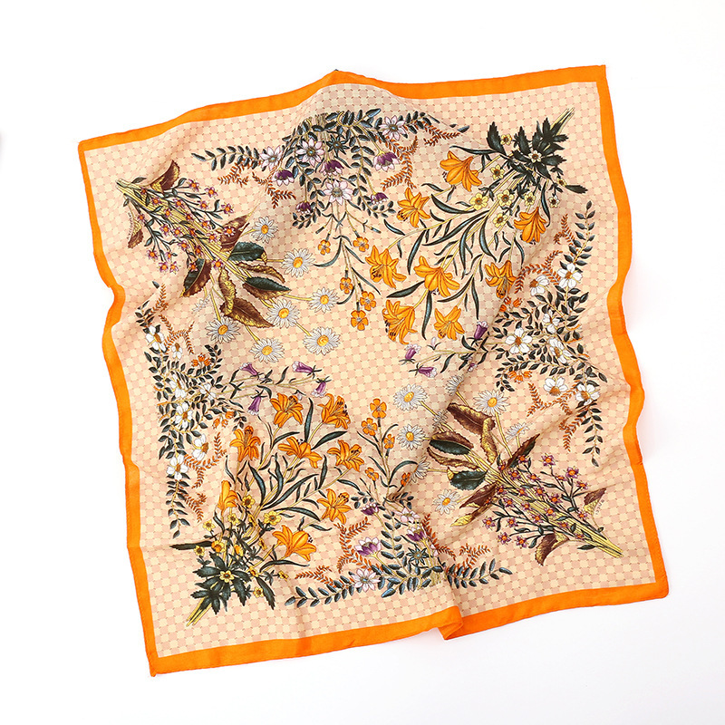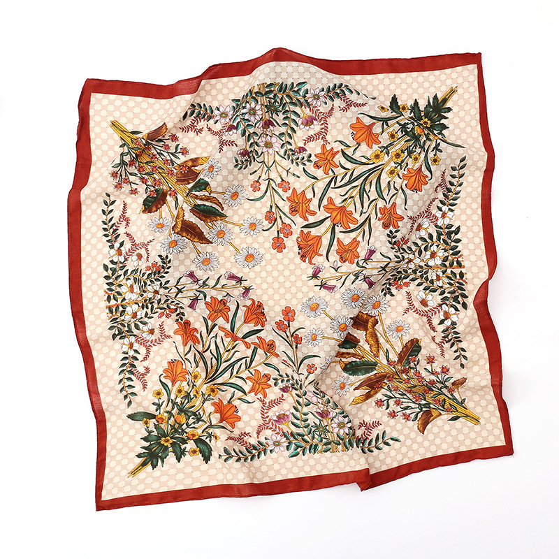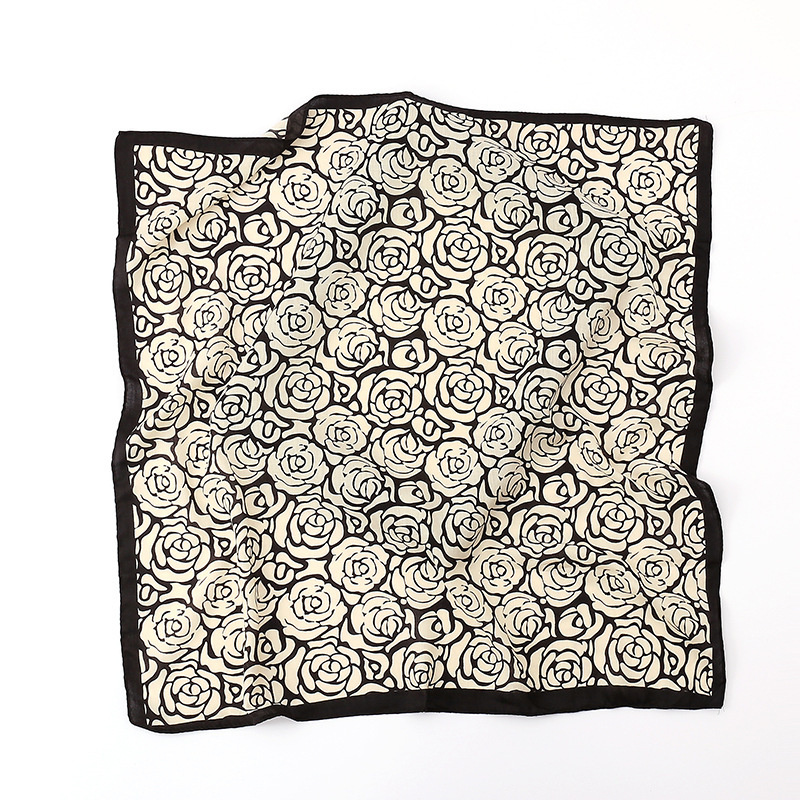 여성용 실크 스카프, 패셔너블하고 다재다능하며 고급스러운 70cm 사각 스카프, 한국 스타일 목도리, 봄 가을 레트로 스카프, 가방 장식용 동백꽃 스카프