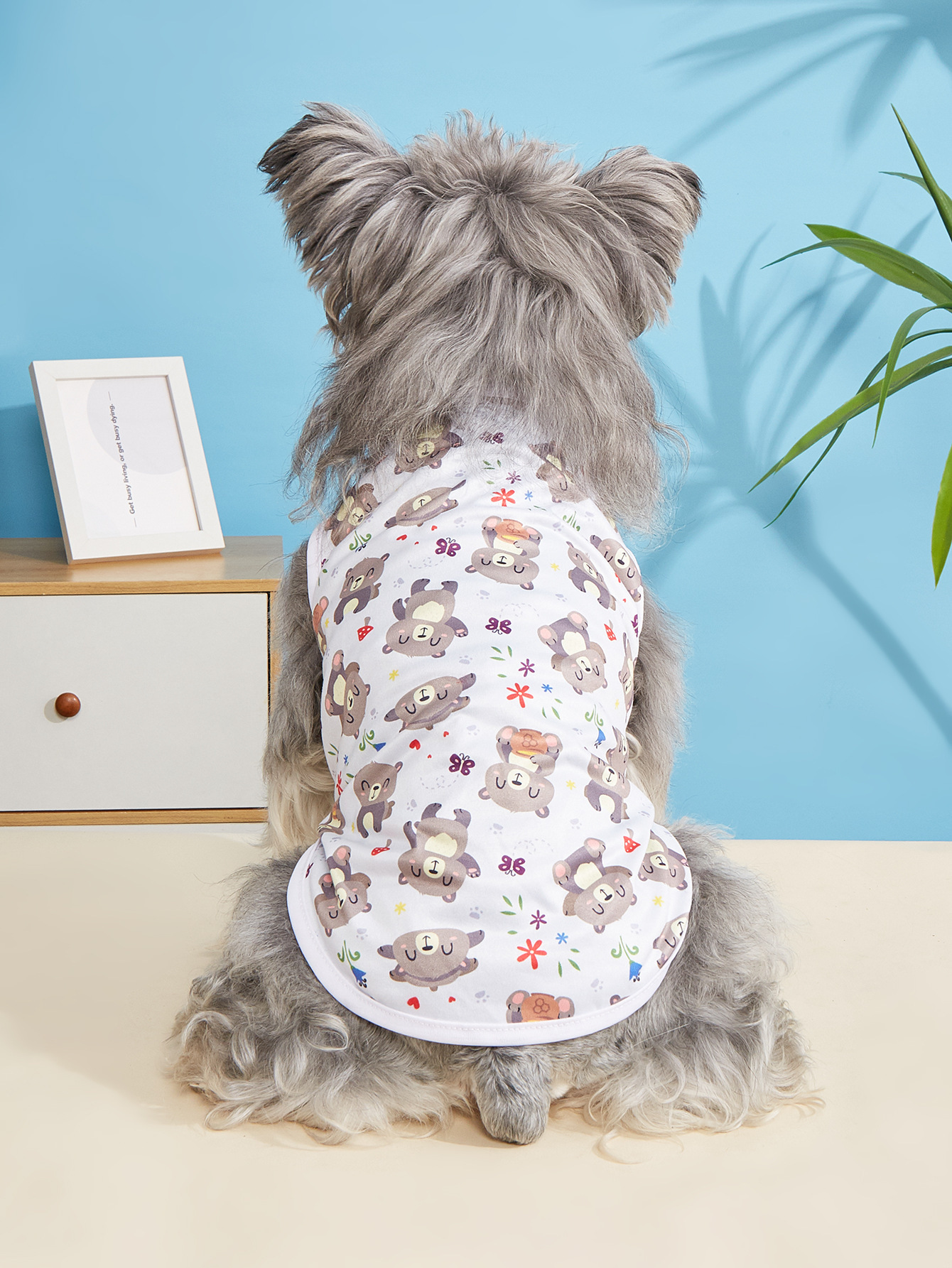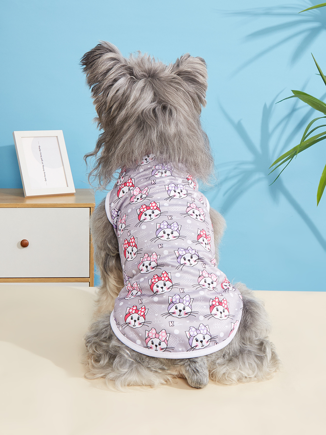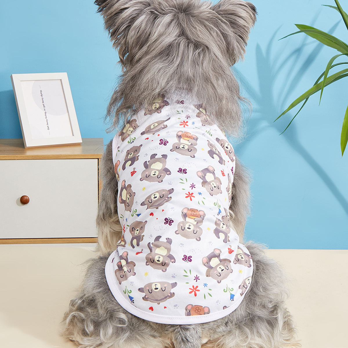 고양이와 개를 위한 봄과 여름 얇은 애완 동물 조끼, 시원하고 통기성이 뛰어난 옷, 흘러내림 방지 만화 프린트 애완 동물 옷스토어 가기