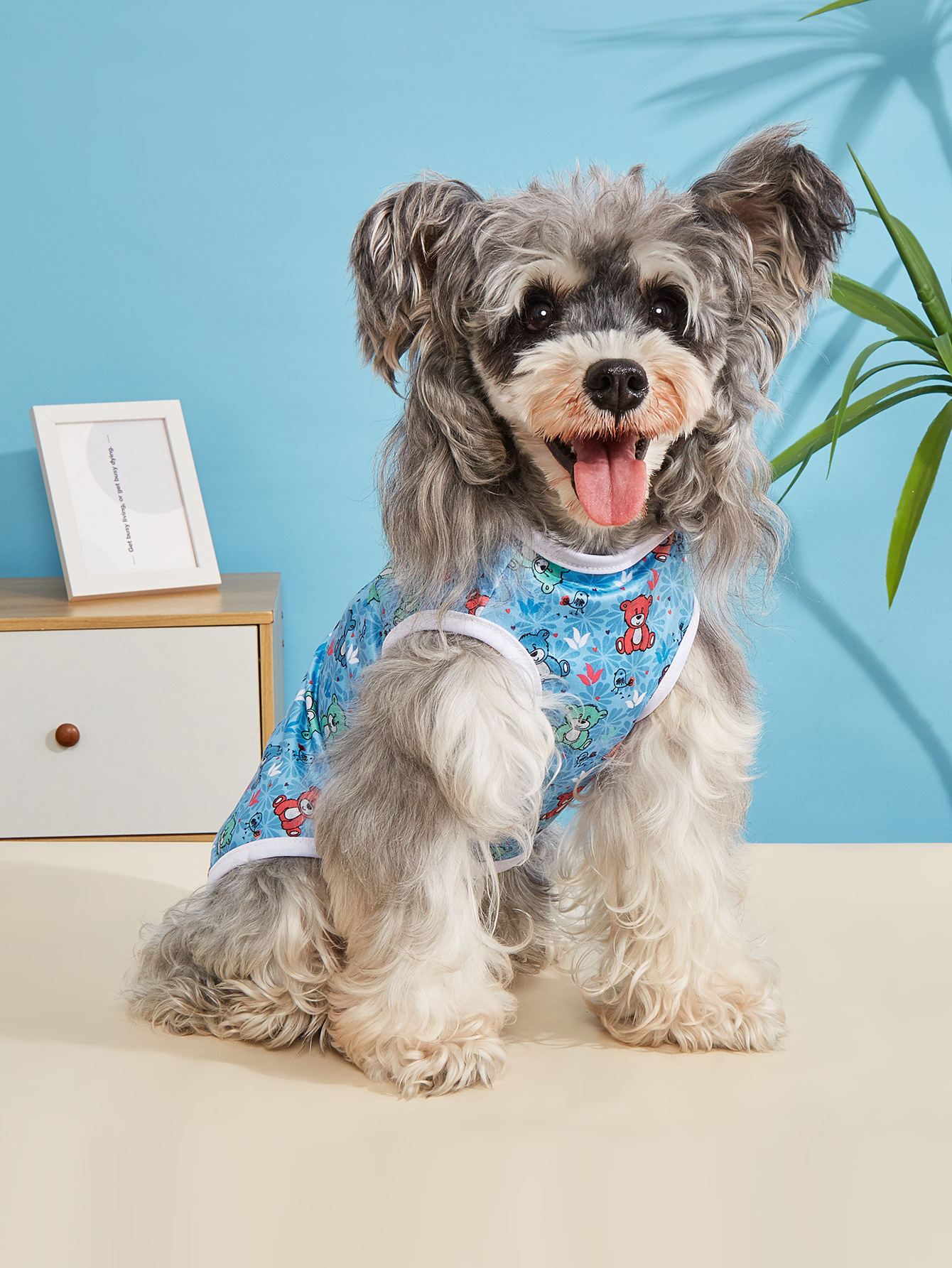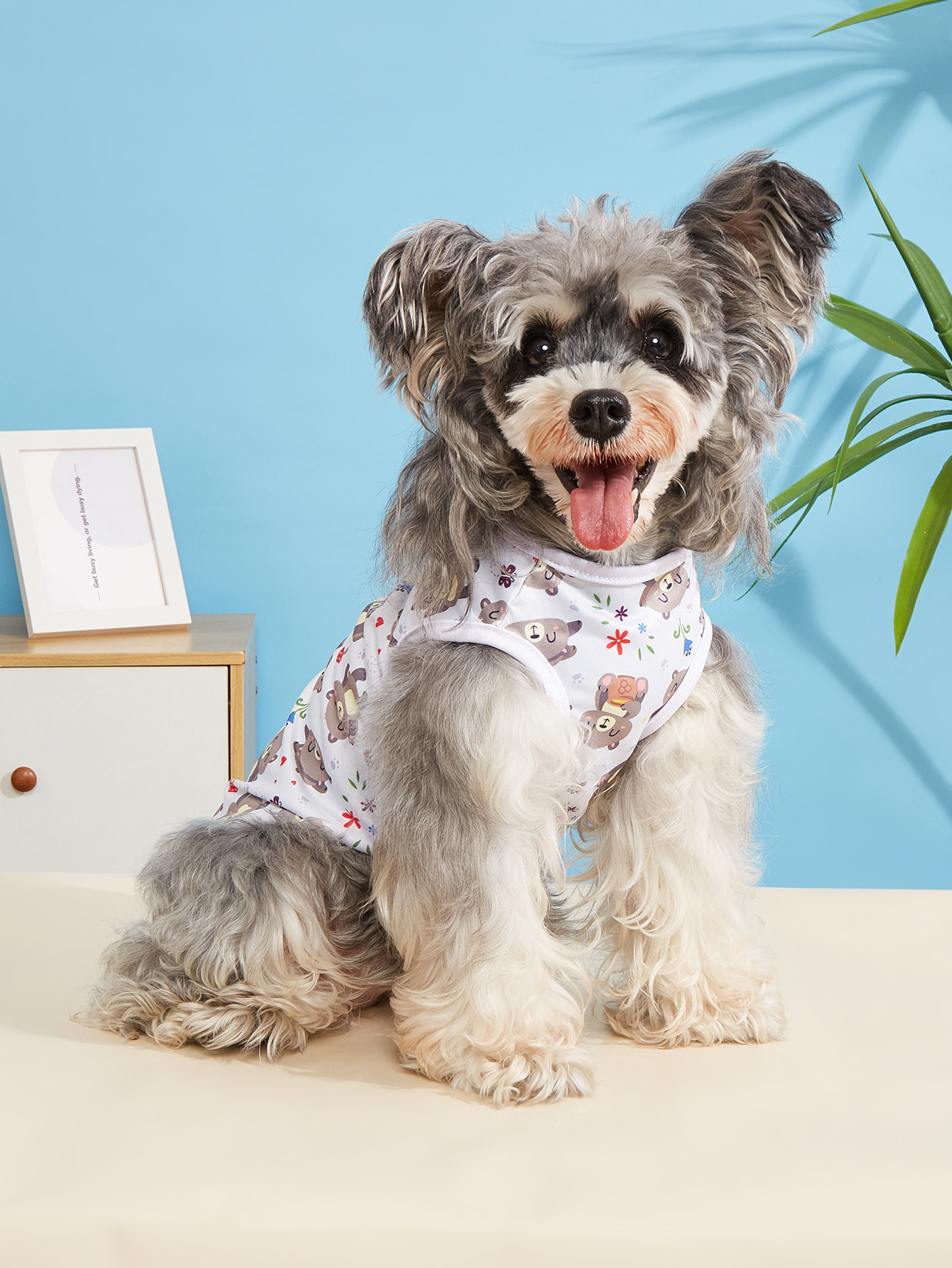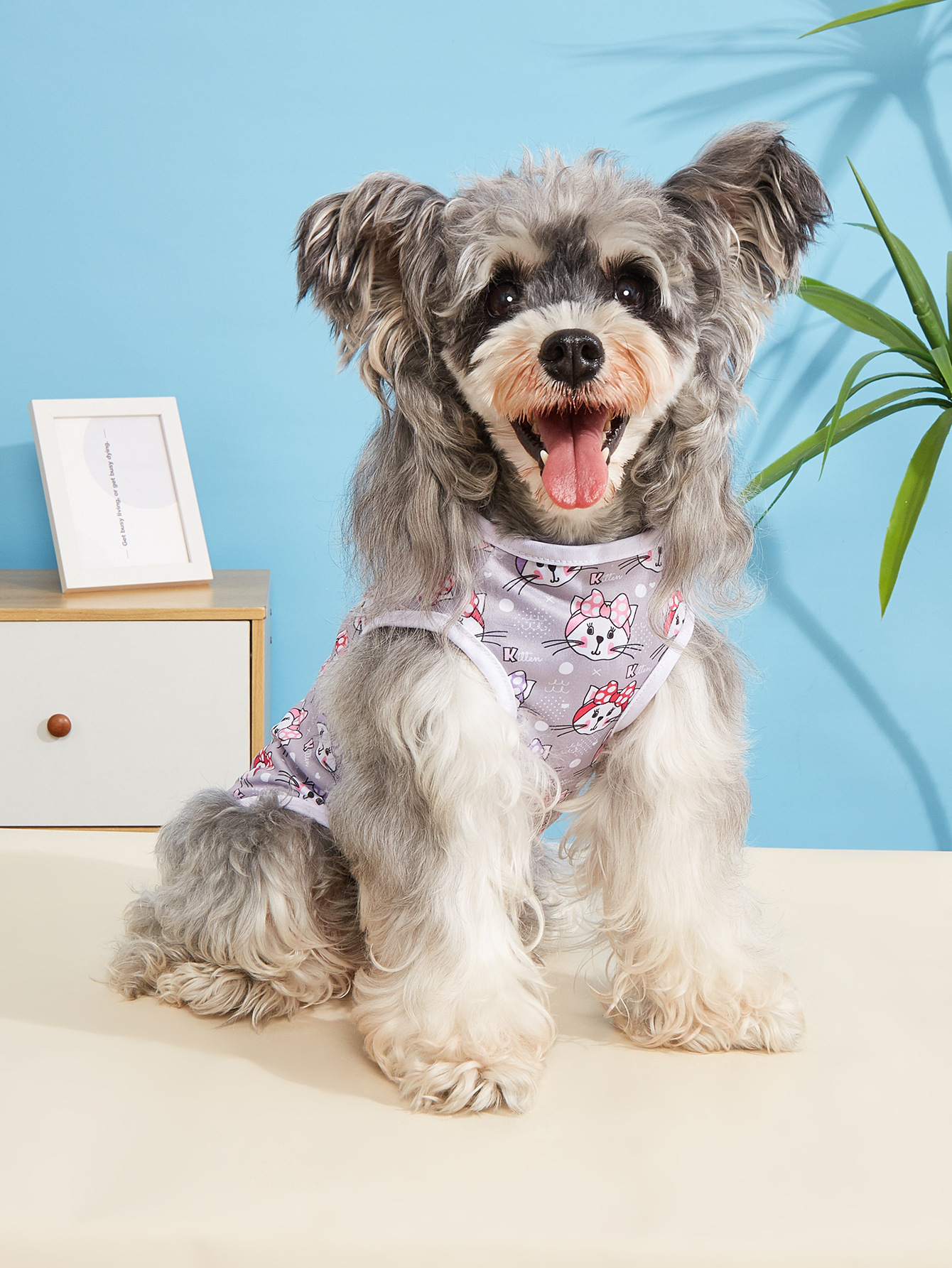고양이와 개를 위한 봄과 여름 얇은 애완 동물 조끼, 시원하고 통기성이 뛰어난 옷, 흘러내림 방지 만화 프린트 애완 동물 옷스토어 가기
