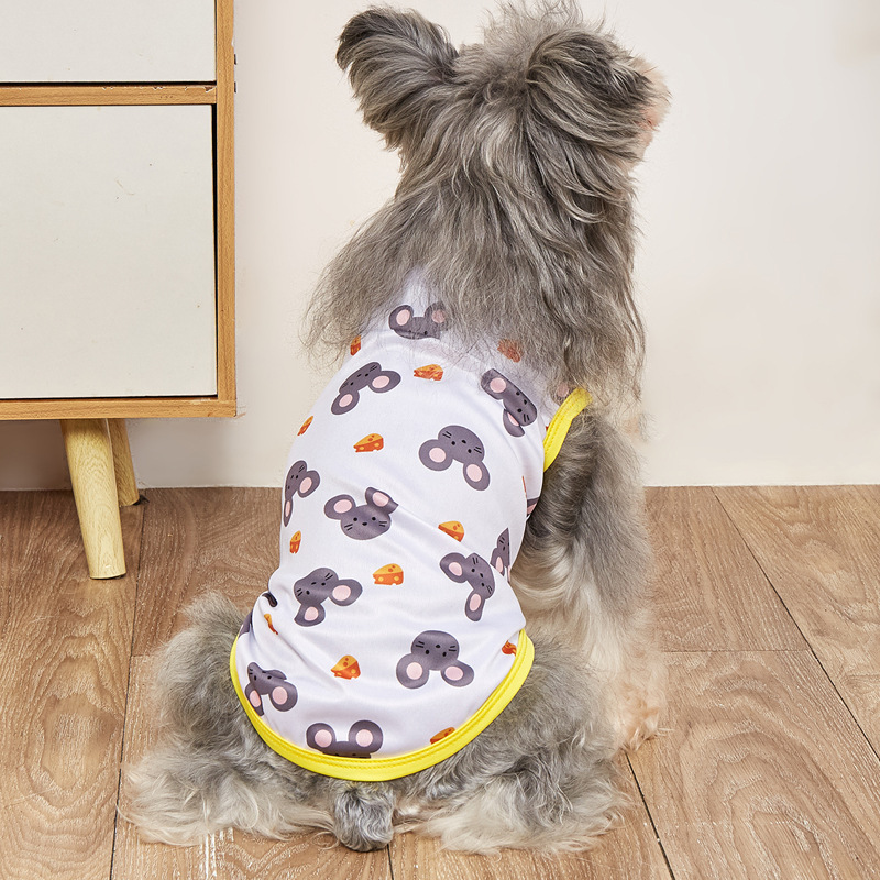 고양이와 개를 위한 봄과 여름 얇은 애완 동물 조끼, 시원하고 통기성이 뛰어난 옷, 흘러내림 방지 만화 프린트 애완 동물 옷