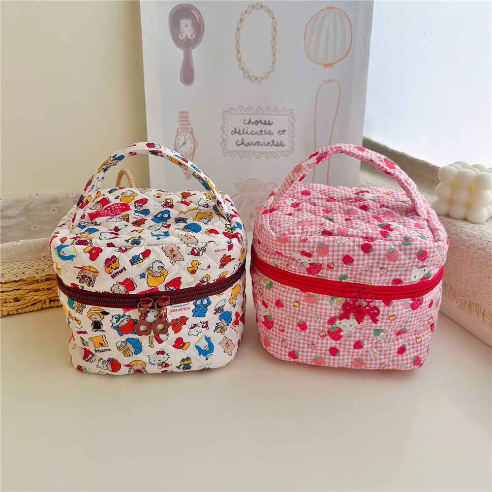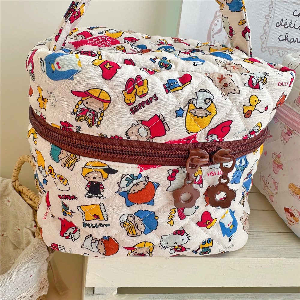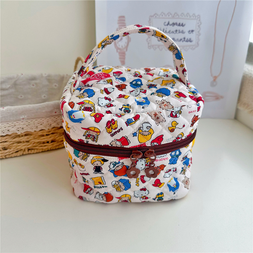 여성을위한 만화 인쇄 면화 퀼트 자수 화장품 가방 대용량 어린이 같은 학생 기숙사 화장품 여행 저장 가방