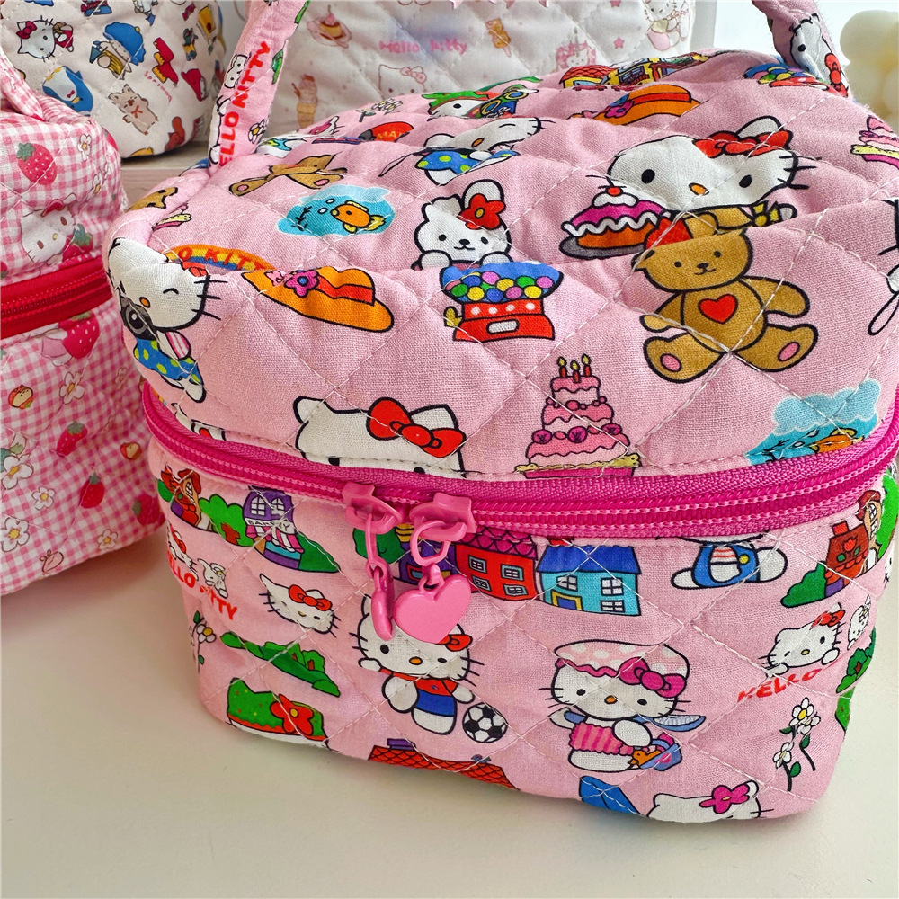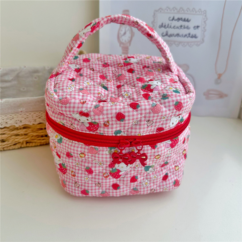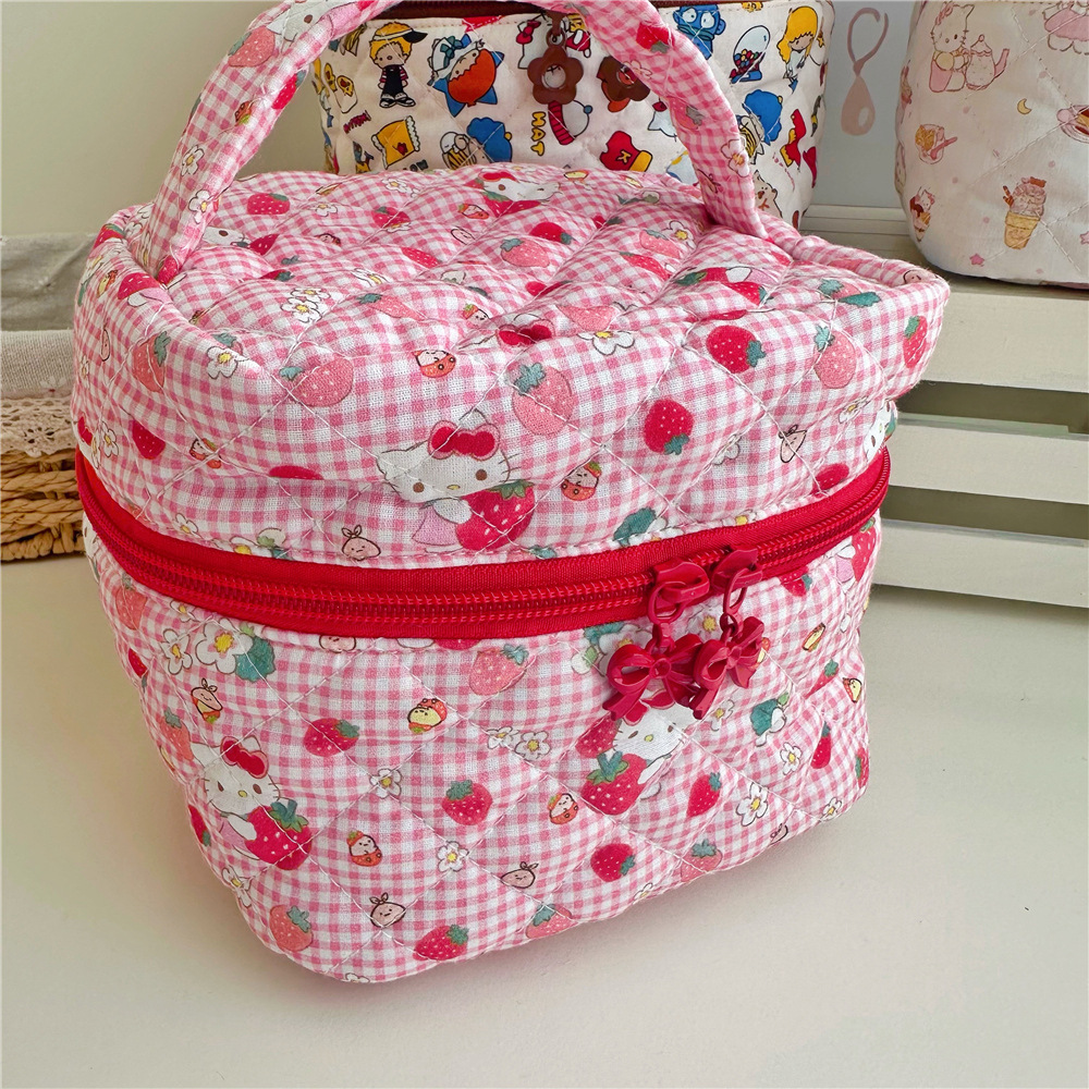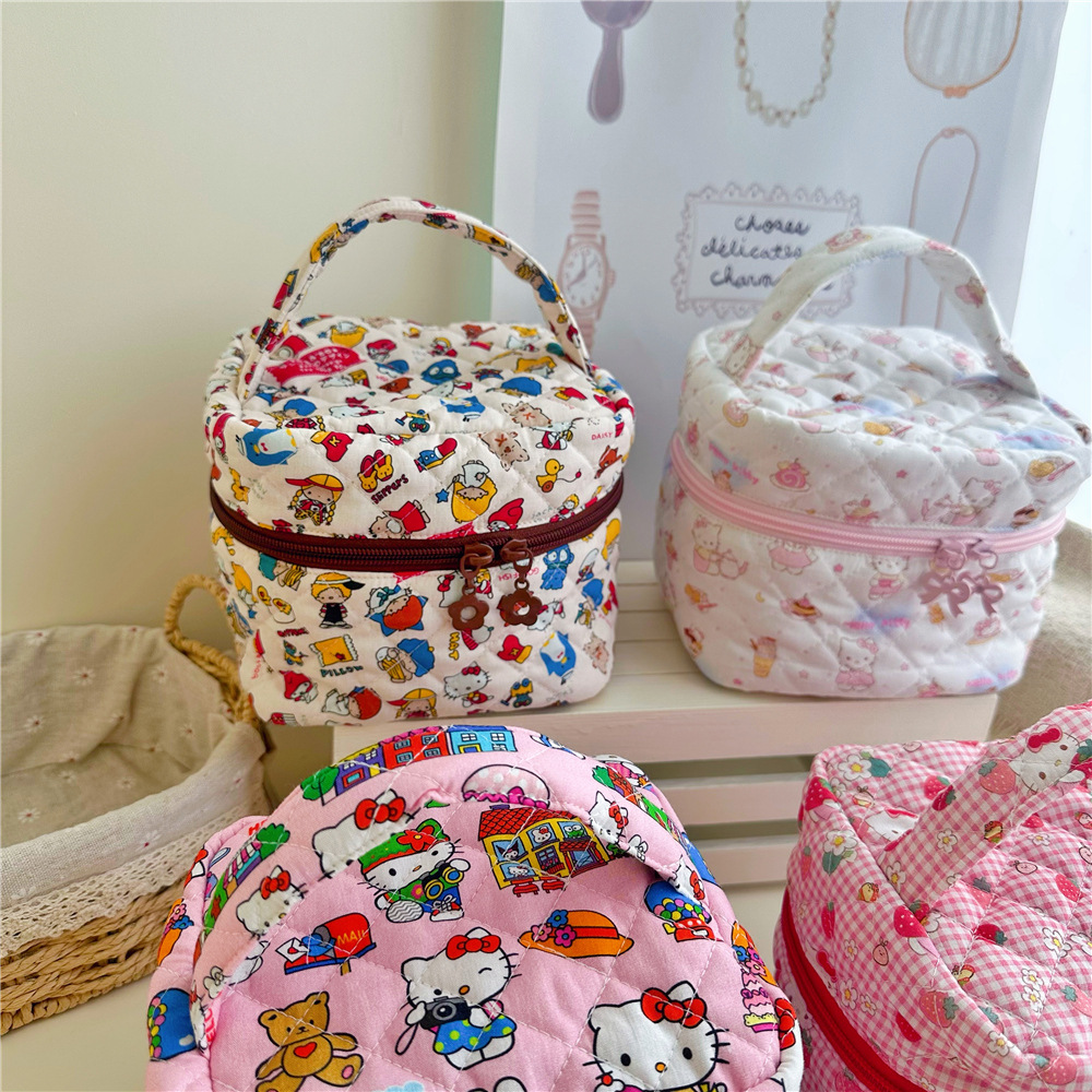 여성을위한 만화 인쇄 면화 퀼트 자수 화장품 가방 대용량 어린이 같은 학생 기숙사 화장품 여행 저장 가방