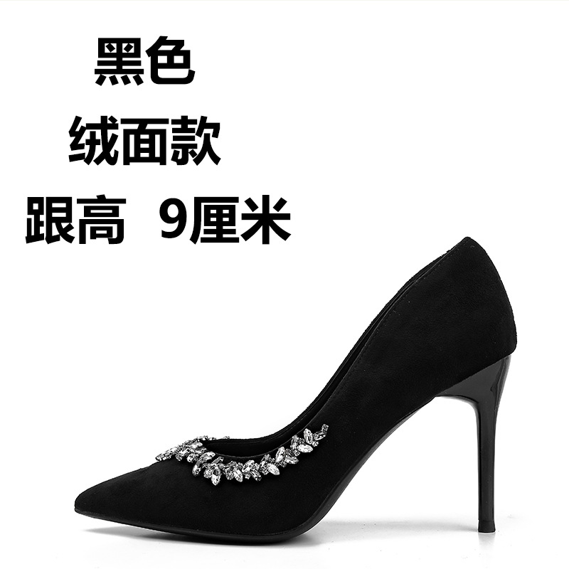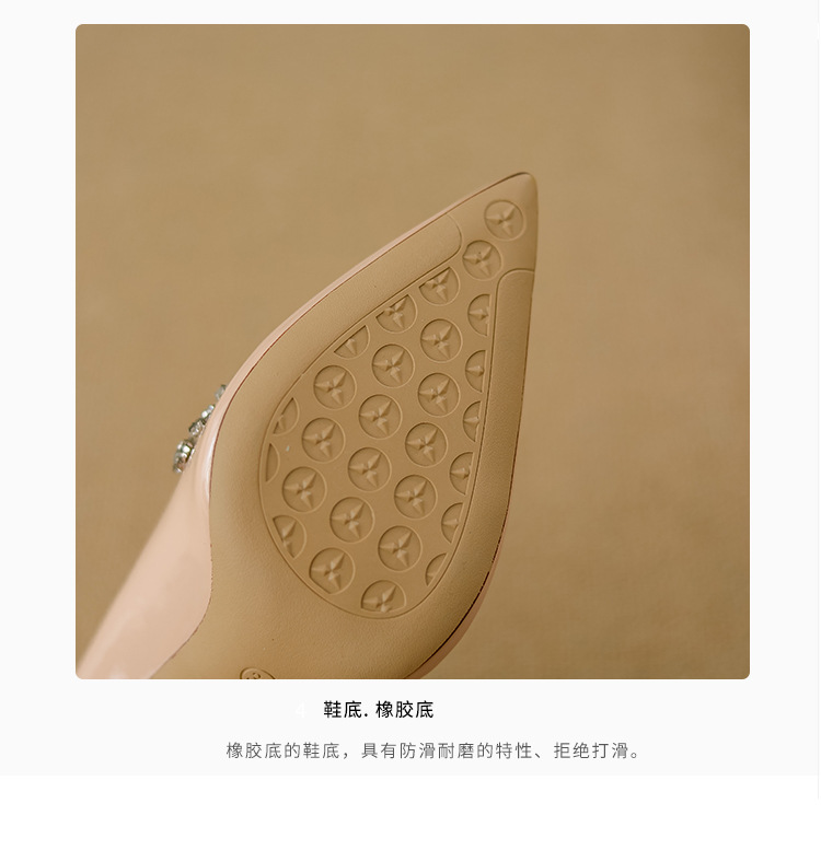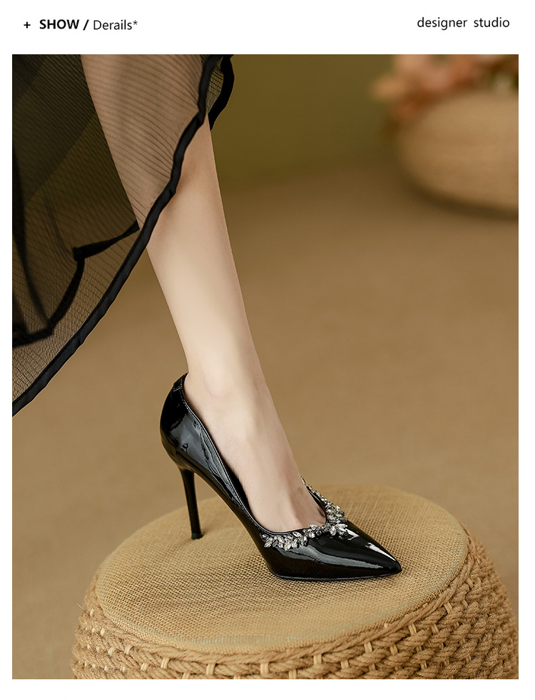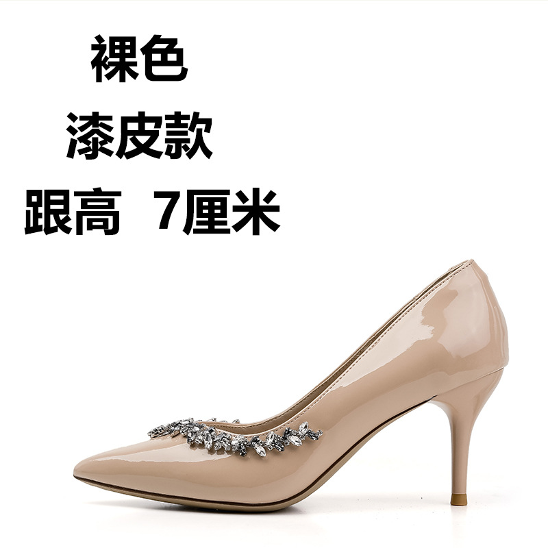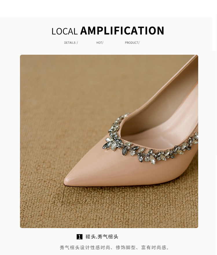 여성을위한 누드 하이힐 2025 봄 새로운 스타일 라인 석 뾰족한 발가락 섹시한 스틸레토 프렌치 스타일 아름다운 신발스토어 가기