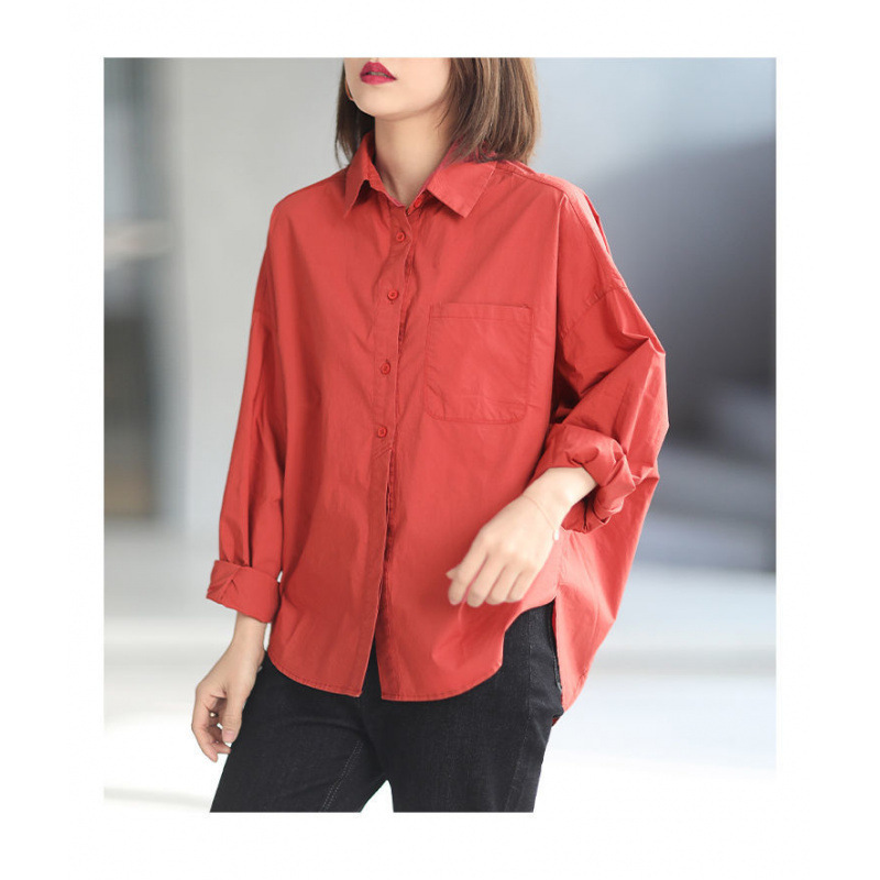 디자인 니치 솔리드 컬러 봄 신작 한국식 루즈한 게으른 스타일 입체 컷팅 캐주얼 레이어드 셔츠 다용도