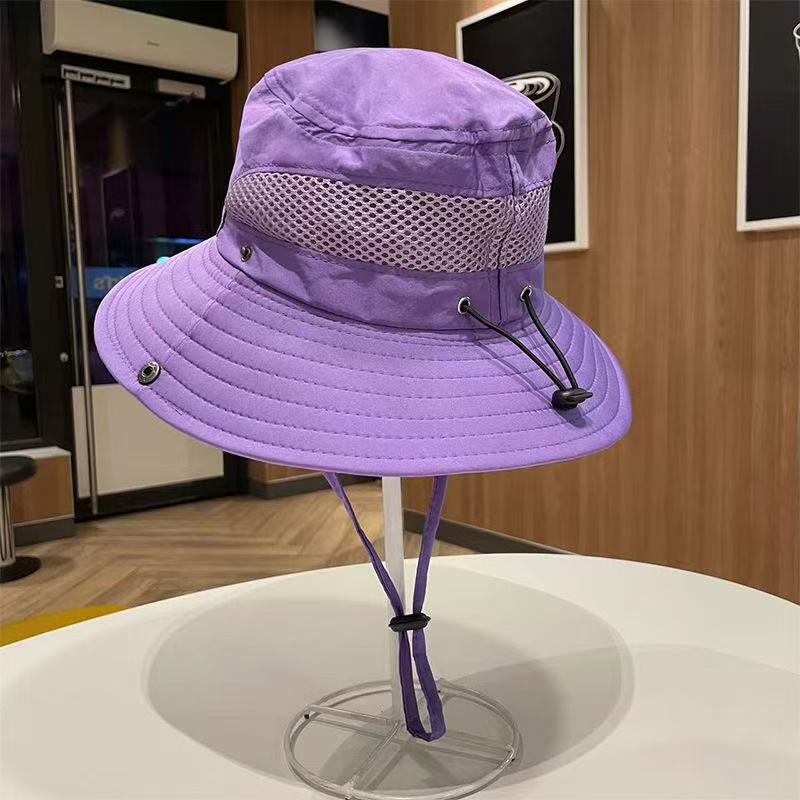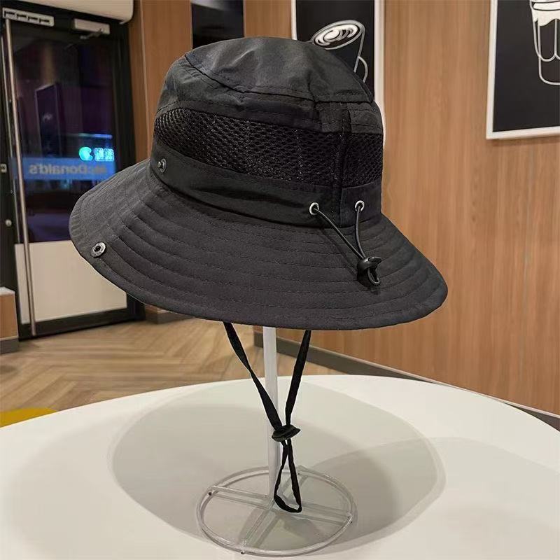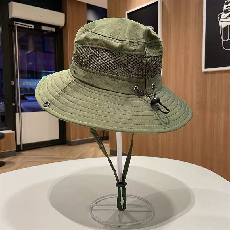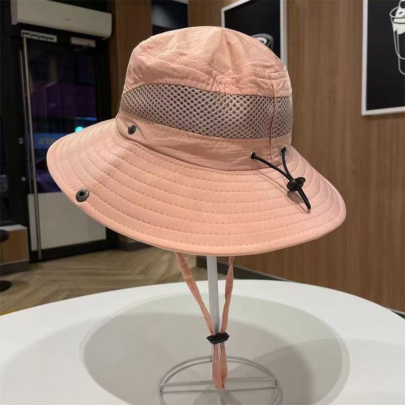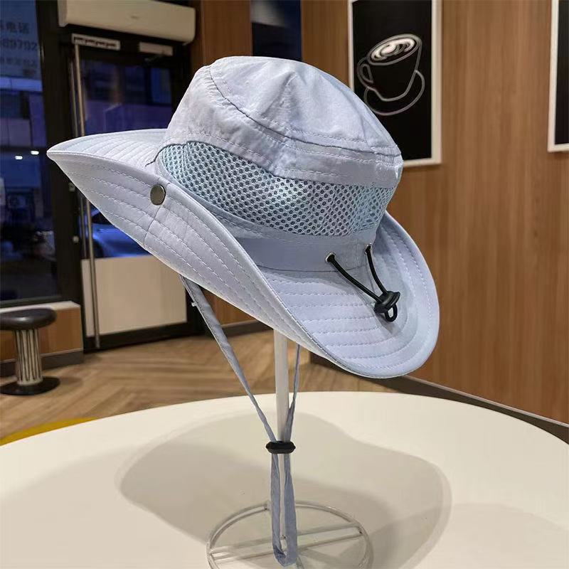 여름 얇은 메쉬 접이식 어린이 야외 등산 큰 챙 태양 보호 모자 남성용 부모-자식 단색 어부 모자