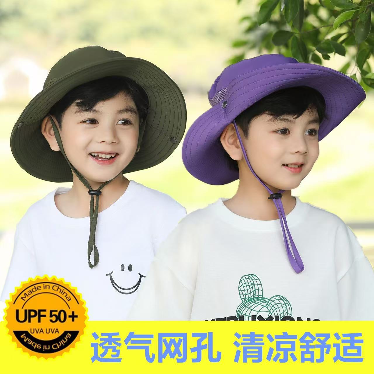 여름 얇은 메쉬 접이식 어린이 야외 등산 큰 챙 태양 보호 모자 남성용 부모-자식 단색 어부 모자스토어 가기