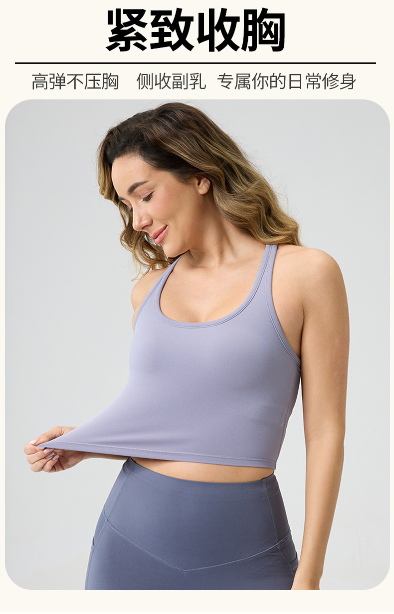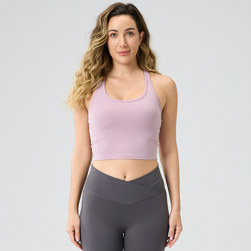 여성용 가슴 패드 내장, 등이 아름다운 스포츠 러닝 피트니스 브라탑, 통기성 좋은 봄 여름 요가복, 해외 인기 상품
