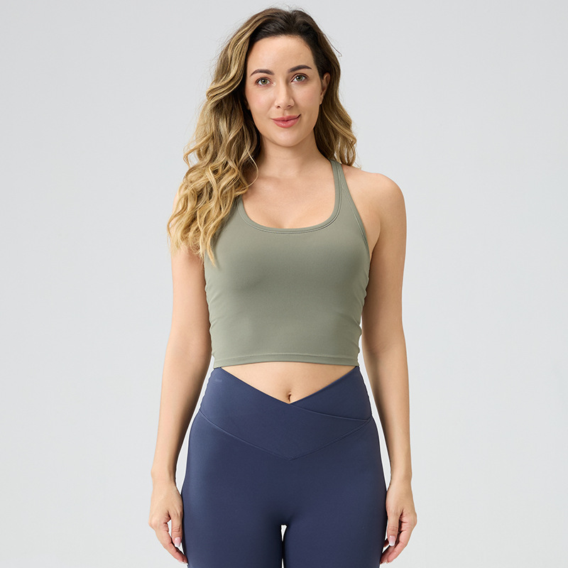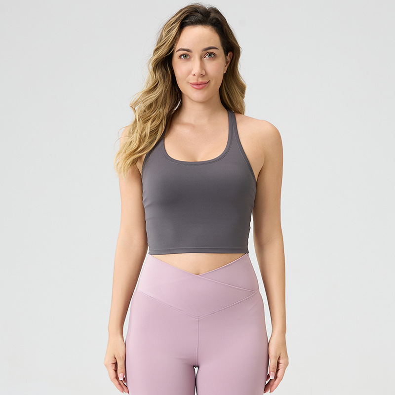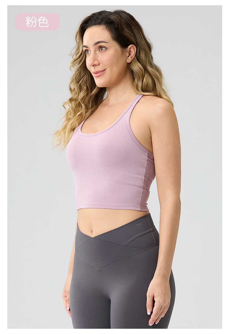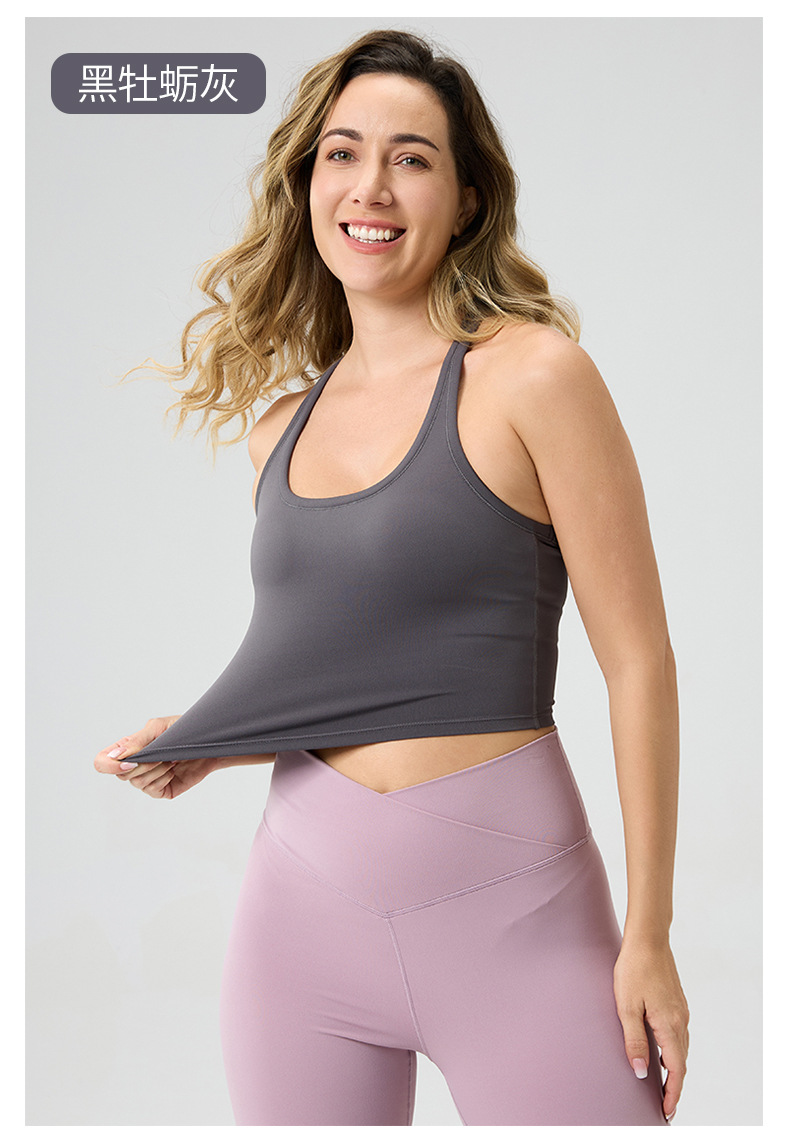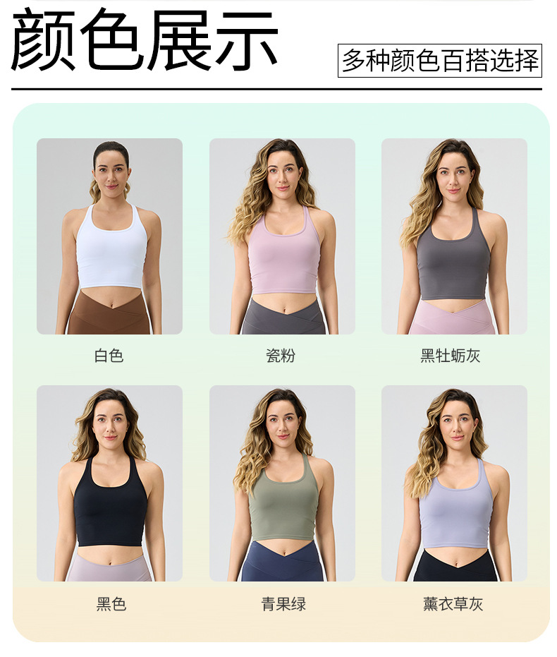 여성용 가슴 패드 내장, 등이 아름다운 스포츠 러닝 피트니스 브라탑, 통기성 좋은 봄 여름 요가복, 해외 인기 상품스토어 가기