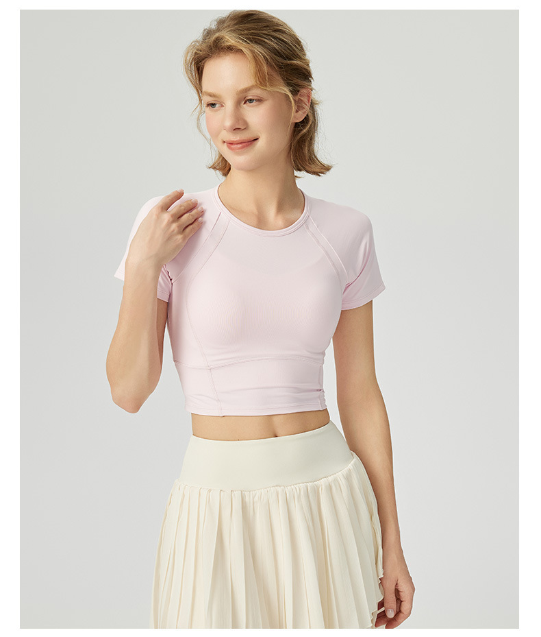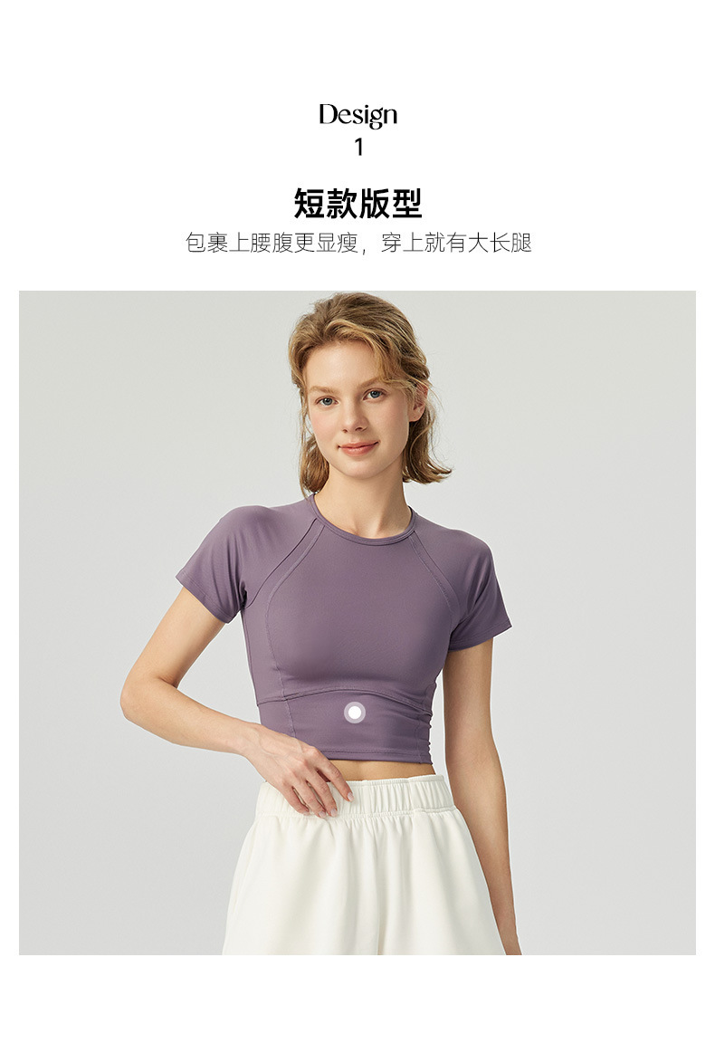 2025 가을 겨울 신상품 숏 티셔츠, 슬림하고 키가 보이는 효과를 주는 요가탑, 통기성 좋고 피부 친화적인 고탄력 요가복 여성용
