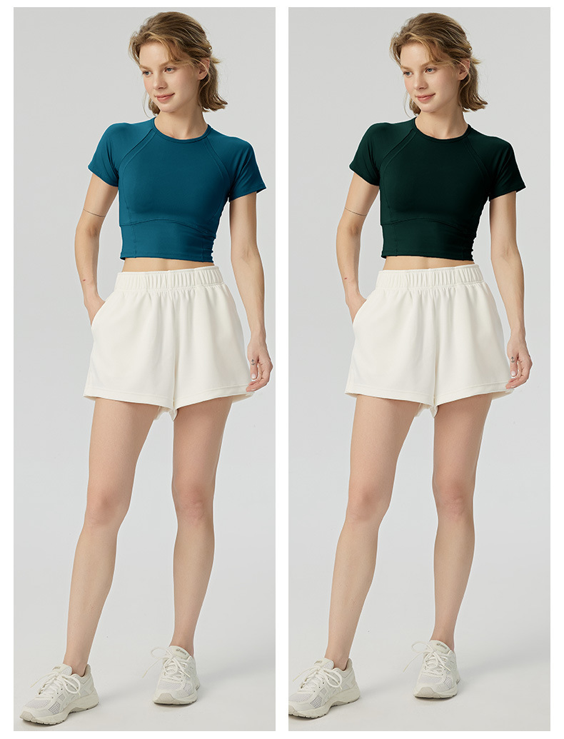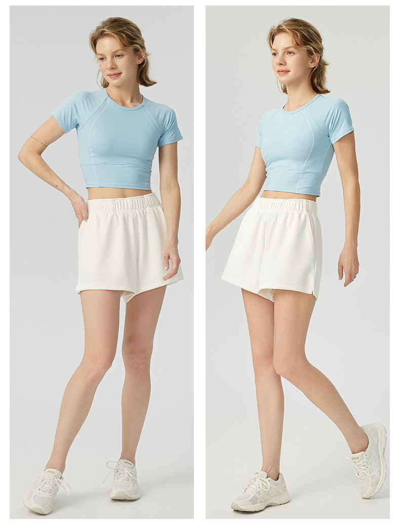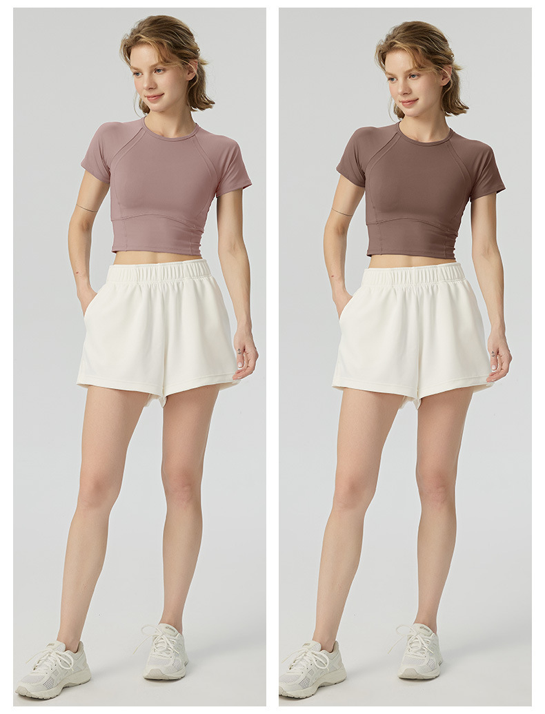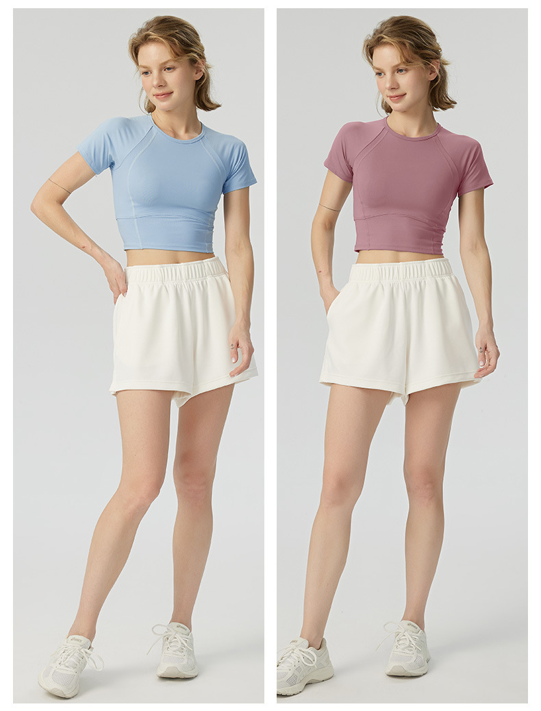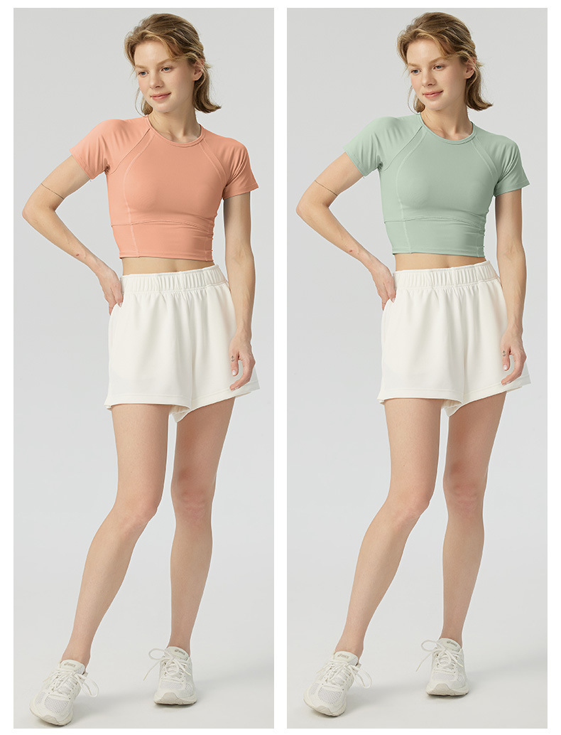 2025 가을 겨울 신상품 숏 티셔츠, 슬림하고 키가 보이는 효과를 주는 요가탑, 통기성 좋고 피부 친화적인 고탄력 요가복 여성용스토어 가기