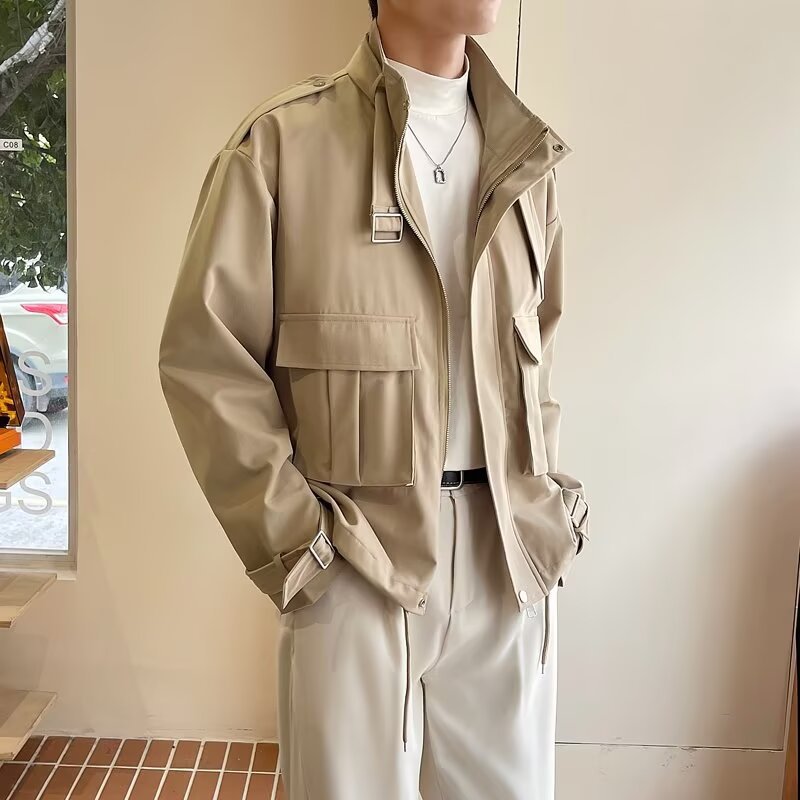 가벼운 성숙한 재킷 짧은 재킷 남성 봄 새로운 한국 스타일 느슨한 트렌디 스탠드 칼라 복고풍 작업 재킷