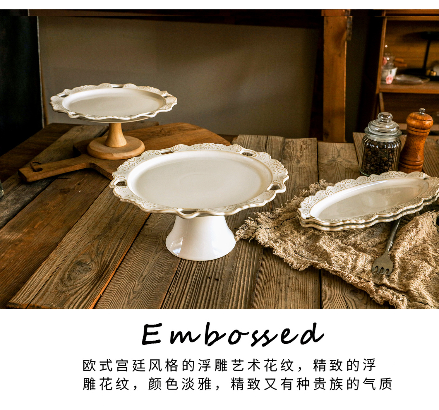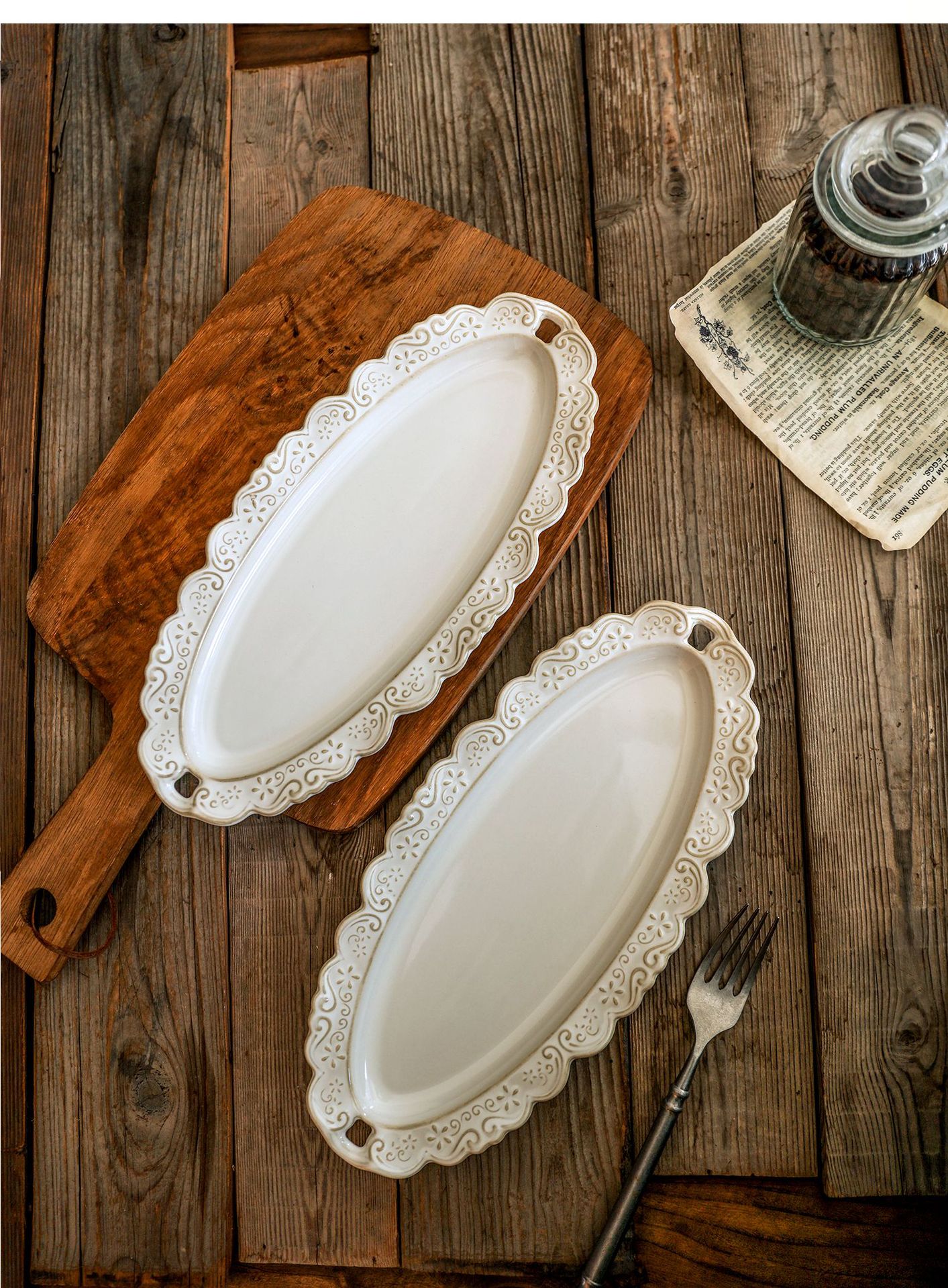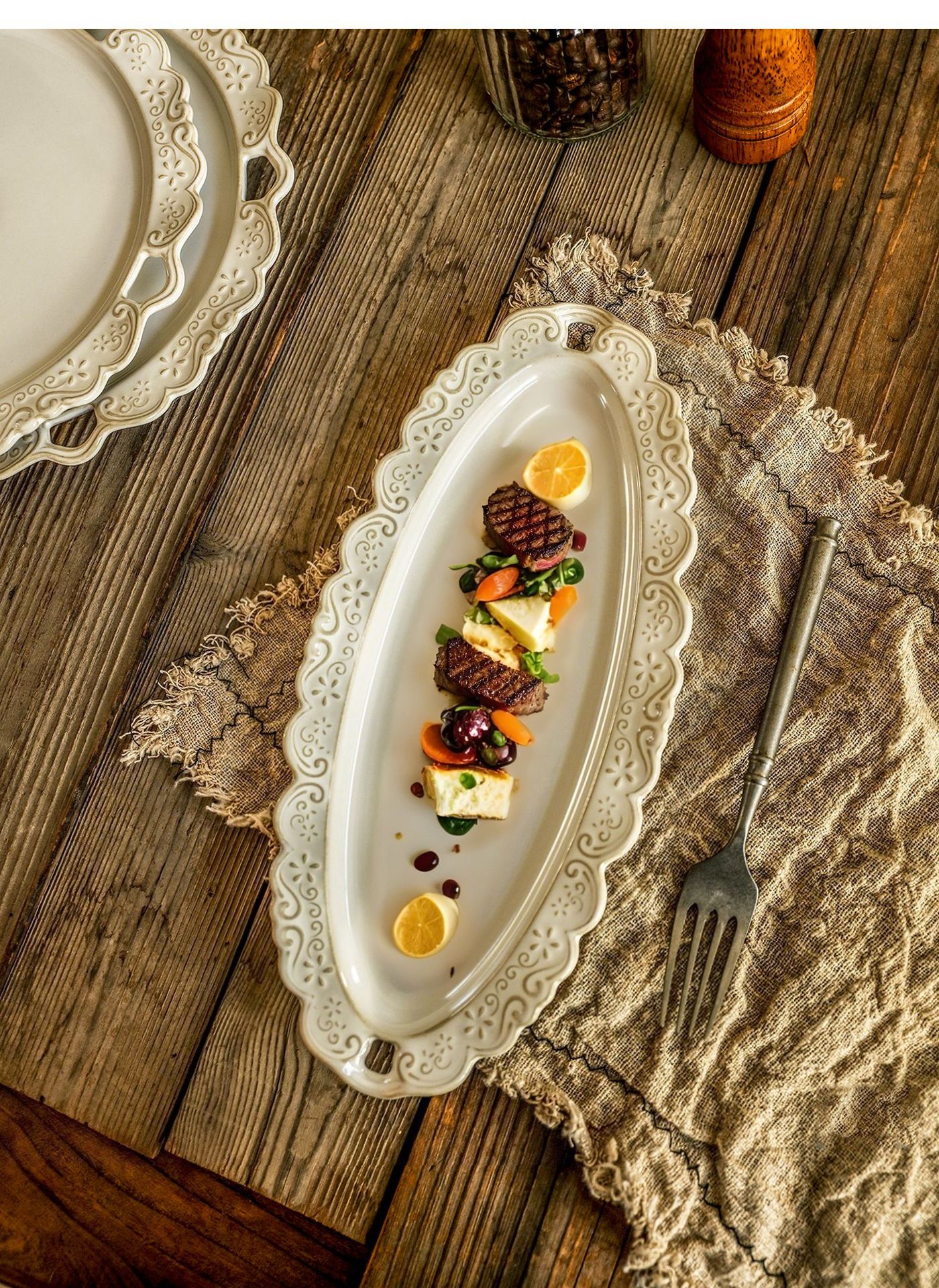 가벼운 고급 세라믹 스테이크 서양 음식 접시 가정용 접시 디저트 스시 접시 복고풍 창조적 인 양각 접시 과일 스낵 접시
